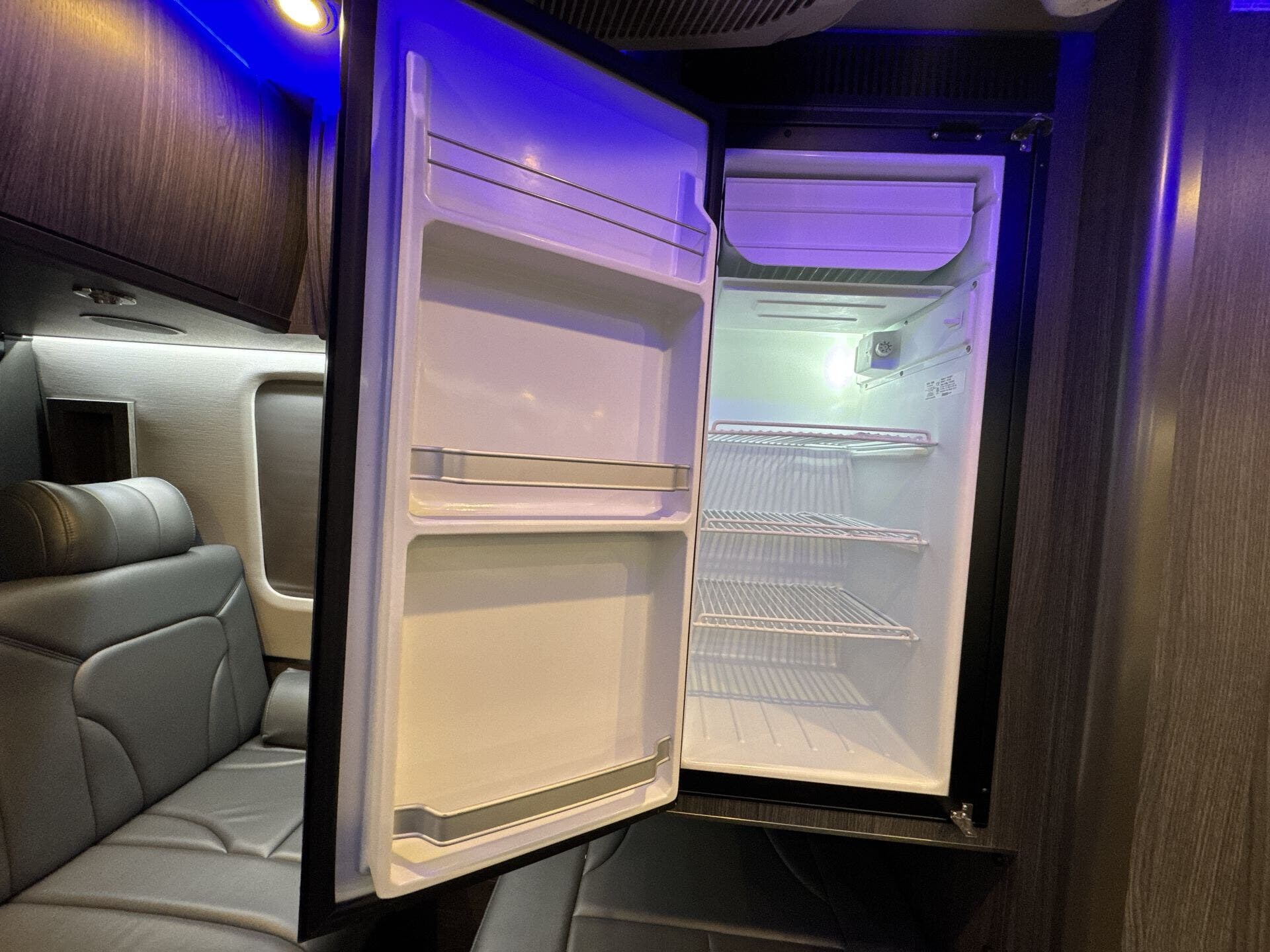 - Entertainment & Convenience: Includes a convection microwave, refrigerator, stove top burner, and a well-organized kitchen sink with overhead cabinetry for ample storage.