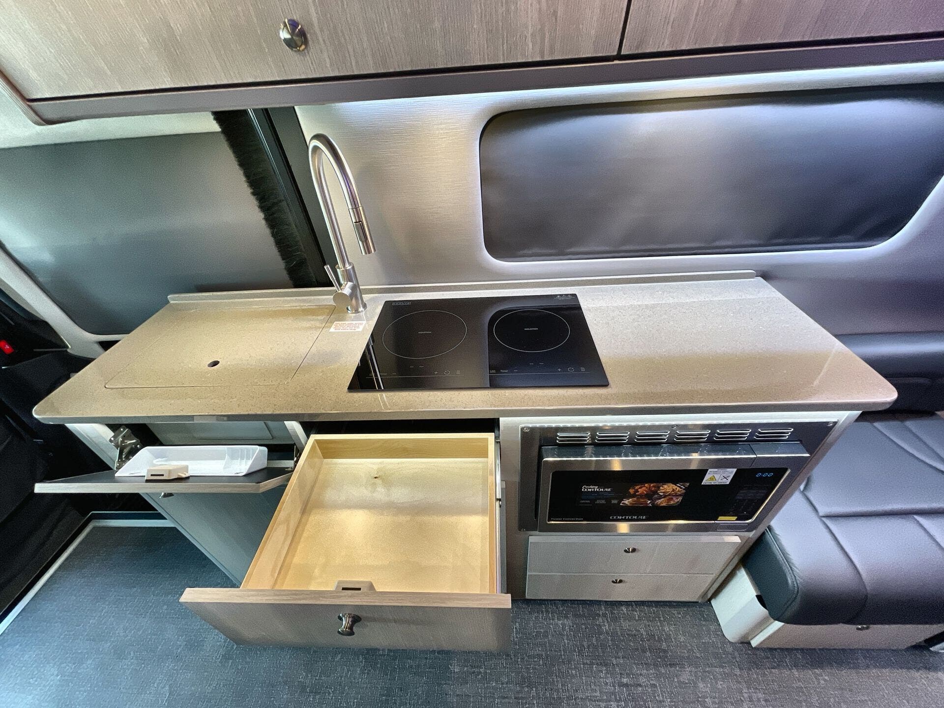 - Key features: Microwave, Refrigerator, Stove Top Burner, Air Conditioning, Batteries, CO Detector, Fire Extinguisher, LP Detector, Smoke Detector, TV, Kitchen Sink, Overhead Cabinetry, Shower