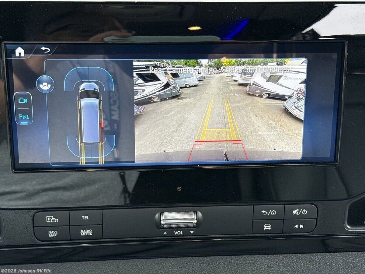 Features Include: 170-inch Wheelbase, Air Suspension, Active Brake Assist, Parking Assist, Running Boards, Cab Floor Mat, Power, Swivel, Heated Seats, Awning LED Lighting, Power Entry Step, Patio Screen Door, Vinyl Woven Flooring, Power Sofa Bed, Farmhouse-Style Sink, Refrigerator Freezer, Starlink ROAM, Vanity Mirror, Molded Sink, Handheld Showerhead, 30-Amp Shore Power, Tankless Hot Water, Macerator System