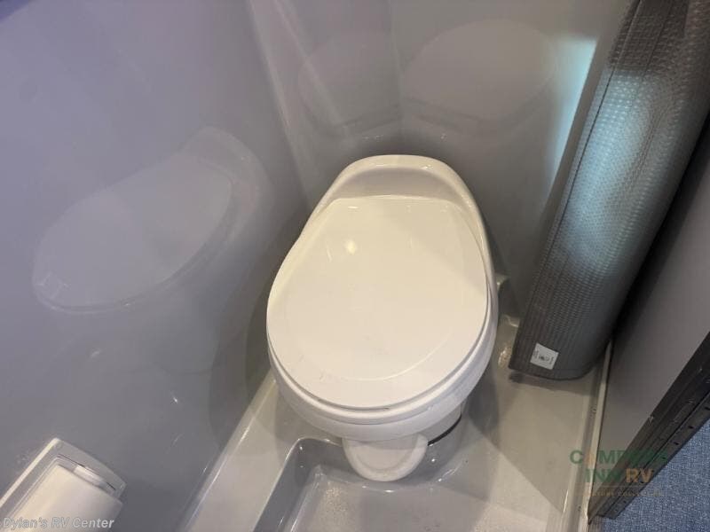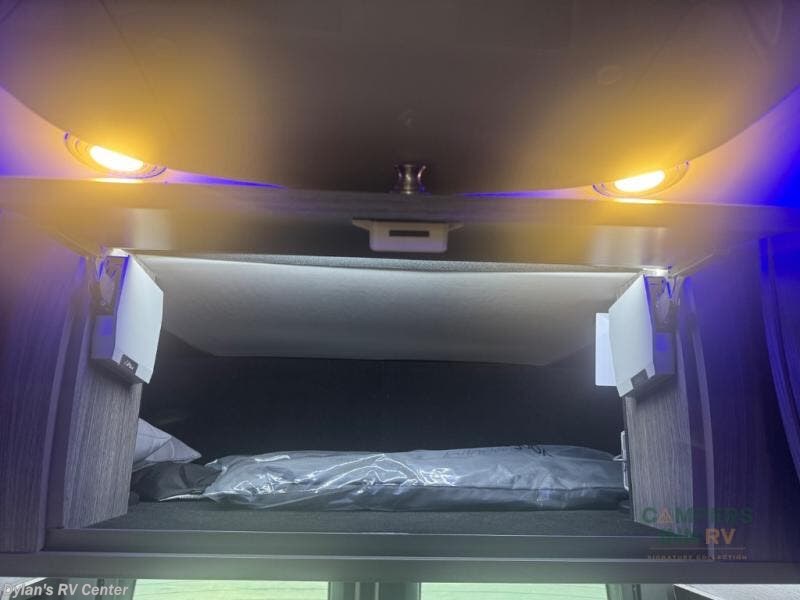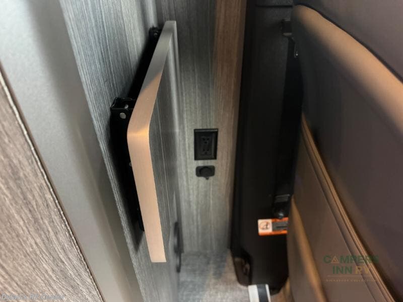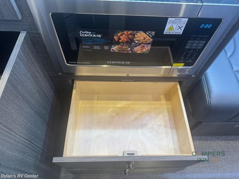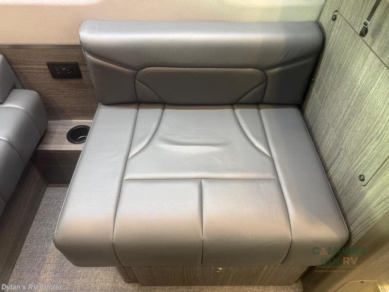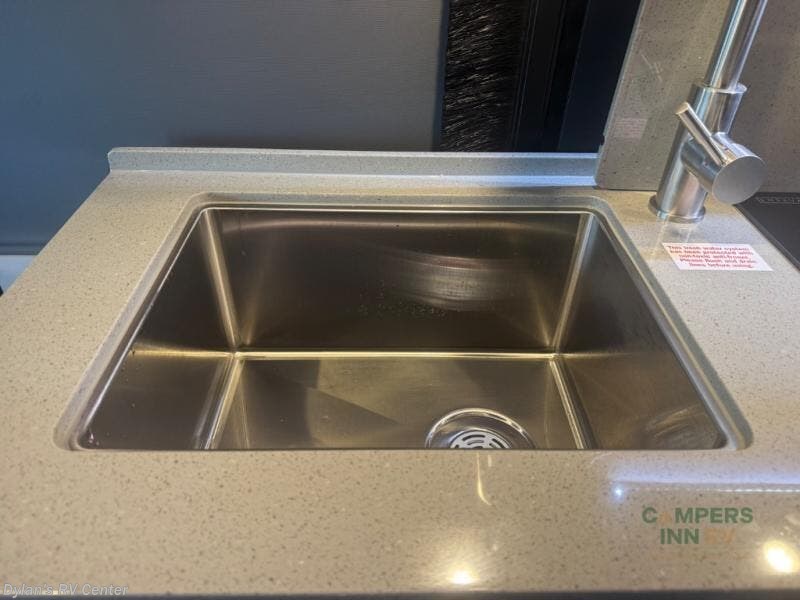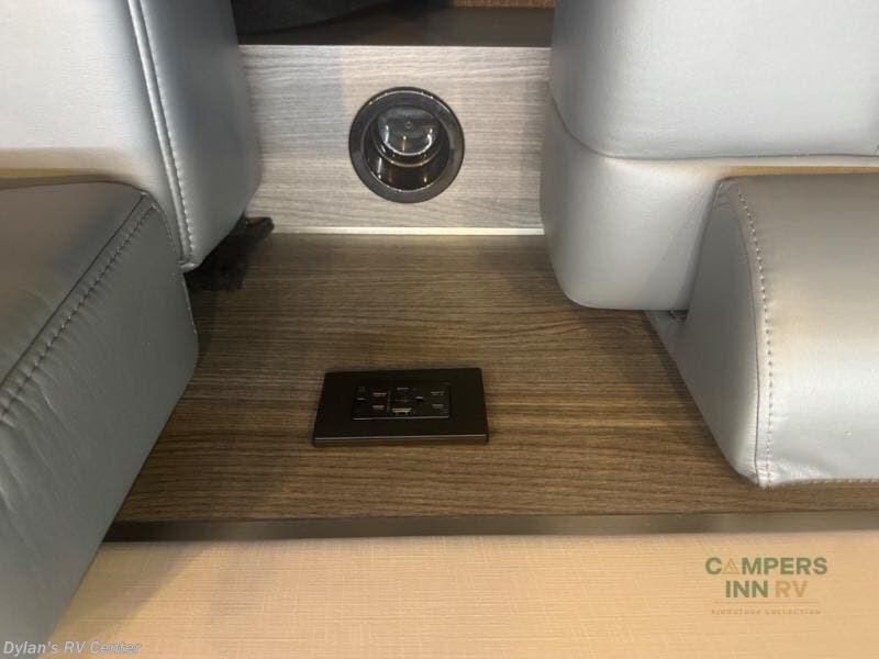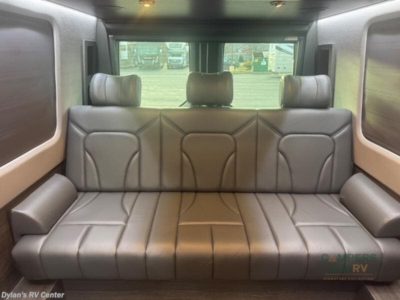 Luxury, functionality and sleeping for two is found in this versatile coach. There are seatbelts for seven for day trips with friends and a power sofa bed for couple's weekends. You will love the two captain's chairs that turn towards the rear for more seating once at your destination, and storage for your clothing is next to the wet bath. The private enclosed wet bath also includes a window and privacy shade. The cook can make meals using the galley kitchen with a farmhouse style sink, combo microwave/convection/air fryer and a two burner propane cooktop.