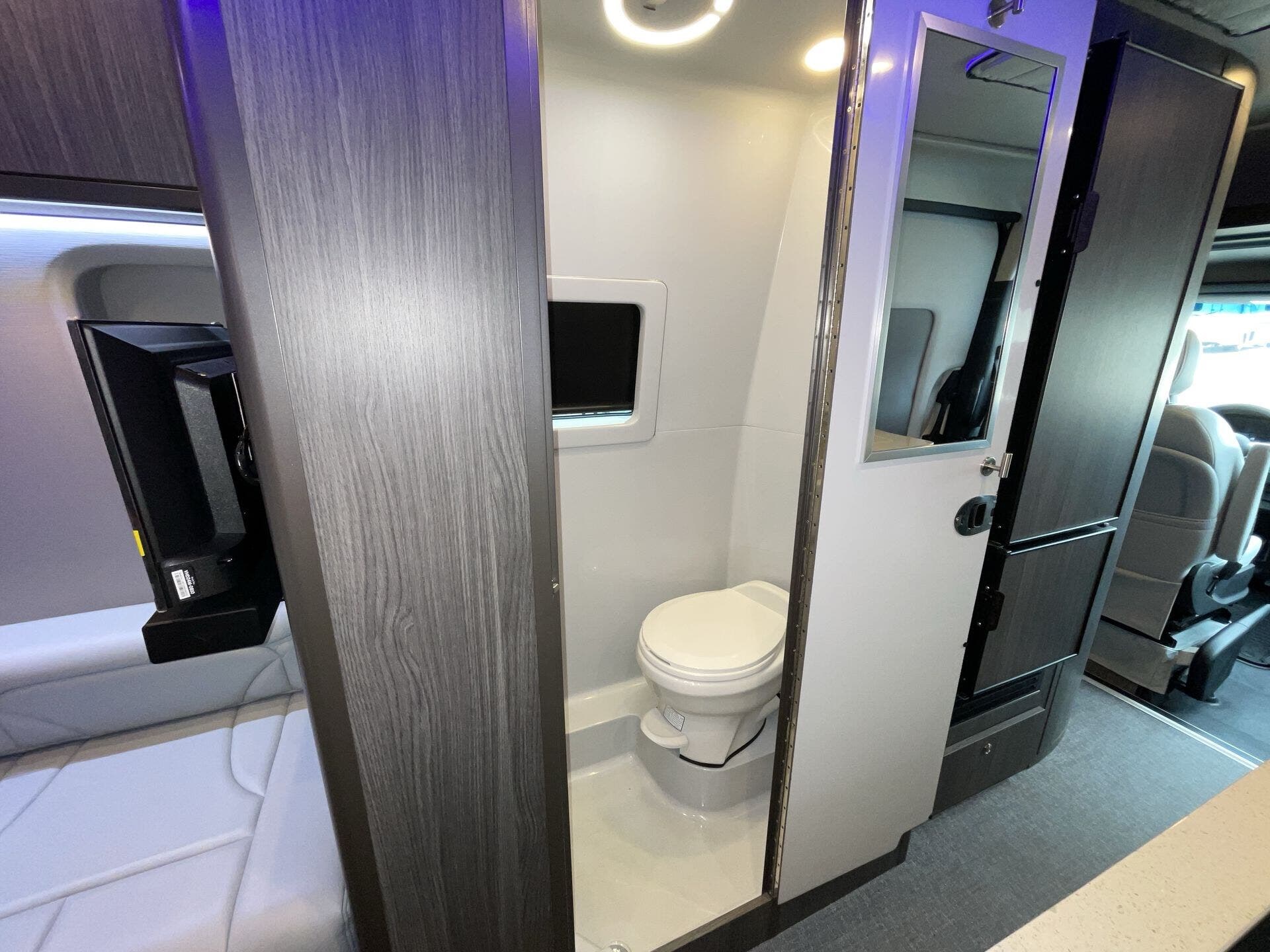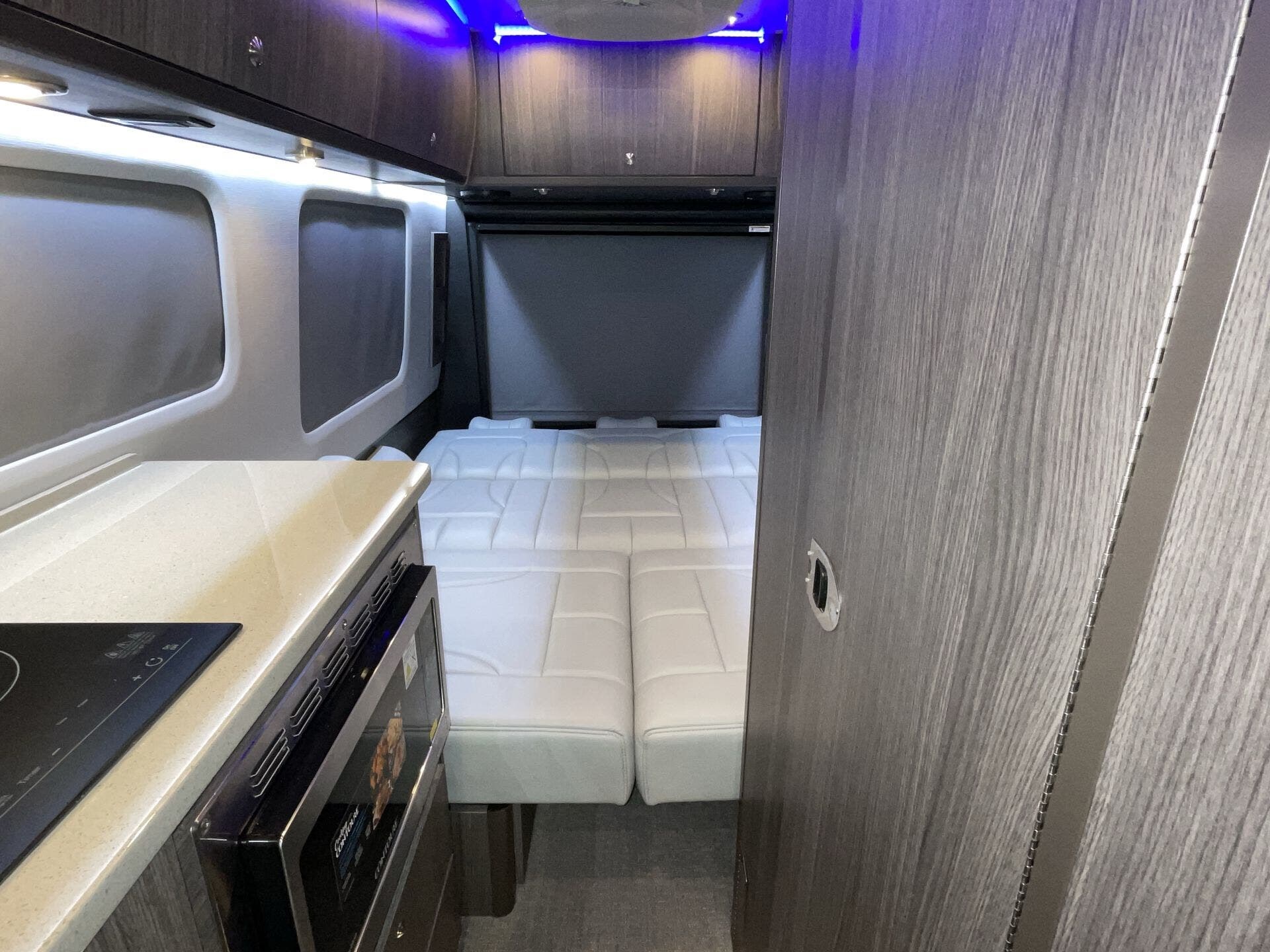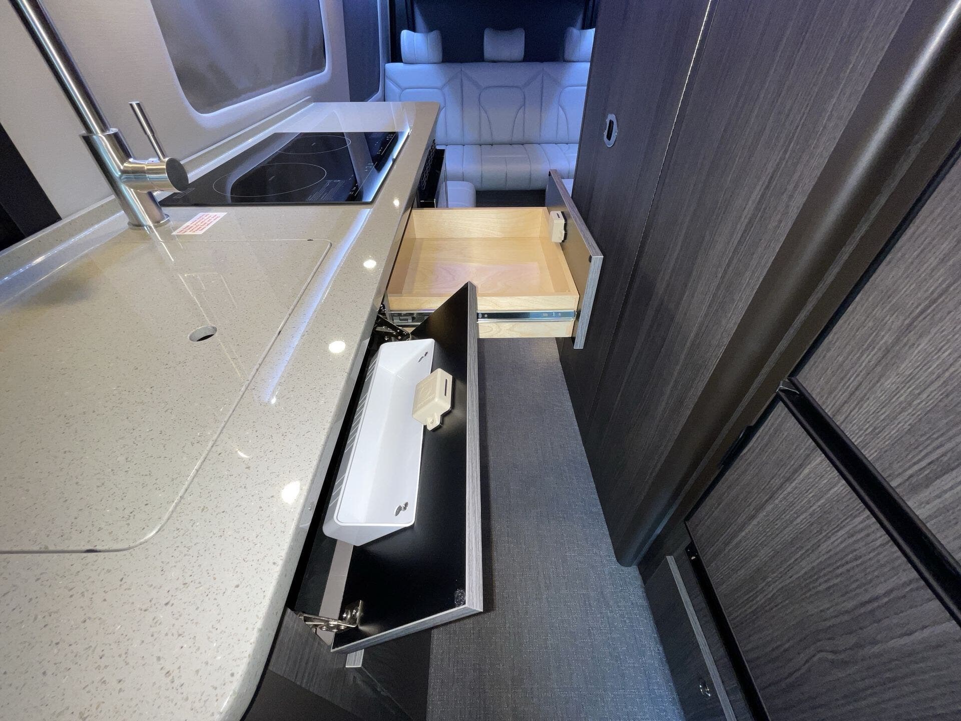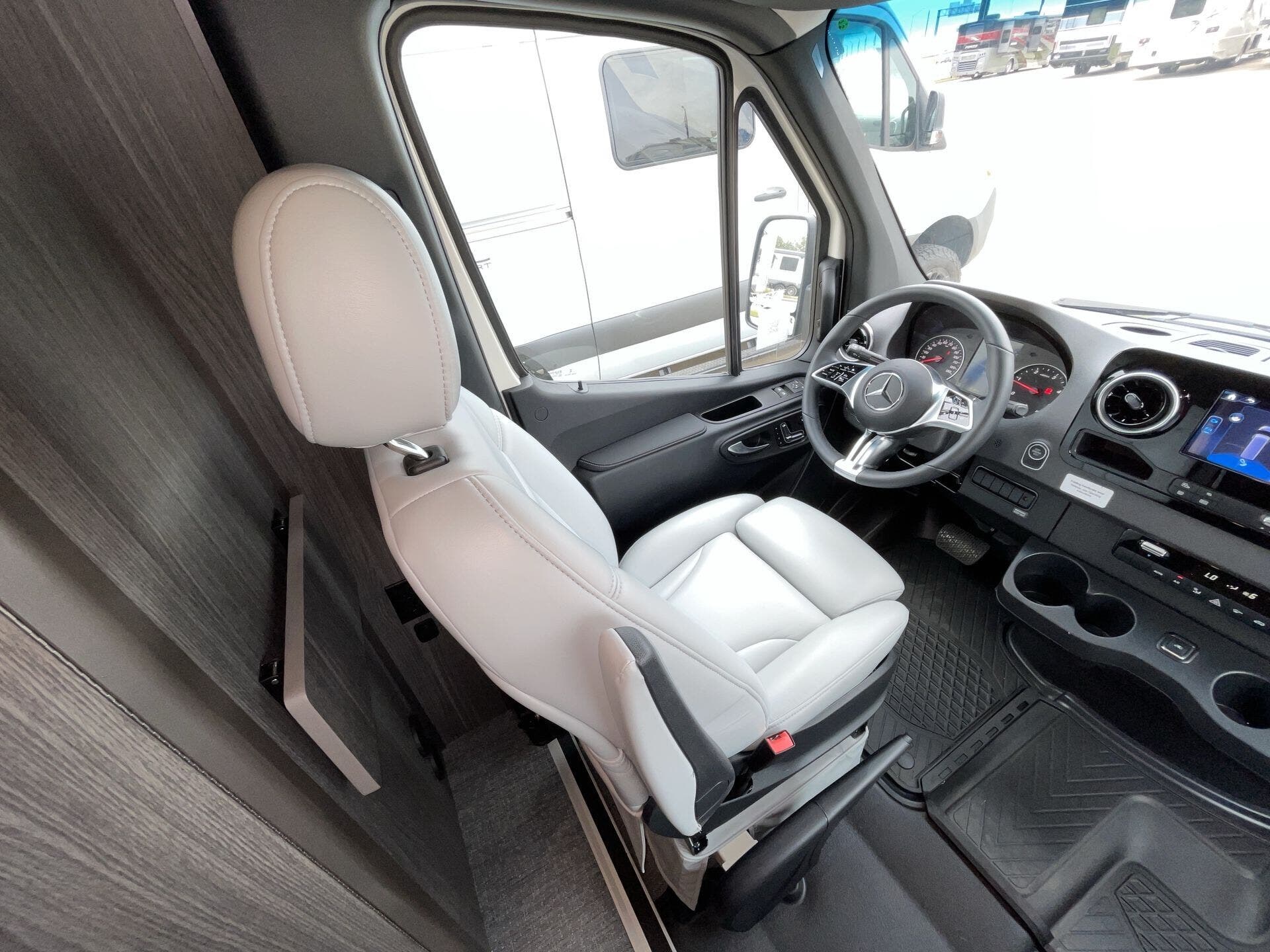 With freshwater capacity of 26 gallons, gray water 27 gallons, and black water 13 gallons, the Strada is equipped for comfortable, longer trips. It sleeps 2 people, making it ideal for couples seeking a luxurious yet compact travel companion. The combined reliability of a Mercedes-Benz drivetrain and a modern Class B layout translates into a smooth, enjoyable ride with impressive fuel economy for a motorhome of this size.