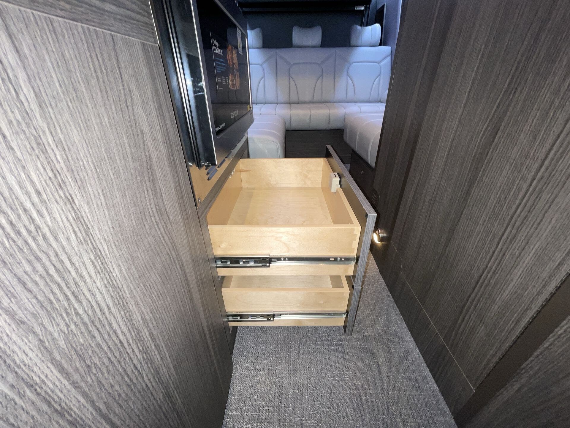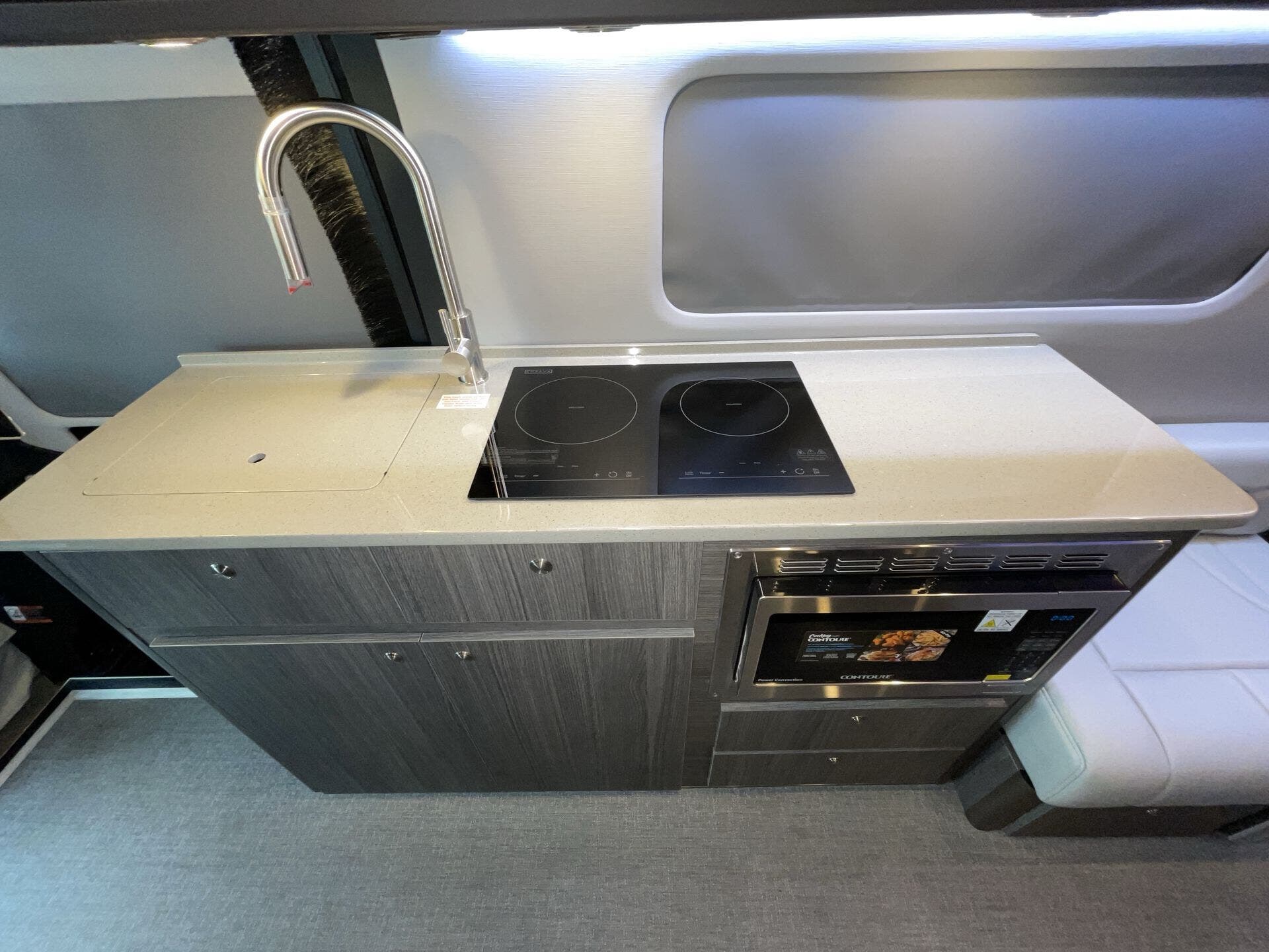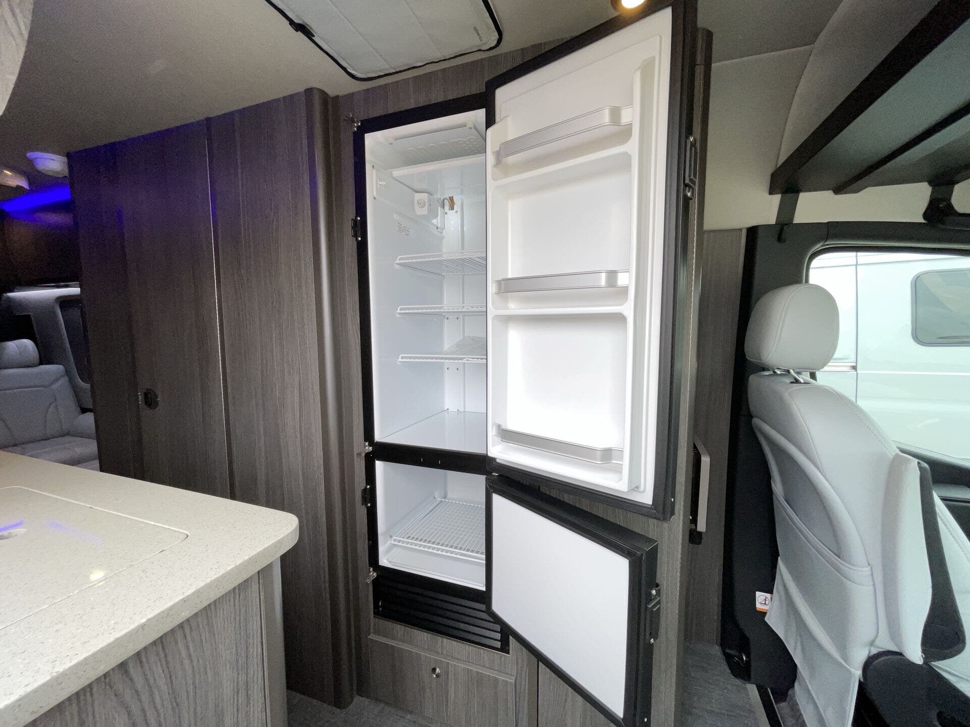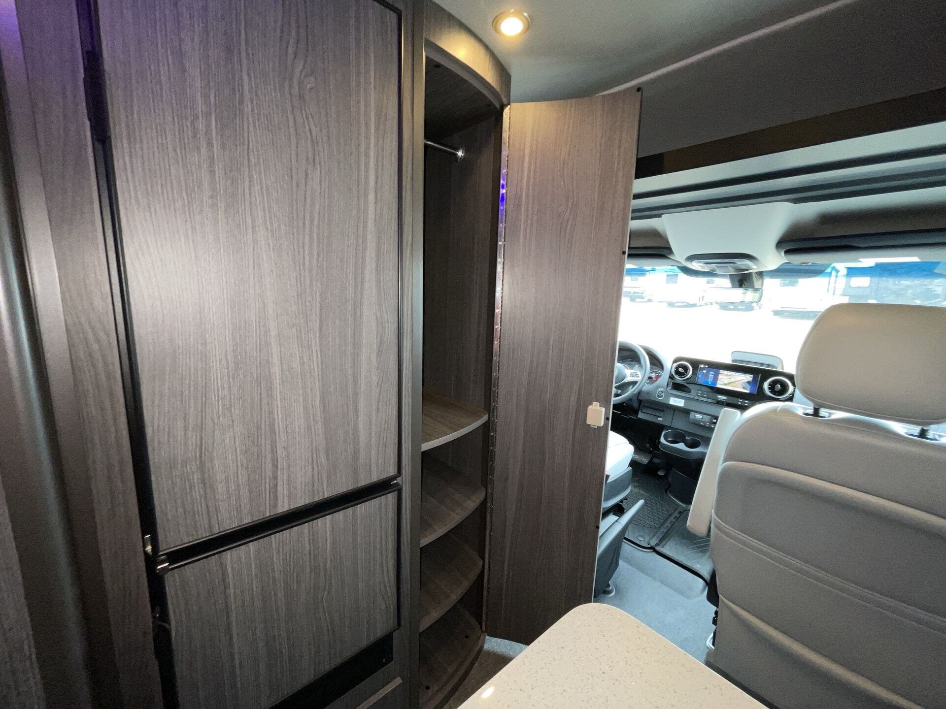 With freshwater capacity of 26 gallons, gray water 27 gallons, and black water 13 gallons, the Strada is equipped for comfortable, longer trips. It sleeps 2 people, making it ideal for couples seeking a luxurious yet compact travel companion. The combined reliability of a Mercedes-Benz drivetrain and a modern Class B layout translates into a smooth, enjoyable ride with impressive fuel economy for a motorhome of this size.