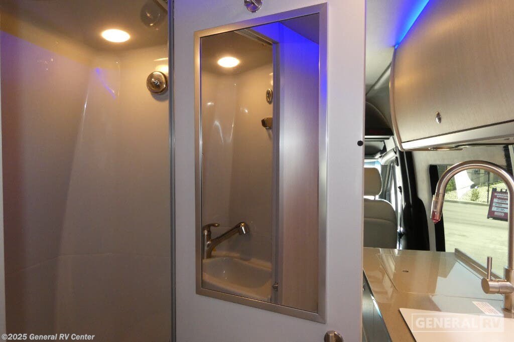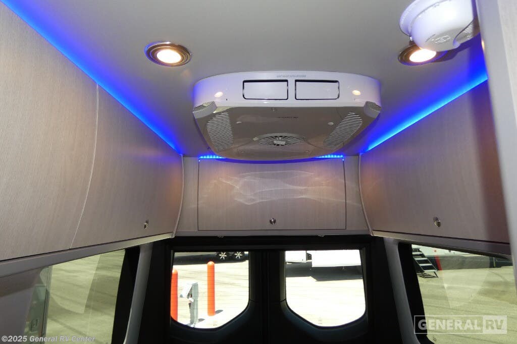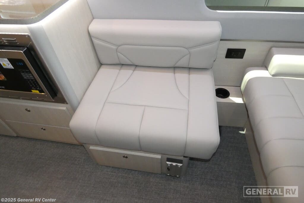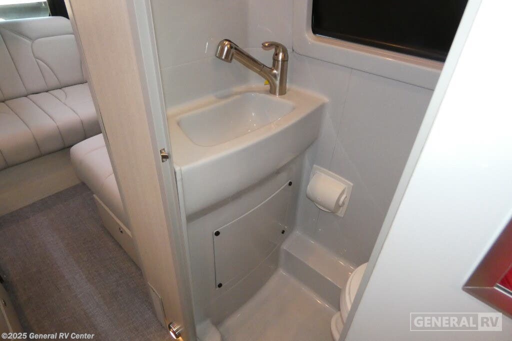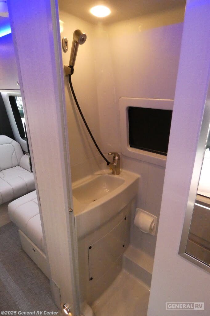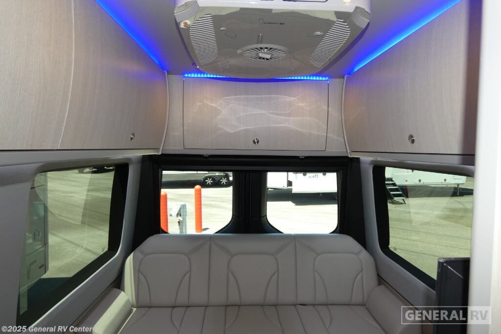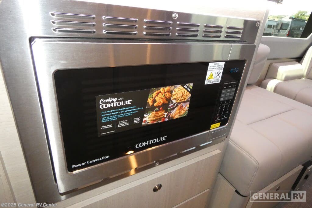 Grech RV Terreno-ion AWD Class B diesel motorhome Tour highlights: Two Captain's Chairs Seats Up To Seven Wardrobe Sleeps Two Power Sofa Bed Enclosed Wet Bath When you want to travel to games, events or for vacations, this coach allows you to in comfort, luxury and with the sophistication you desire! There are two captain's chairs in the cab that swivel towards the rear for more seating once stopped. You will find sleeping space for two on the rear power sofa bed, plus a table with a mount system to dine at with seating for five in the back. Everyone can watch the 24" LED TV with Apple TV, and enjoy the premium sound system, the USB and 110V charging ports for your electronics, plus the galley kitchen amenities. There is a farmhouse style sink with a faucet and pull-out sprayer, plus the combo microwave/convection/Air Fryer and the induction cooktop allow the chef to make warm meals for everyone. The enclosed private wet bath provides a window and privacy shade, a molded sink with a vanity mirror, a handheld showerhead, a ceramic toilet with foot flush and a retractable clothes line to dry your towels and swimsuits. With each Terreno-ion AWD Class B diesel motorhome by Grech RV, you can travel in complete luxury. The Grech Power system with a Lithionics 51V battery system will make going off-grid easier than ever. This system also features a Garmin SERV+ house control system, a Victron Blue Power 3,000W smart inverter, a roof-mounted solar panel system, and more features to keep you powered up! You will also appreciate the all-wheel drive and the air suspension for the smoothest ride out there. A Timberline System provides continuous flow of hot water, which is fueled by the Sprinter fuel, and there is a 15,000 BTU Gree-Eco-Cool A/C with a heat pump to keep you cool during the summer. Head inside to enjoy the LED ambient accent lighting, vinyl woven flooring, solid surface kitchen countertop, and many more comforts.