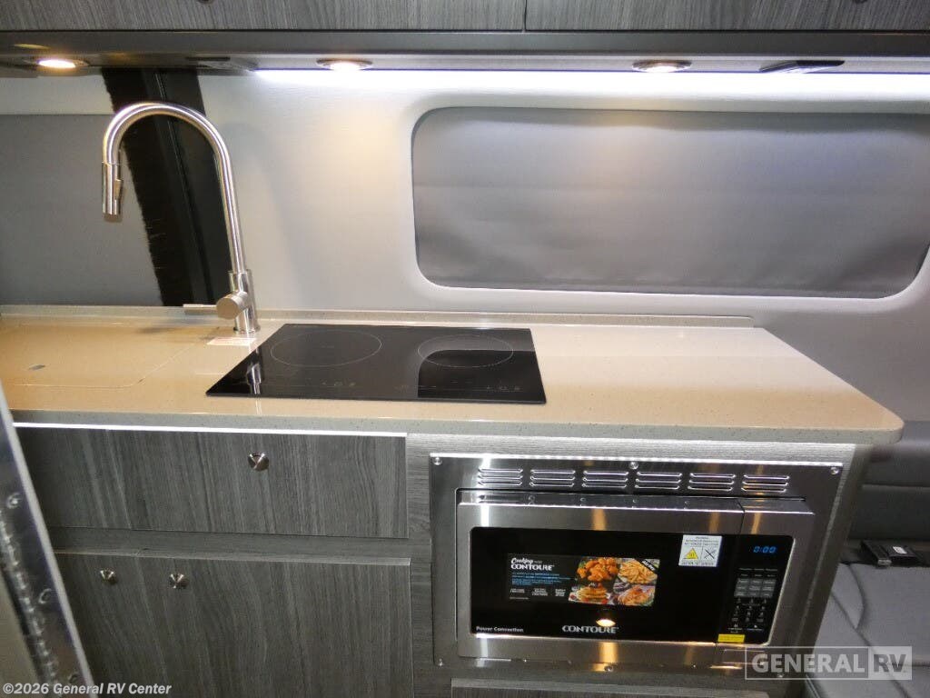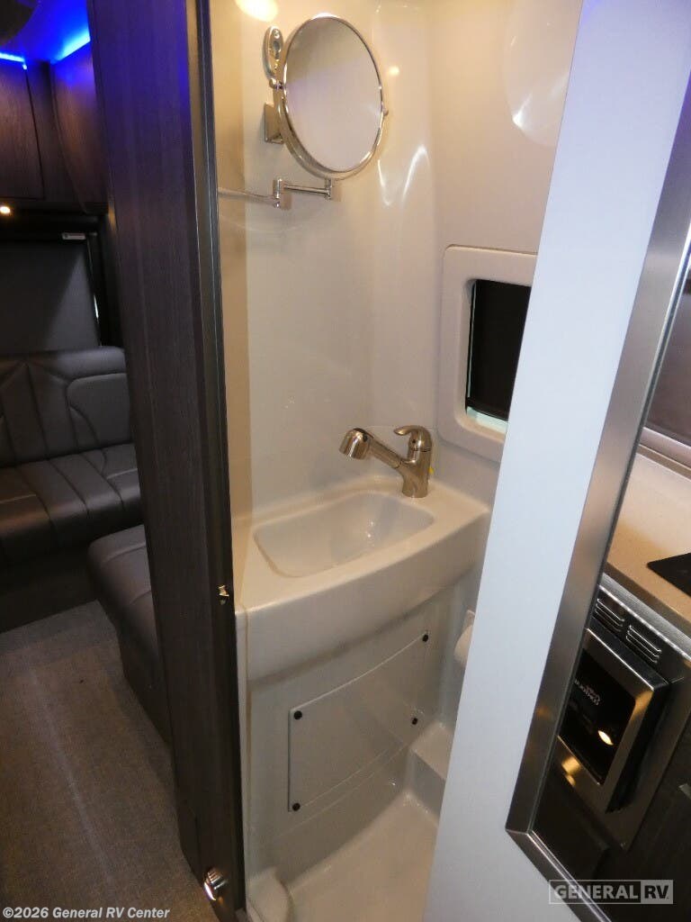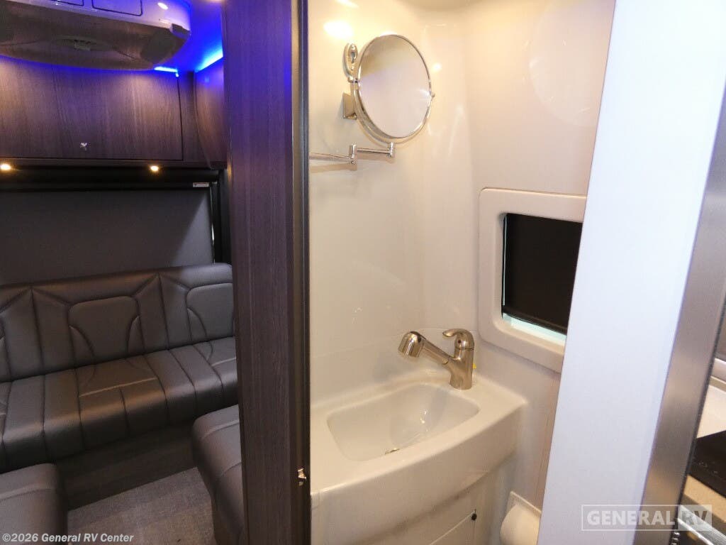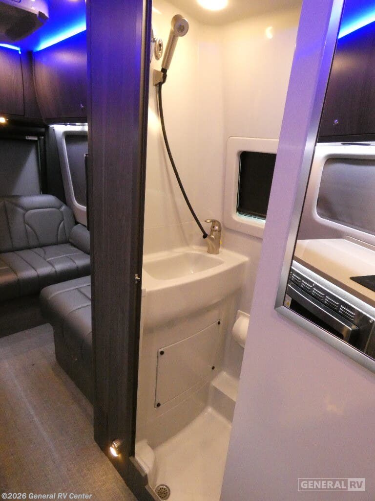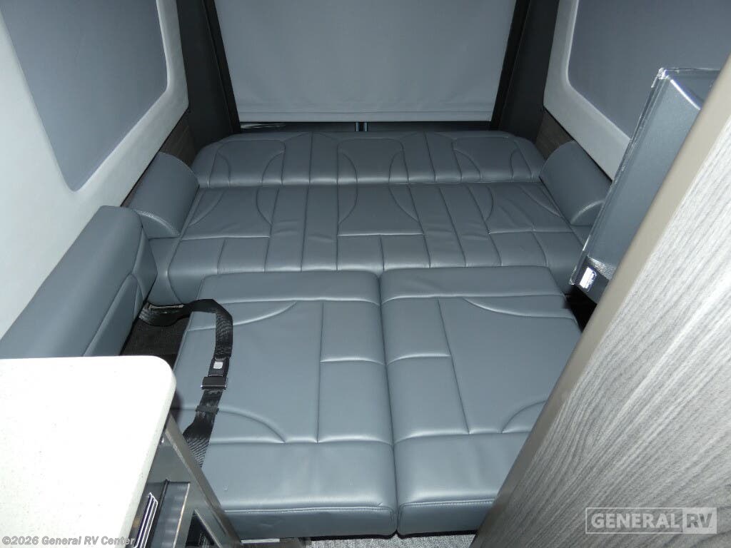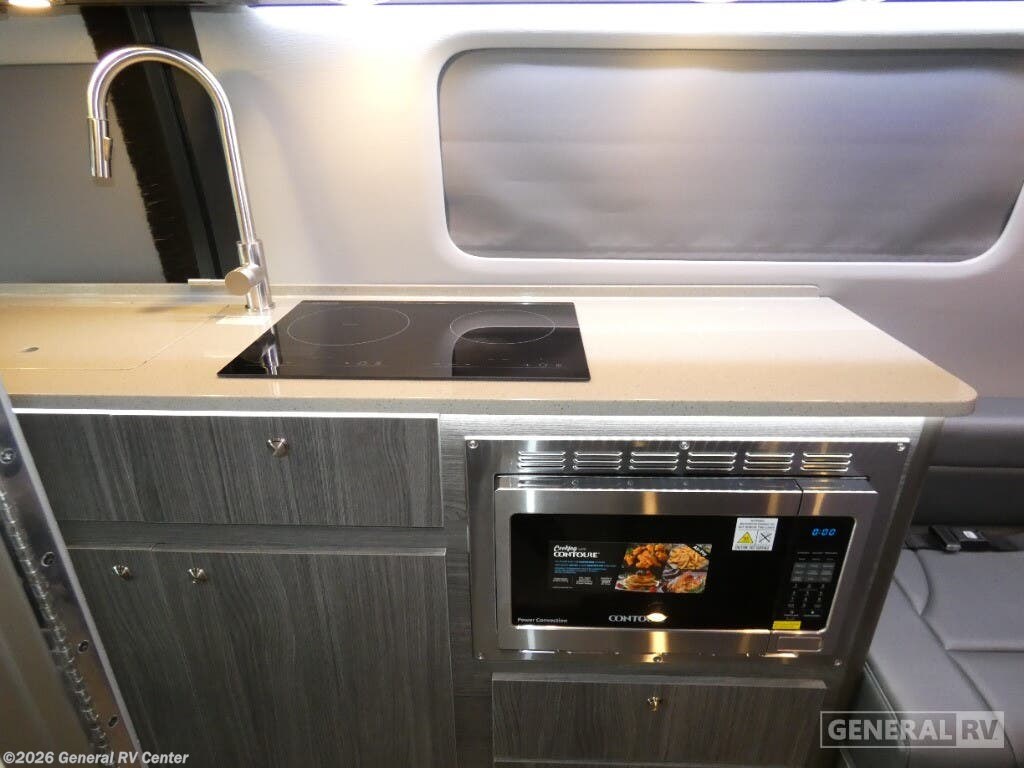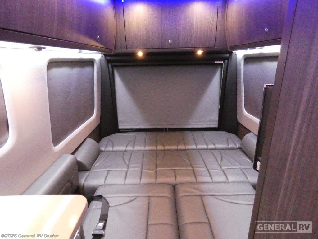 Grech RV Terreno-ion AWD Class B diesel motorhome Tour highlights: Two Captain's Chairs Seats Up To Seven Wardrobe Sleeps Two Power Sofa Bed Enclosed Wet Bath When you want to travel to games, events or for vacations, this coach allows you to in comfort, luxury and with the sophistication you desire! There are two captain's chairs in the cab that swivel towards the rear for more seating once stopped. You will find sleeping space for two on the rear power sofa bed, plus a table with a mount system to dine at with seating for five in the back. Everyone can watch the 24" LED TV with Apple TV, and enjoy the premium sound system, the USB and 110V charging ports for your electronics, plus the galley kitchen amenities. There is a farmhouse style sink with a faucet and pull-out sprayer, plus the combo microwave/convection/Air Fryer and the induction cooktop allow the chef to make warm meals for everyone. The enclosed private wet bath provides a window and privacy shade, a molded sink with a vanity mirror, a handheld showerhead, a ceramic toilet with foot flush and a retractable clothes line to dry your towels and swimsuits. With each Terreno-ion AWD Class B diesel motorhome by Grech RV, you can travel in complete luxury. The Grech Power system with a Lithionics 51V battery system will make going off-grid easier than ever. This system also features a Garmin SERV+ house control system, a Victron Blue Power 3,000W smart inverter, a roof-mounted solar panel system, and more features to keep you powered up! You will also appreciate the all-wheel drive and the air suspension for the smoothest ride out there. A Timberline System provides continuous flow of hot water, which is fueled by the Sprinter fuel, and there is a 15,000 BTU Gree-Eco-Cool A/C with a heat pump to keep you cool during the summer. Head inside to enjoy the LED ambient accent lighting, vinyl woven flooring, solid surface kitchen countertop, and many more comforts.