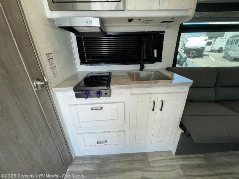 With any Gulf Stream RV BT Cruiser Class B+ gas motorhome, you will appreciate the rugged, reliable, fuel efficient Ford E-350 or E-450 chassis depending on the coach you choose, and the ease of maneuvering the motorhome on two-lane roads, city streets and into tight parking spaces! Some key features include the smooth fiberglass laminated sidewalls, and fiberglass front and rear caps, as well as the kitchen appliances and the soft pleated privacy shades. Some of the included features within the BT Cruiser Bonus Package are a 4.0 kW Onan generator to keep things running, fiberglass running boards for easy entry and exit, the IRD dual battery charging system, upgraded LED interior and exterior lighting, and vinyl flooring for easy care to mention a few. Make your selection today, and enjoy the drive as much as camping!