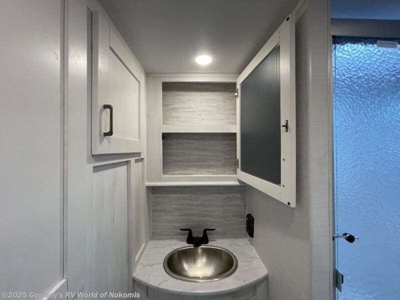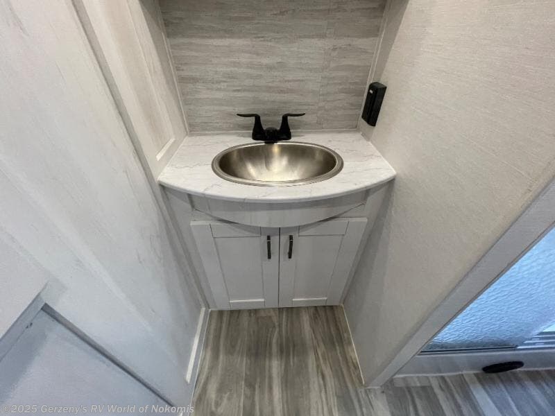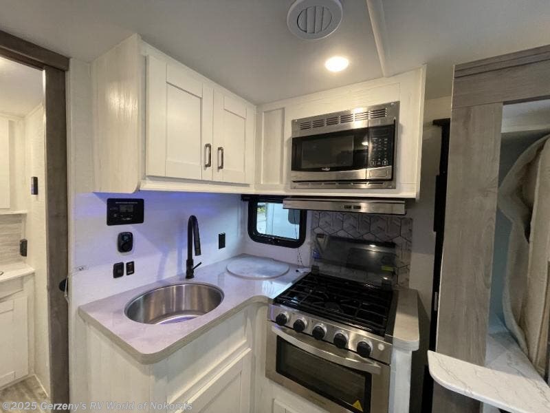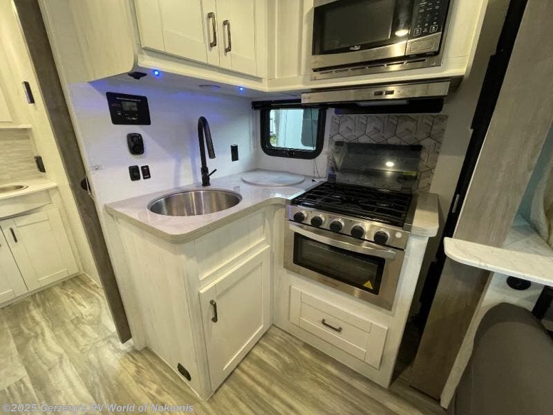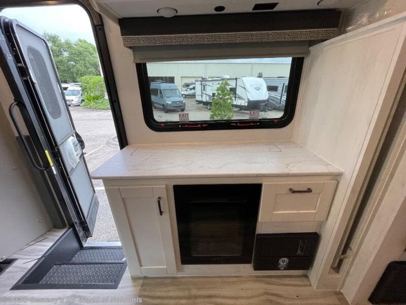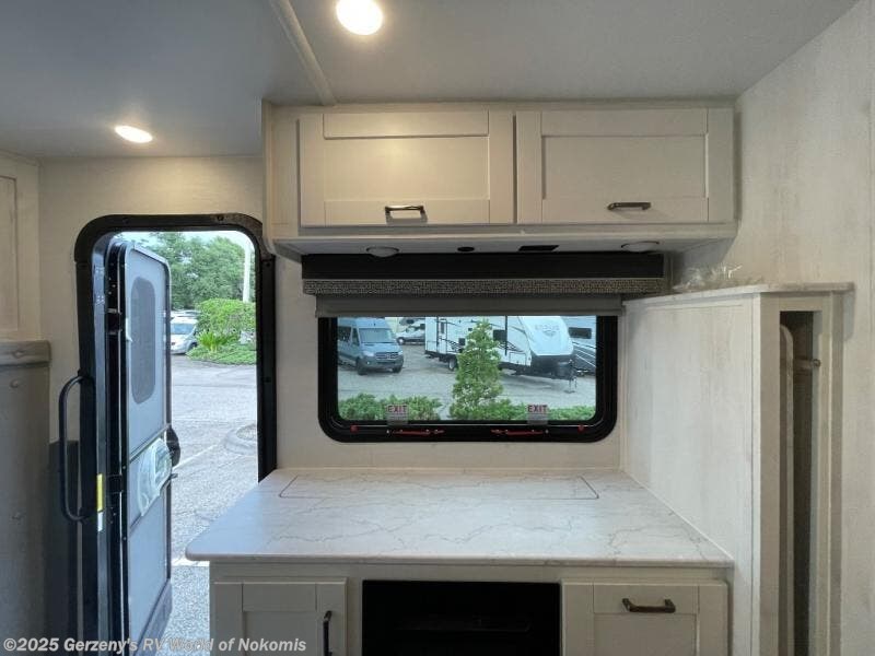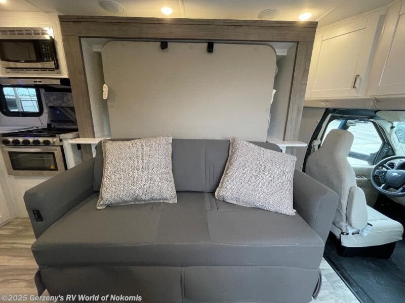 Travel to see mountains, cities, or events in this coach that offers a versatile living and sleeping space with the soft touch sofa and Murphy bed combo! You can relax indoors at the sofa and sleep in the same space at night. The kitchen area offers full amenities including a pantry to stow away the dry goods. More storage can be found in the overhead storage cabinets above the cab area which has comfortable 2-way driver and passenger seats. And this model includes a fireplace option to enjoy on fall nights!