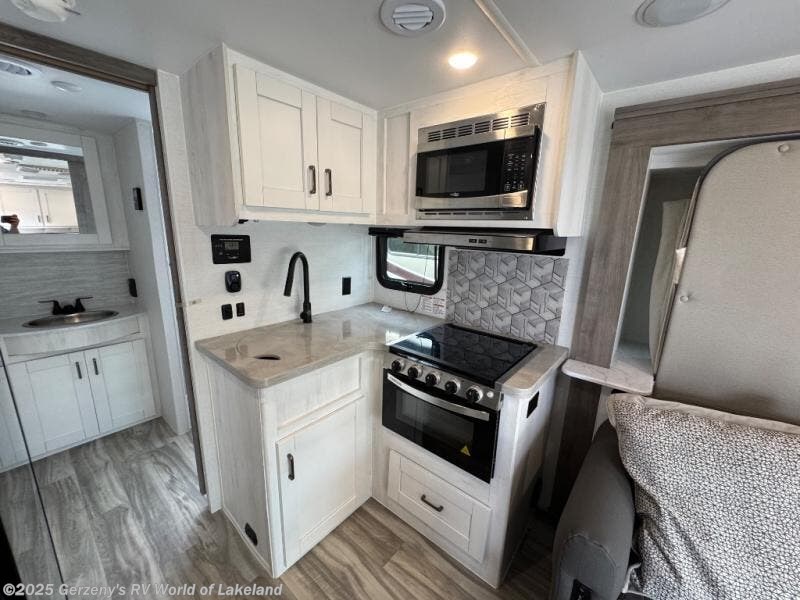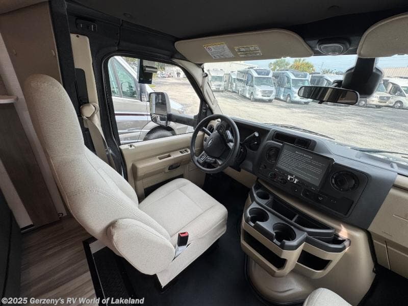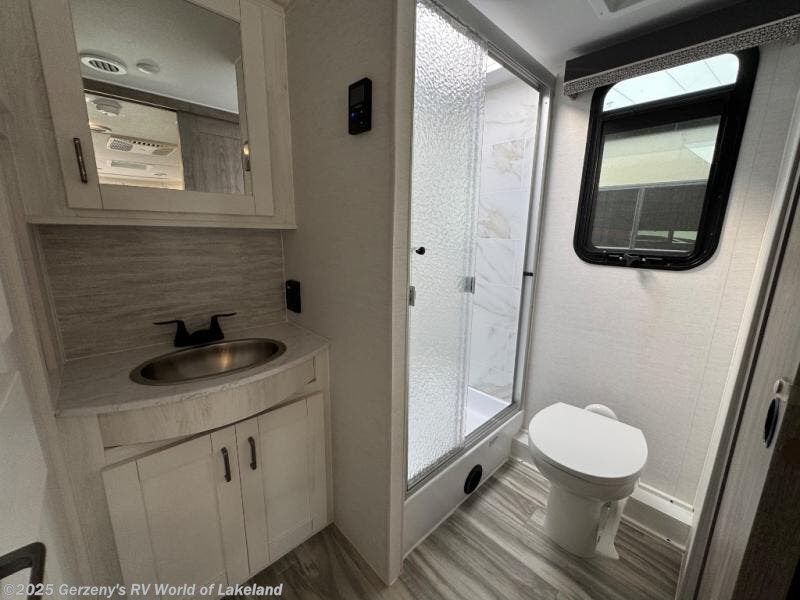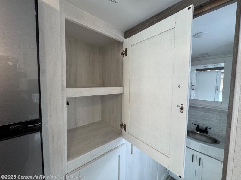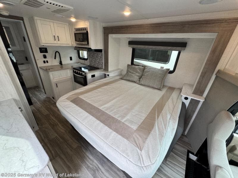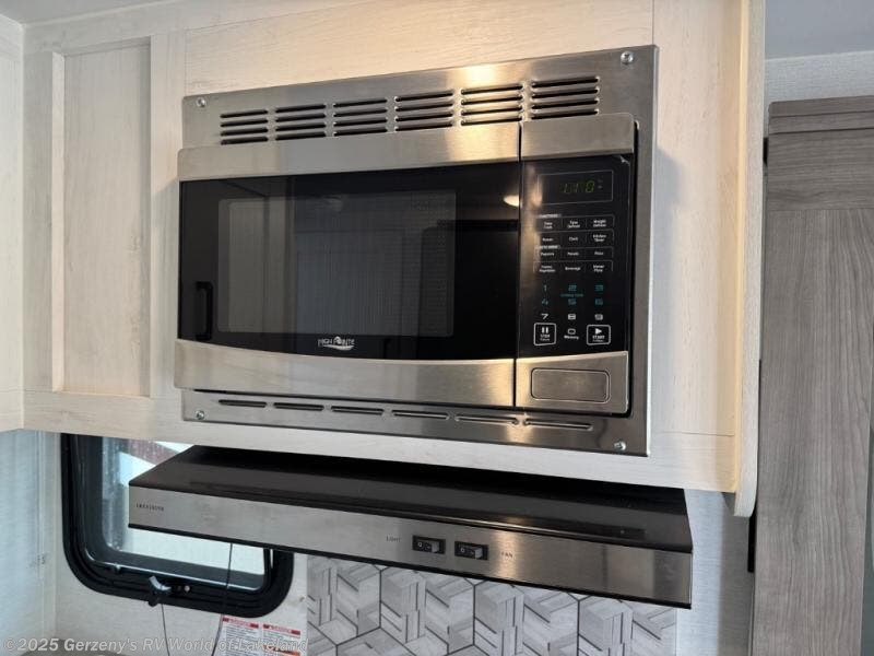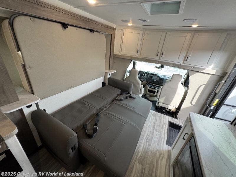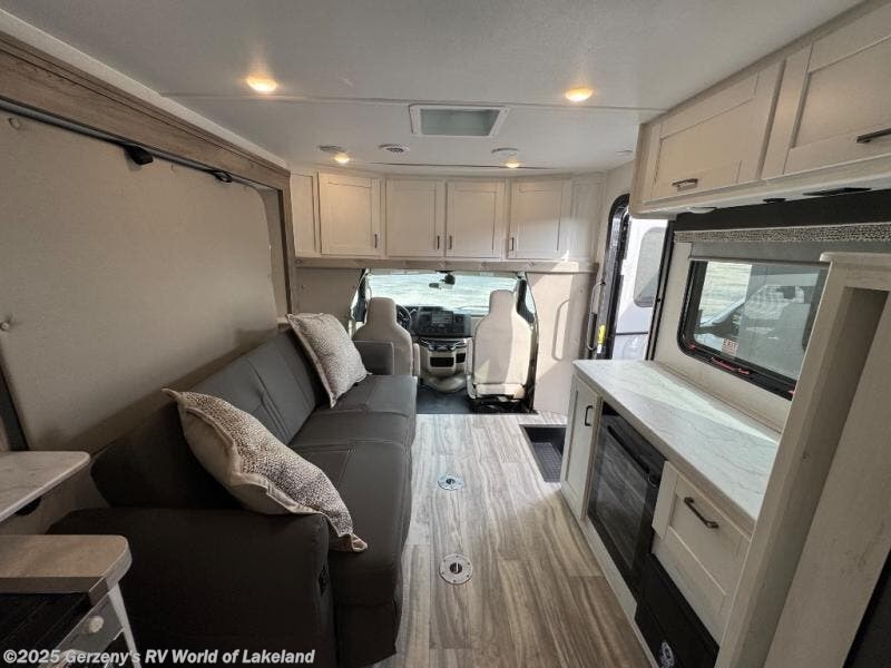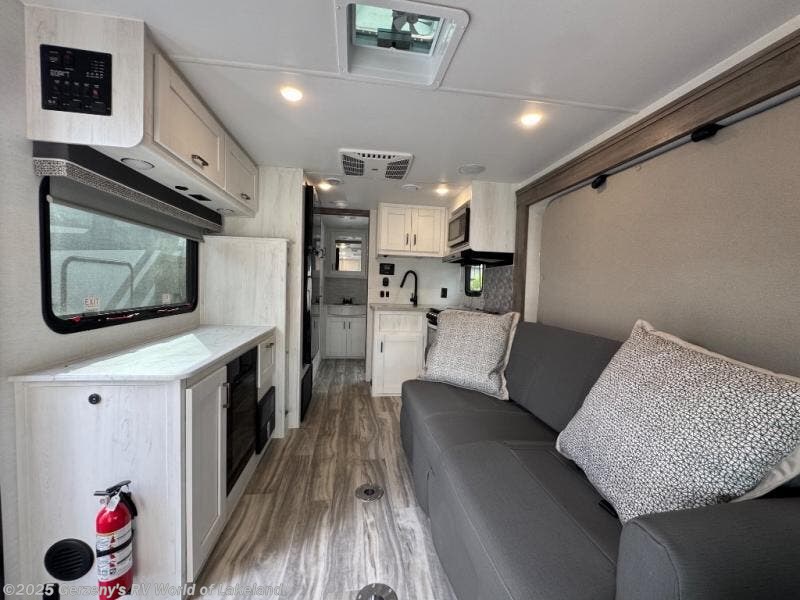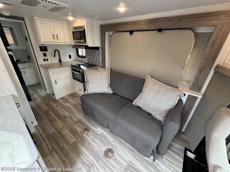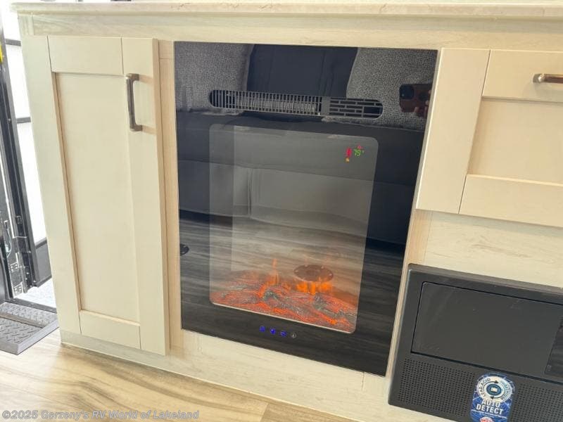 Travel to see mountains, cities, or events in this coach that offers a versatile living and sleeping space with the soft touch sofa and Murphy bed combo! You can relax indoors at the sofa and sleep in the same space at night. The kitchen area offers full amenities including a pantry to stow away the dry goods. More storage can be found in the overhead storage cabinets above the cab area which has comfortable 2-way driver and passenger seats. And this model includes a fireplace option to enjoy on fall nights!