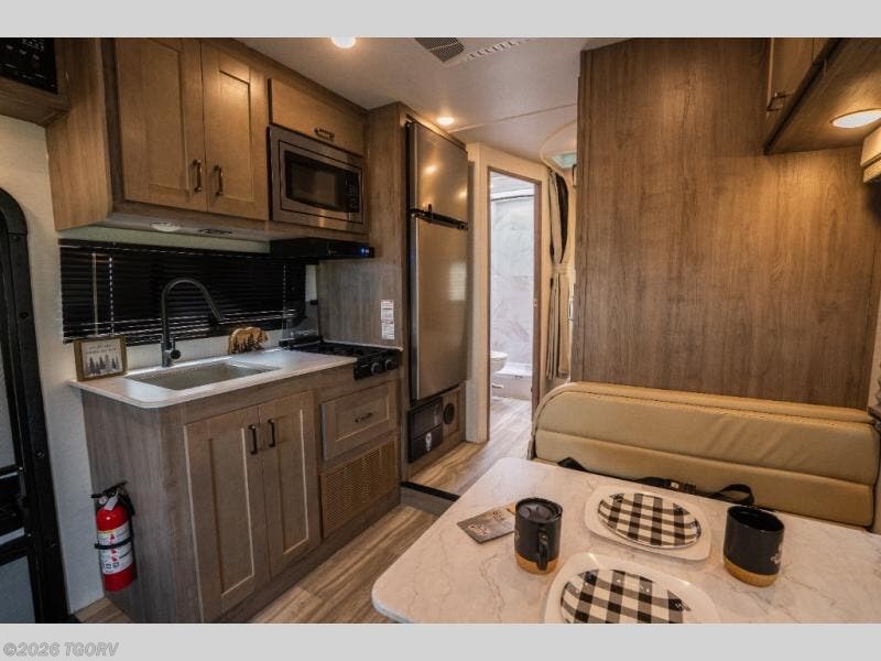 Each one of these Gulf Stream RV Conquest Class C LE Series gas motorhomes is built with a Cradle of Strength® on a Ford E350 chassis and a 7.3L V8 engine, or you can choose the optional Chevy chassis with a 6.0L V8 engine! Their construction also consists of a welded aluminum perimeter frame, a PVC roof membrane, and a laminated steel frame floor with a fiberglass underbelly for added protection. There is hardwood cabinetry inside, along with upgraded interior fabrics, and two decor choices to best fit your style.