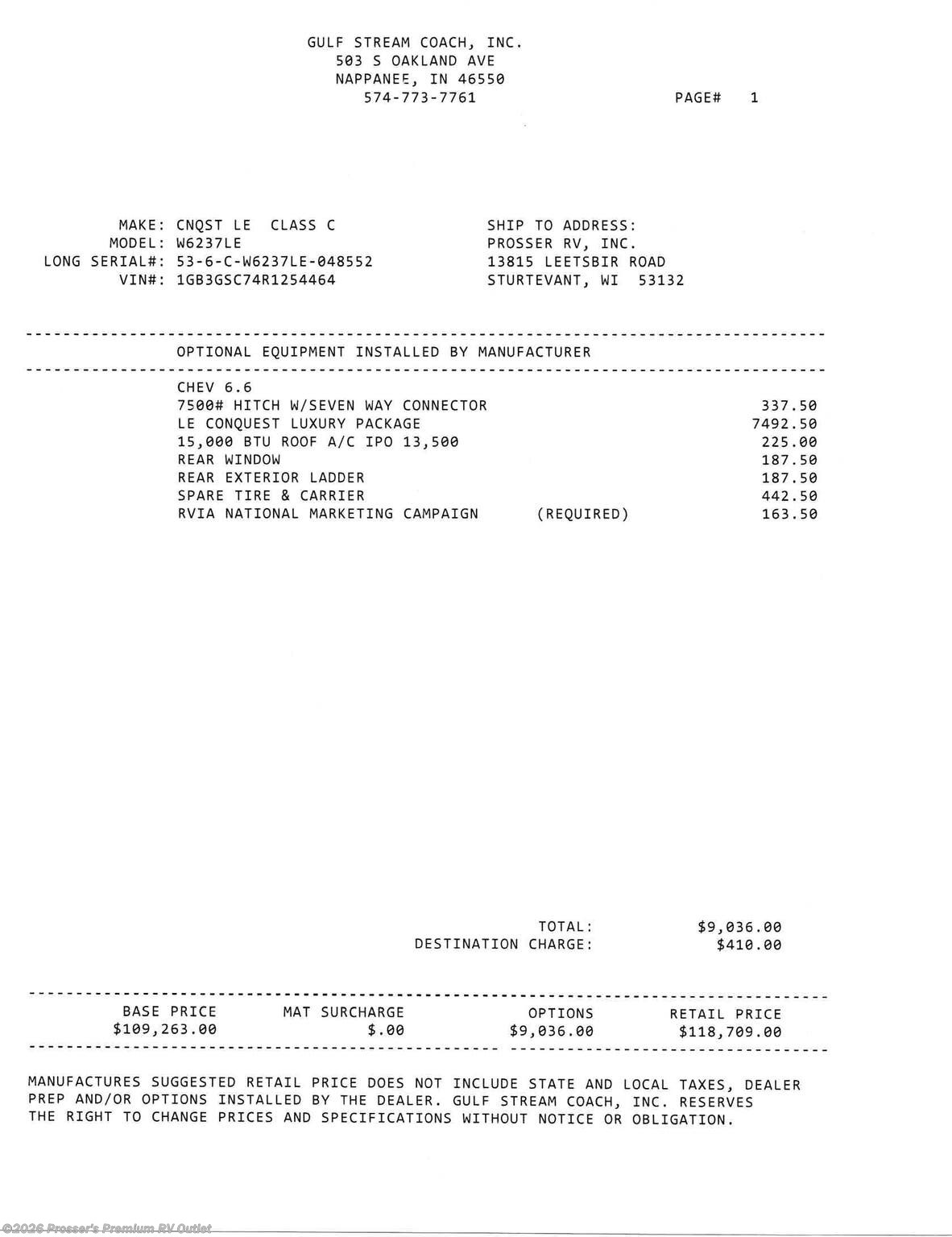 Request More Info on this 2026 Gulf Stream Conquest LE Series Offered for sale by Prosser's Premium RV Outlet
