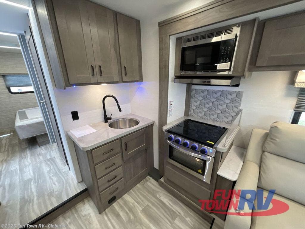 Imagine you and your family exploring new RV parks every chance you get with this Yellowstone Class C gas motorhome. The rear bedroom has a door that you can shut for privacy, and the separated bath has a sky dome above the shower for extra room to rinse off each morning. You can cook meals on the three-burner range and visit with other RVers while relaxing on the jackknife sofa.