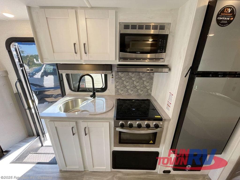 Get ready to see the summer sunshine, the fall colors, and/or the snow on the mountains when you travel in this easy to drive coach! The full-wall slide will impress you with all the floor space from front to back. You can sleep like royalty on the RV bed, store your clothes in the wardrobe and food in the pantry, and the booth dinette gives you a place to dine inside. The kitchen offers full amenities to make warm meals and keep leftovers cold in the refrigerator. You can stay clean with the full bathroom in the rear corner, and don't forget about the electric awning outside, giving you an outdoor living area.