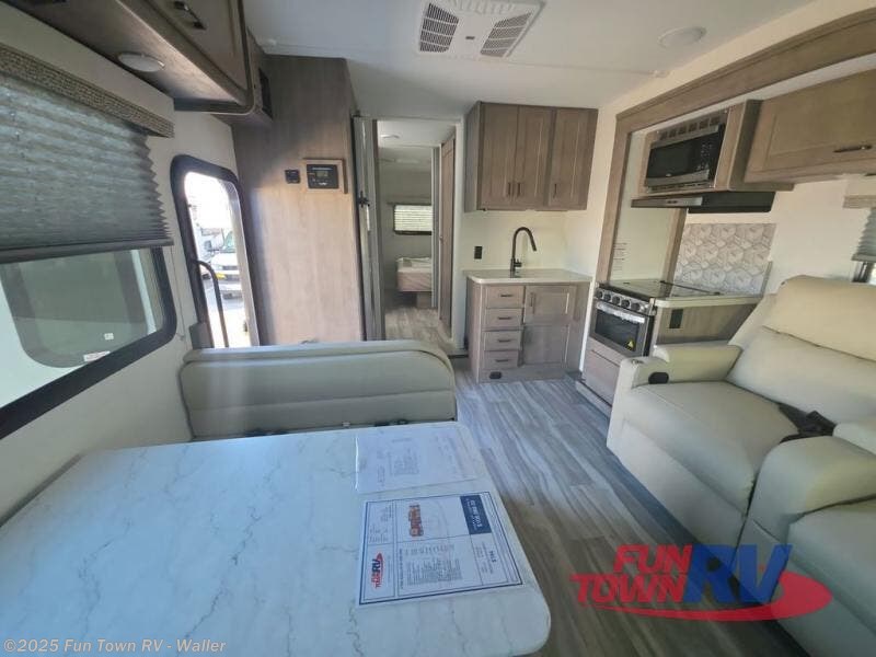 Imagine you and your family exploring new RV parks every chance you get with this Yellowstone Class C gas motorhome. The rear bedroom has a door that you can shut for privacy, and the separated bath has a sky dome above the shower for extra room to rinse off each morning. You can cook meals on the three-burner range and visit with other RVers while relaxing on the jackknife sofa.