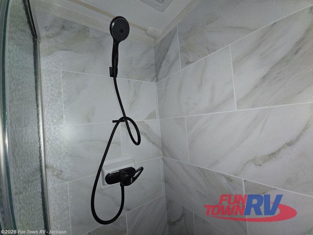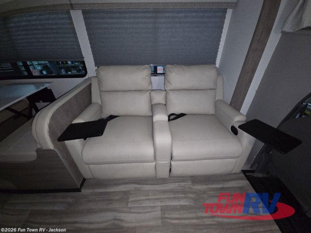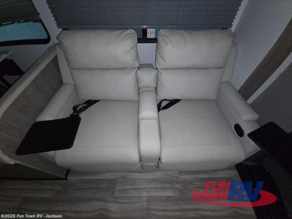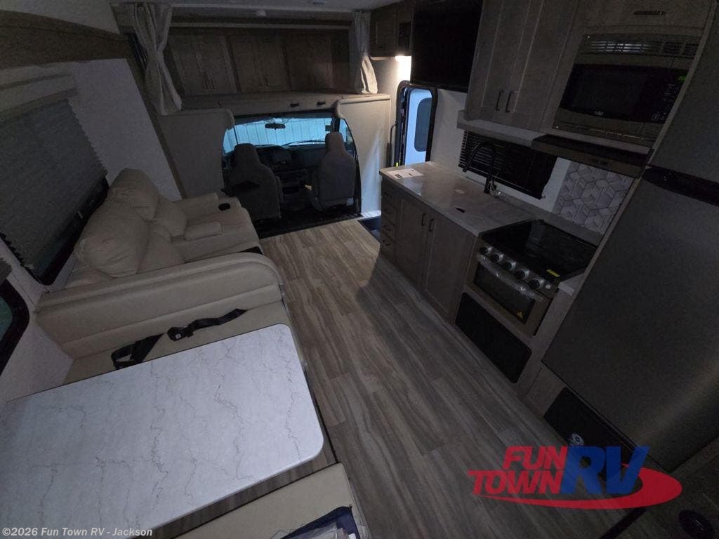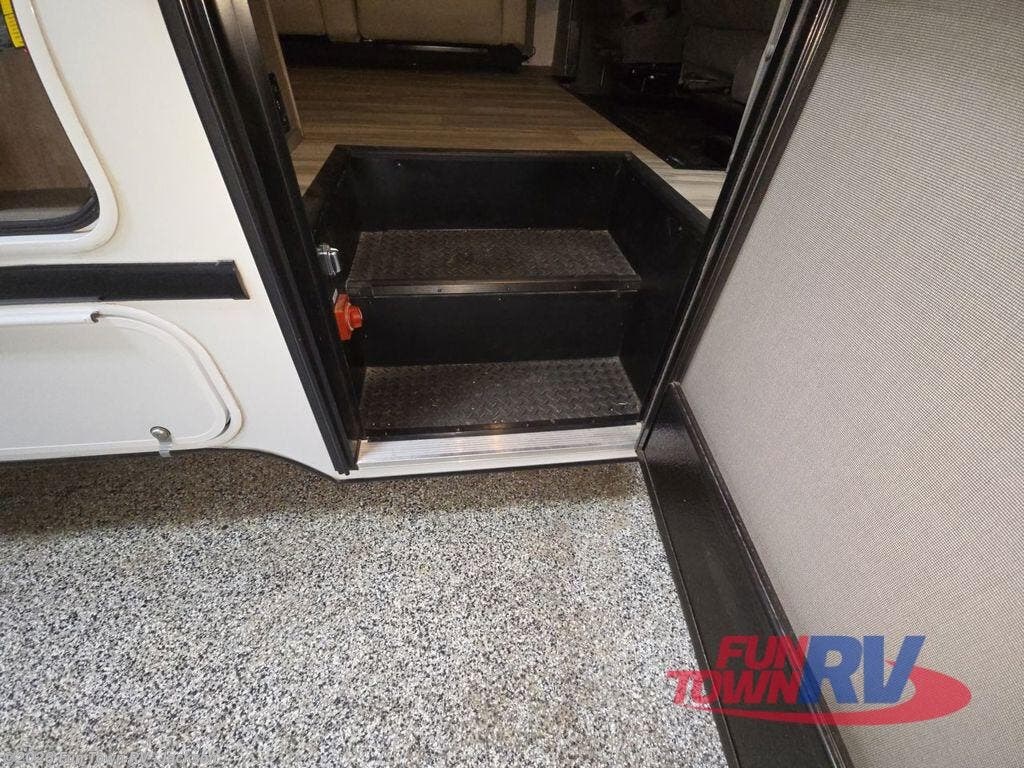 This motorhome is perfect for a small family or group of friends wanting to travel the country! Everyone will have a comfortable place to sleep between the overhead bunk, the 60" x 74" queen bed, and the jackknife sofa once converted, plus you can convert the booth dinette into one too. Prepare your best meals with the three burner cooktop and store any leftovers in the 10.2 cu. ft. 12V double door refrigerator/freezer. The separated bathroom makes it easy for one person to wash up in the shower while another uses the private toilet and sink. If you choose to add the optional TV with swing arm to the inside and the optional outside entertainment center then you will have plenty of entertainment for every trip!