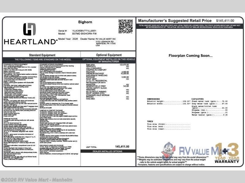 Request More Info on this 2026 Heartland Bighorn 37MD Offered for sale by RV Value Mart - Manheim