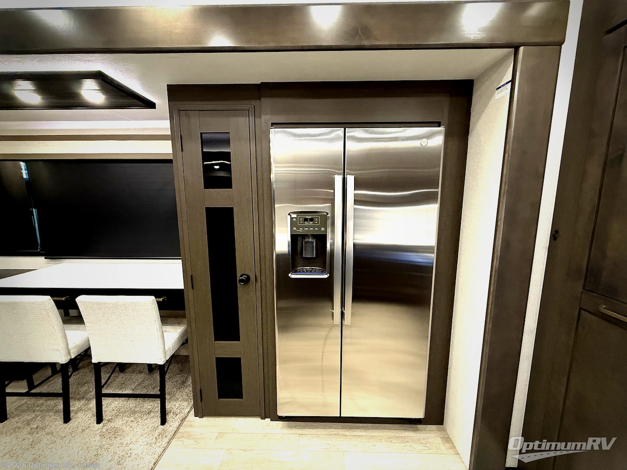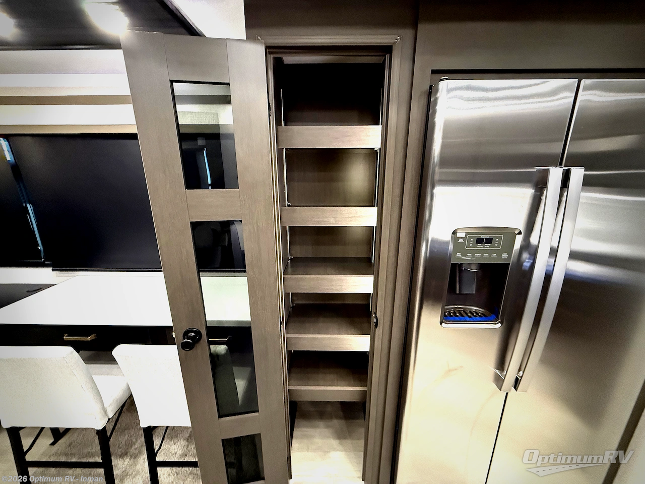 Starting from the back, this impressive 39RK features a rear kitchen designed in a convenient U-shape for easy accessibility and efficient meal prep. The kitchen is fully equipped with plenty of overhead cabinets, a convection microwave with an air fryer, a 24" range, and a pull-out pantry, perfect for the chef on the trip to cook in comfort. Across the kitchen, the large slide-out houses a 21-cu. ft. refrigerator and a second pantry with shelves, providing even more space to store groceries, snacks, and coffee essentials. The nearby desk/coffee bar and roll-out table create an inviting area to enjoy meals or unwind with a cup of coffee. The living area offers a spacious 100" L-shaped sofa and a theater seat facing the TV and fireplace, making it an ideal spot for relaxing or hosting movie nights. Moving forward, you’ll find a convenient half bathroom with linen shelves for added storage and accessibility. At the front, the private bedroom features a 72" x 80" king bed in a slide-out with a dresser across for ample storage. Finally, the full bathroom at the very front includes a 30" x 61" shower with a seat for comfort, a large sink, and a walk-in closet that provides generous space for all your clothing and gear.