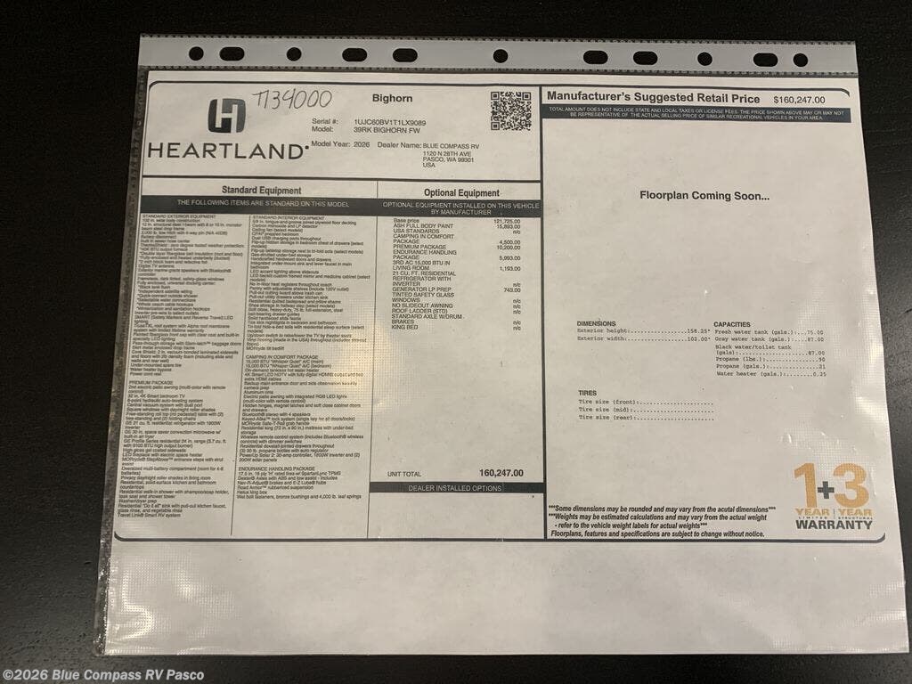 Request More Info on this 2026 Heartland Bighorn 39RK Offered for sale by Blue Compass RV Pasco