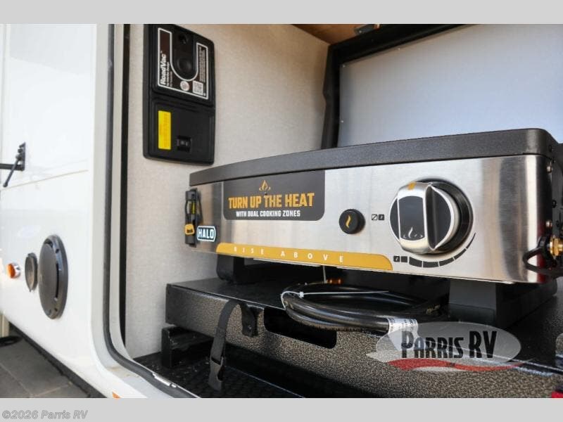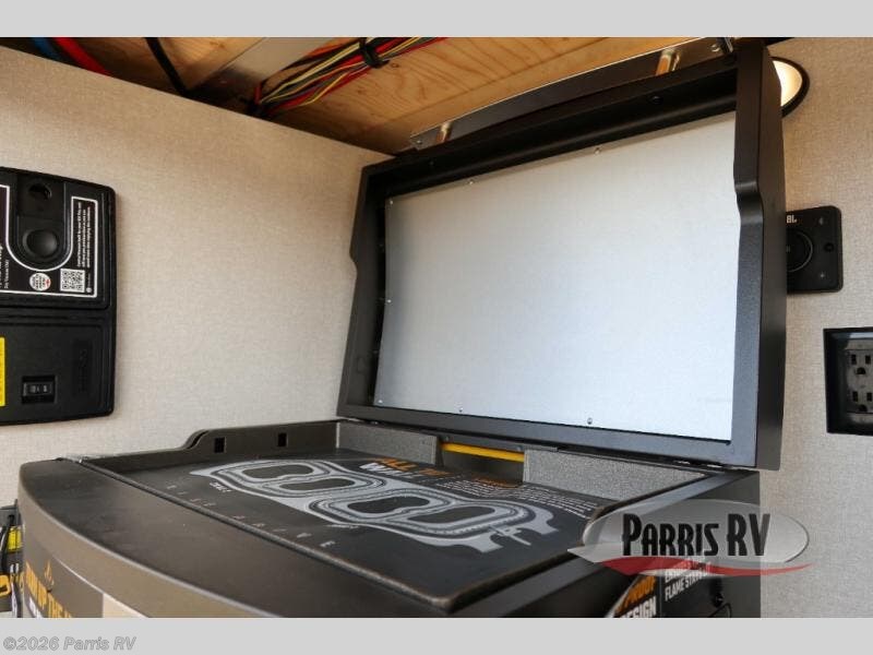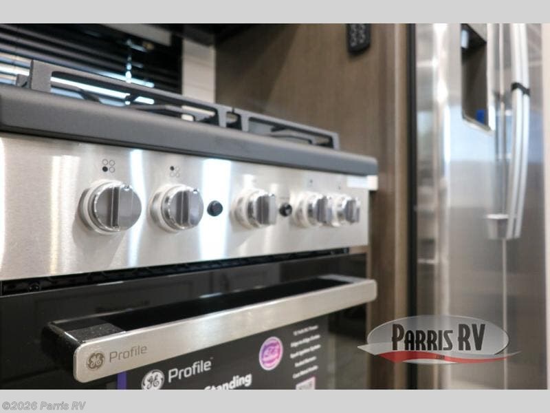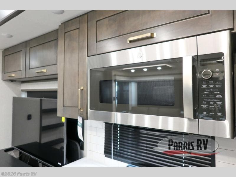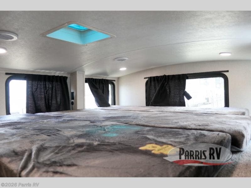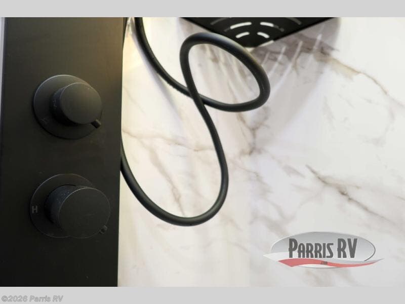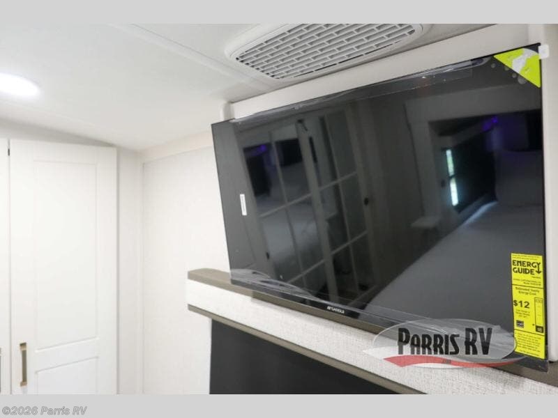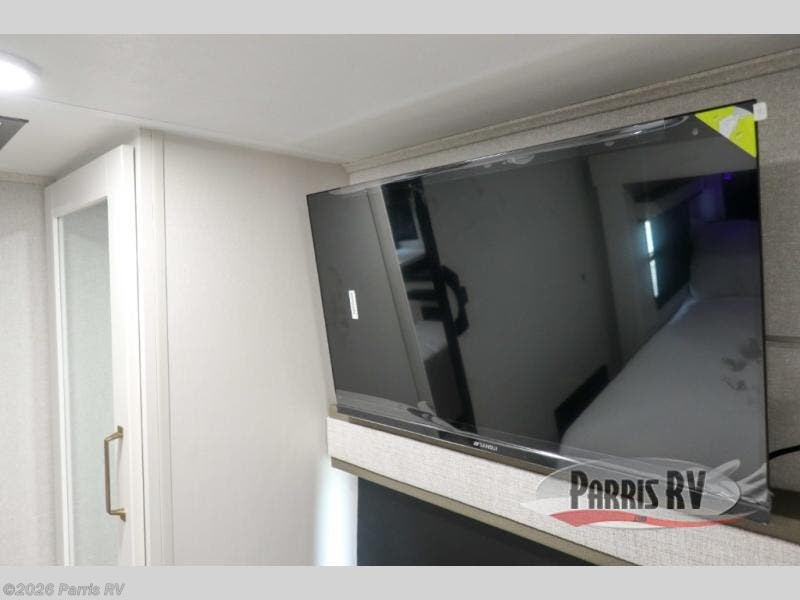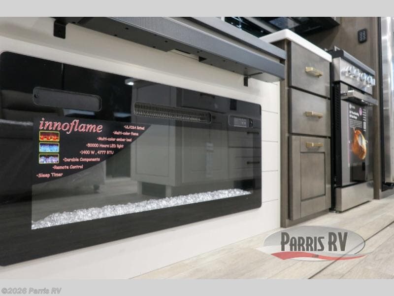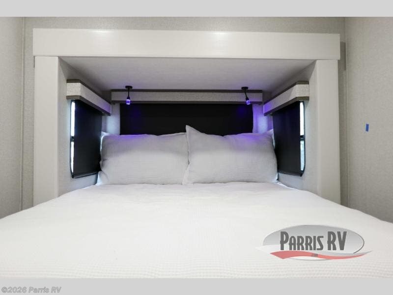 At the front of the 40DB fifth wheel, you’ll find the inviting front bedroom featuring a spacious 72" x 80" king bed, perfect for a restful night’s sleep. This room also includes a wardrobe and a flip-up dresser with a TV above, providing plenty of storage for clothing and essentials. Moving down the hall, one of two full bathrooms offers a 36" x 48" shower with a built-in seat for added accessibility, along with linen shelves for extra storage. At the center of the trailer, the main living area opens up with dual opposing slides for maximum comfort and room to move. One slide houses a 21-cu. ft. residential refrigerator and a 30" space-saving convection microwave with a built-in air fryer, while the central kitchen island includes a sink and pull-out cutting board, everything you need to prepare meals on the go. Across the way, the opposite slide features a roll-out table and theater seating, creating the perfect space to dine and relax after a long day. At the rear, the second bedroom includes a 60" x 80" queen bed in a slide-out with two wardrobes opposite for ample storage, plus a private full bathroom complete with a tub/shower combo and its own exterior exit for added convenience. Above it all, the loft provides three 30" x 80" bed mats and a loft cabinet, offering extra-sleeping space or additional storage for the whole family’s adventures.