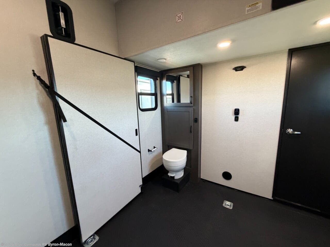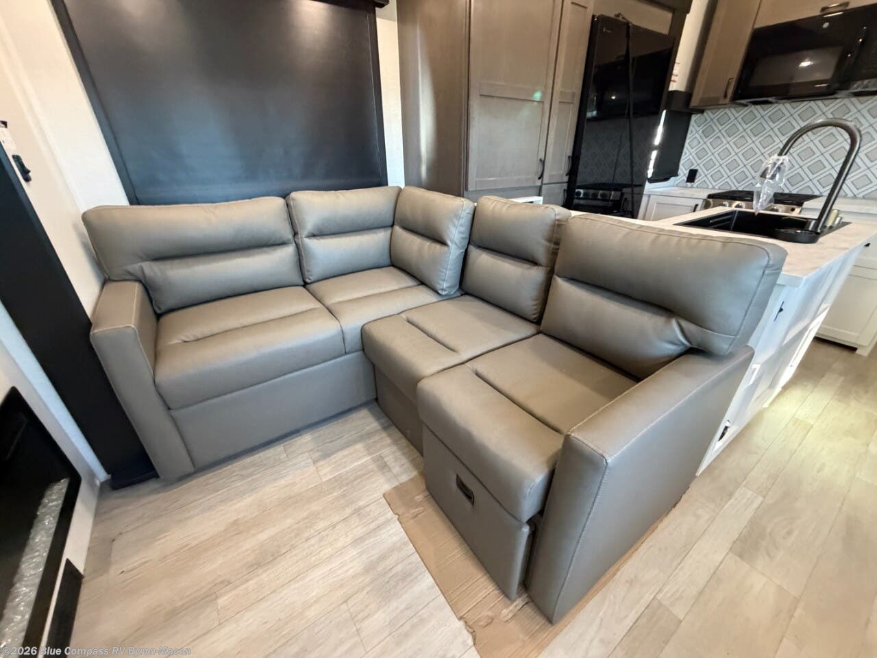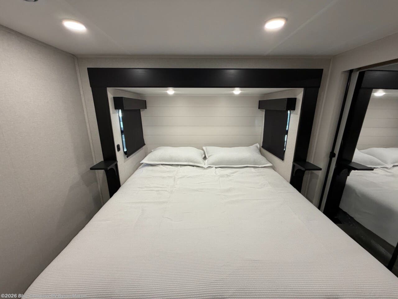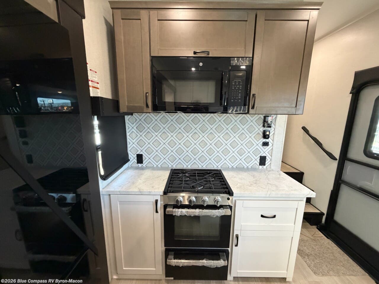 Get on the road with this toy hauler fifth wheel! The 14' garage is a playground for your toys, offering ample space for your ATV, motorcycle, or other gear. The loft above provides additional storage and an electric queen bed for a comfortable rest. The living room is a haven for relaxation, featuring an L-shaped sofa and a theater-style seat perfect for enjoying your favorite shows or movies on the TV. The kitchen is a culinary delight, equipped with a 12V refrigerator, microwave, overhead cabinets, and ample countertop space. The credenza with roll-out table is perfect for meal prep or serving, and the full bathroom provides a private space to freshen up, while the half bath option in the garage gives you more options. The cherry on top is that the front bedroom is a regal retreat, featuring a king bed, drawers, and a spacious walk-in closet.