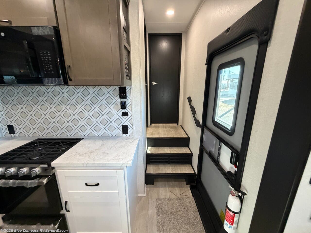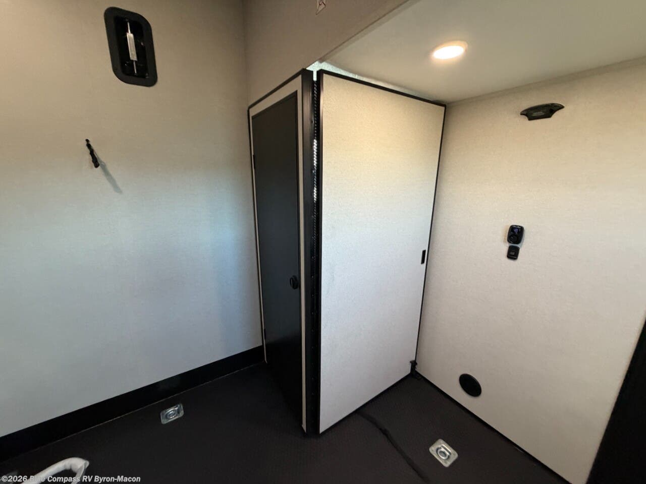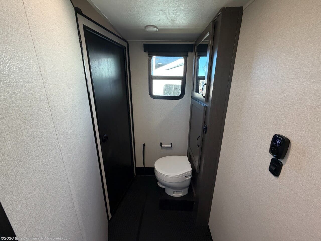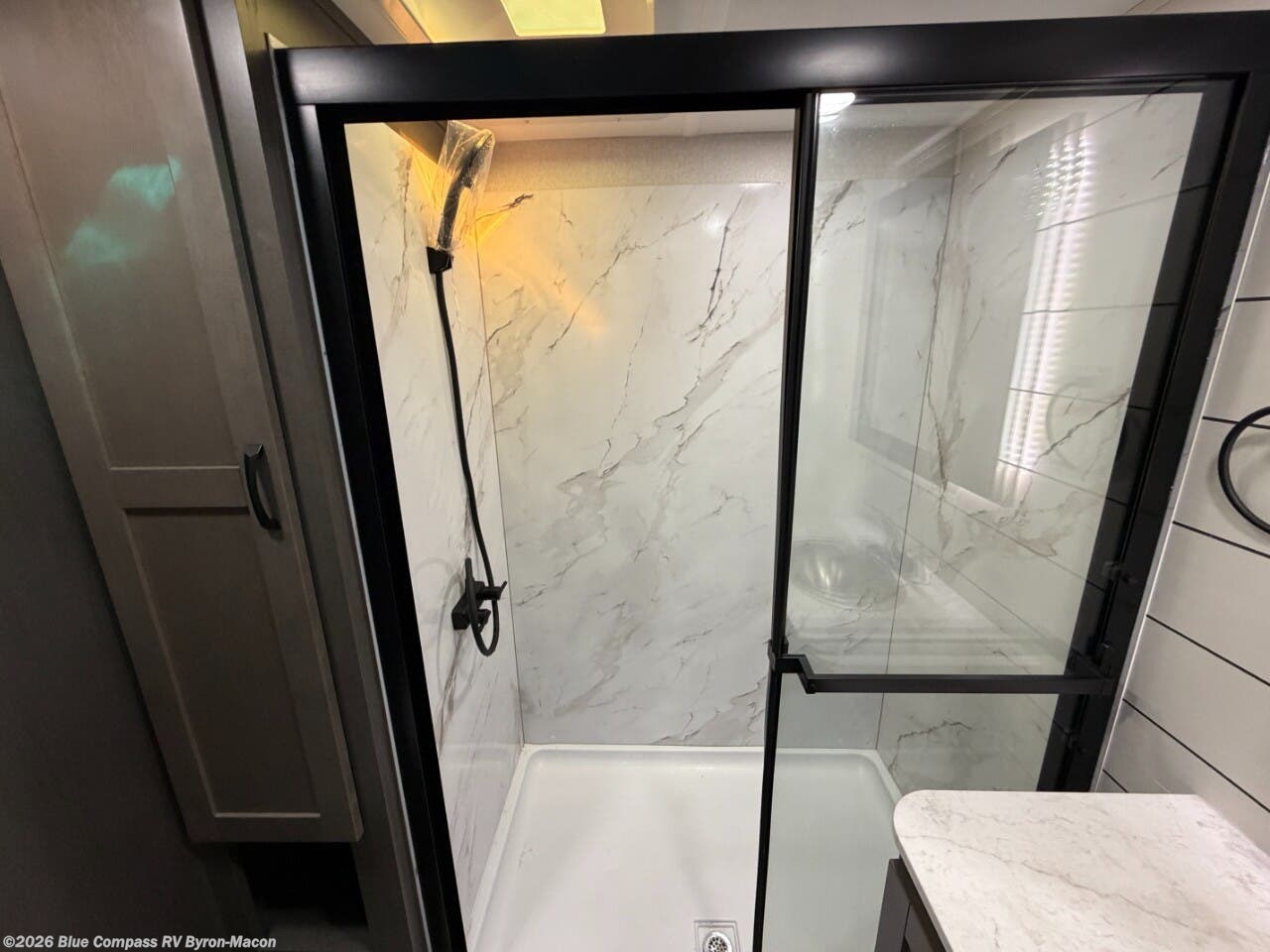 Get on the road with this toy hauler fifth wheel! The 14' garage is a playground for your toys, offering ample space for your ATV, motorcycle, or other gear. The loft above provides additional storage and an electric queen bed for a comfortable rest. The living room is a haven for relaxation, featuring an L-shaped sofa and a theater-style seat perfect for enjoying your favorite shows or movies on the TV. The kitchen is a culinary delight, equipped with a 12V refrigerator, microwave, overhead cabinets, and ample countertop space. The credenza with roll-out table is perfect for meal prep or serving, and the full bathroom provides a private space to freshen up, while the half bath option in the garage gives you more options. The cherry on top is that the front bedroom is a regal retreat, featuring a king bed, drawers, and a spacious walk-in closet.
