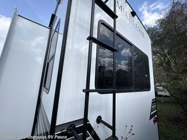 You'll be able to see the country in full luxury with this Milestone fifth wheel! There is a private bedroom in the front with a king-size bed where you can sleep comfortably each evening.The kitchen has all the appliances you will need to make the most out of your trips featuring a convection microwave, 21” oven, and a 16 cu. ft. 12V refrigerator. The living room will make for a great entertaining area, you can relax on the 78" hide-a-bed sofa that will serve as a bed so you can sit back and even have a nap! There is a full bathroom that has a 30" by 48" shower to freshen up each day. This RV has a wonderful design featuring dual opposing slides that will make for the real residential experience and make the most out of your travel.