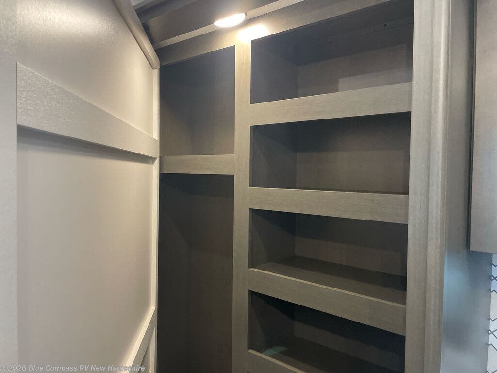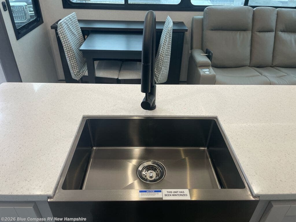 The Heartland Milestone is a full-profile luxury fifth wheel that is ready to help you make the most of your adventures! You will find a TrussTXL Roof System with Alpha roof membrane system offering quality exterior protection, and the Power Up Solar that includes a 200 watt solar panel will let you go off-grid when the adventure calls for it. The upgraded MORryde Step Above entrance steps will help you enter your unit with ease, and the 6-point hydraulic auto-leveling system comes standard to help you keep your unit secure while camping. The interior kitchen has some great features, like residential solid surface countertops and a large farmhouse sink. There are roller night shades throughout each unit to have privacy and comfort.