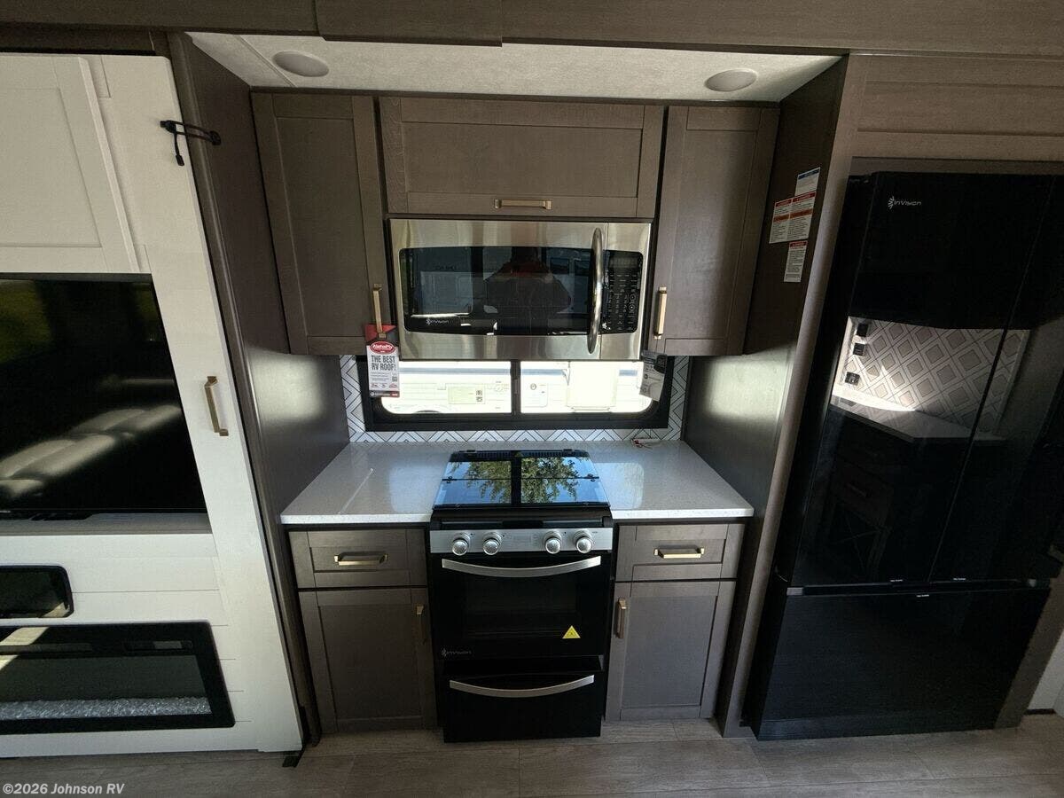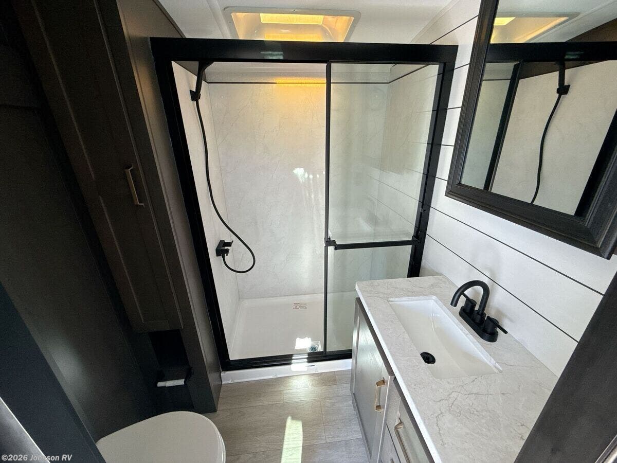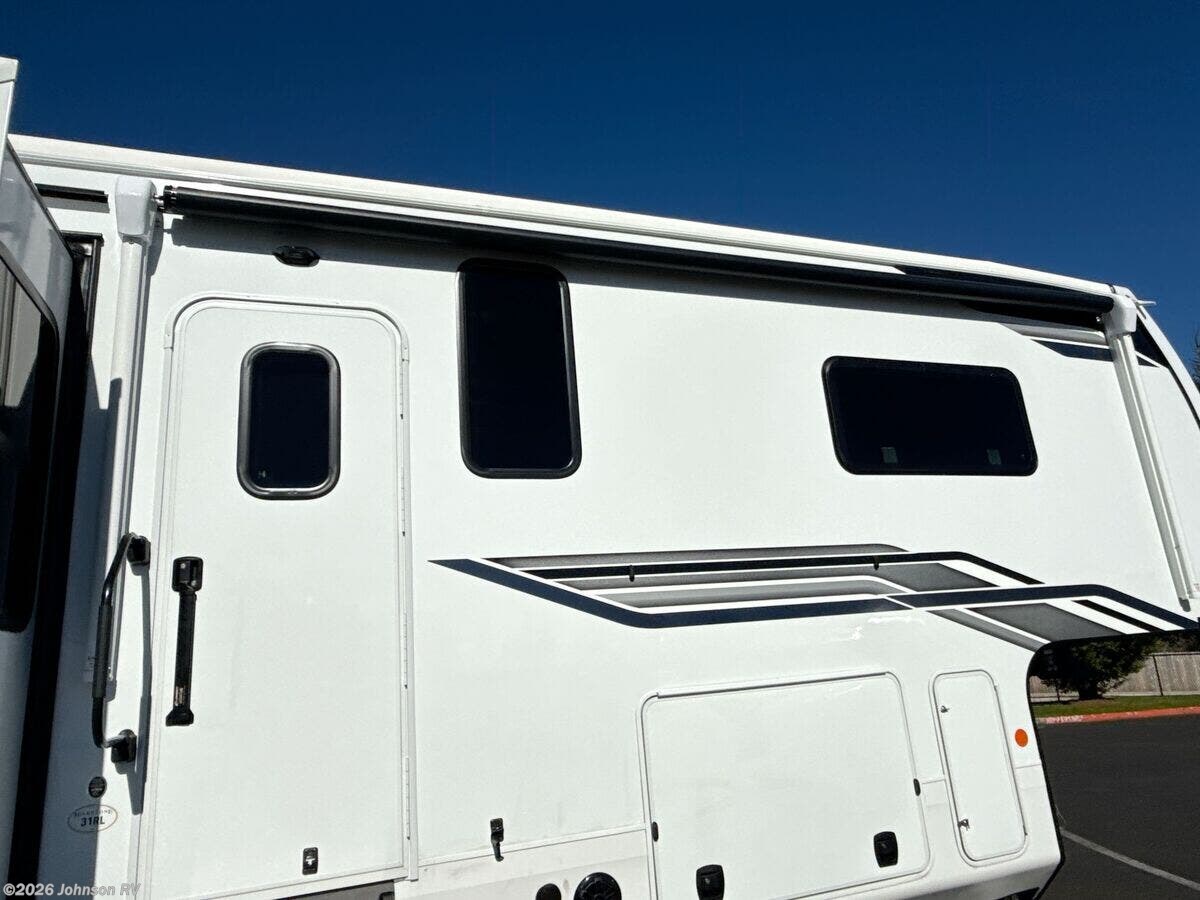 Features Include: Camping in Comfort, Power Patio Awnings, LED Accent Lighting, Roller Night Shades, Entertainment Center, Sofa Sleeper (vbm), Pantry, High Rise Faucet, Designer Backsplash, Cooktop Glass Cover, 21-inch Oven, Systems Center, Side, Backup), 4k Smart LED HDTV, Underbed Storage, Reading Lights, Nightstands (vbm), Wardrobe, Dresser Drawers, Medicine Cabinet, Vanity Sink, Linen Storage, Toilet Mechanicals, 1800w Inverter, Two 30# LP Bottles, LP Auto-Regulator, 50-Amp Service Cord, 35k Furnace, 15k Main AC, 15k Bedroom AC, 102-inch Wide-Body, Nev-R-Adjust Brakes, Aluminum Wheels, TrussTXL Roof System, Pass-Through Storage
