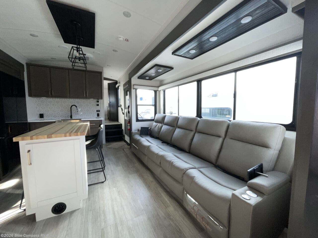 You'll be shocked with how many people can travel in full luxury with this Milestone fifth wheel! There are dual private bedrooms featuring a king-size bed in the front bedroom and a queen-size bed in the rear bedroom so you and your guests can have their own space. Use the loft for added sleeping space for the kiddos! This RV also has two full bathrooms on each end so it is of easy access, also, the rear bathroom has its own exterior entrance! The kitchen has all the counter space you will need to prepare your everyday meals, after cooking you can enjoy your creation at the island table with chairs.There is a super lounger that has all the space you'll need to enjoy quality time with all of your guests! Enjoy a wonderful design featuring dual opposing slides that will make for the real residential experience and make the most out of your travel.