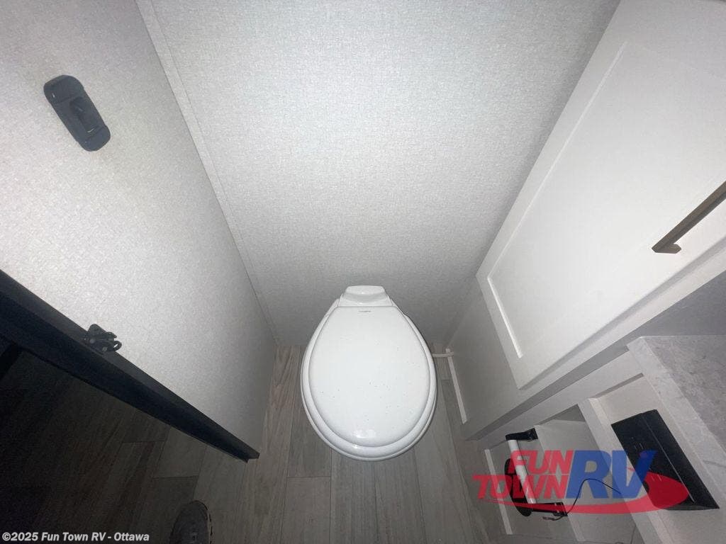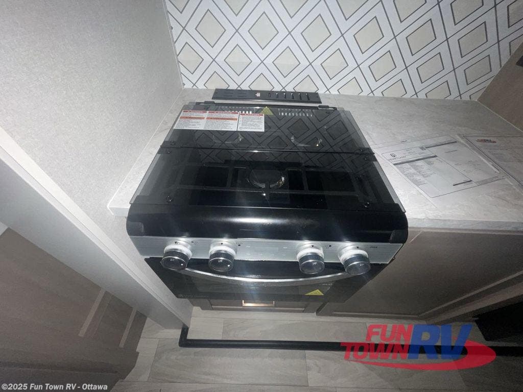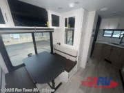 At the front of the trailer, you'll find a versatile 60" x 75" queen Murphy bed that easily converts into a 60" Jack Knife sofa, offering comfortable seating during the day and a cozy sleeping space at night. The slide-out expands the living area with a 60" theater seat, perfect for relaxing, while also housing a fully equipped kitchen with a three-burner range and an 11 cu. ft. refrigerator, making meal prep easy and convenient. Across from the slide, a spacious 38" x 68" dinette provides additional seating for meals, games, or gathering, situated right next to a pantry for storing all your dry goods. In the rear corner, the bathroom includes a roomy 40" shower, a foot-flush toilet, and a linen closet to keep towels and essentials neatly organized and within reach.