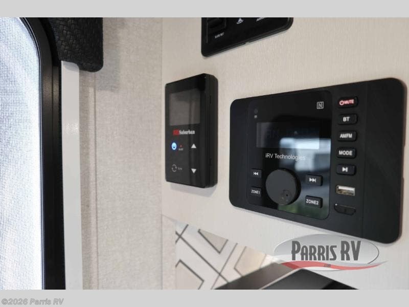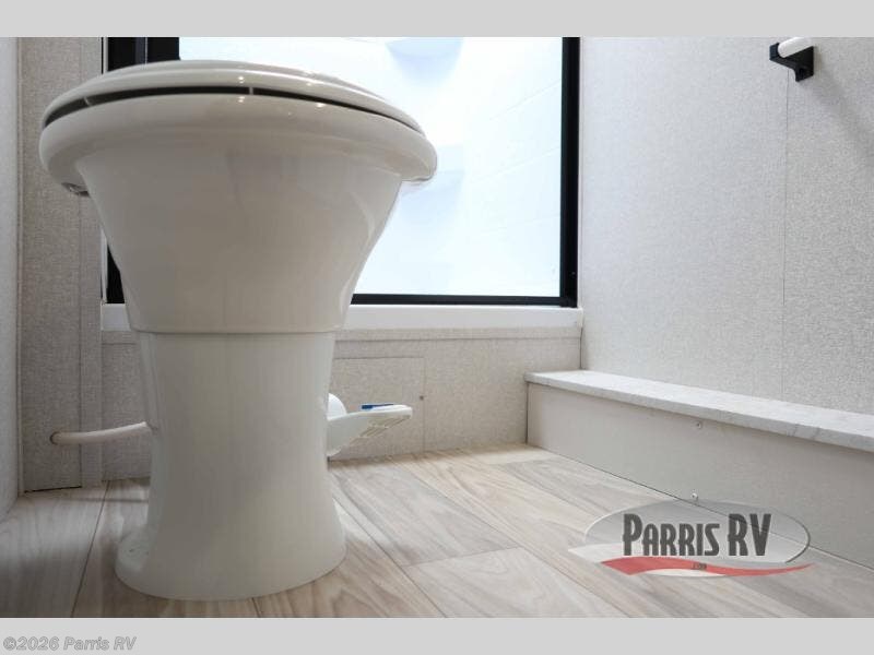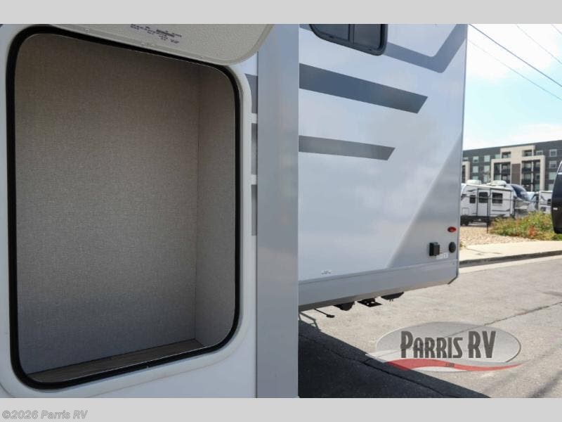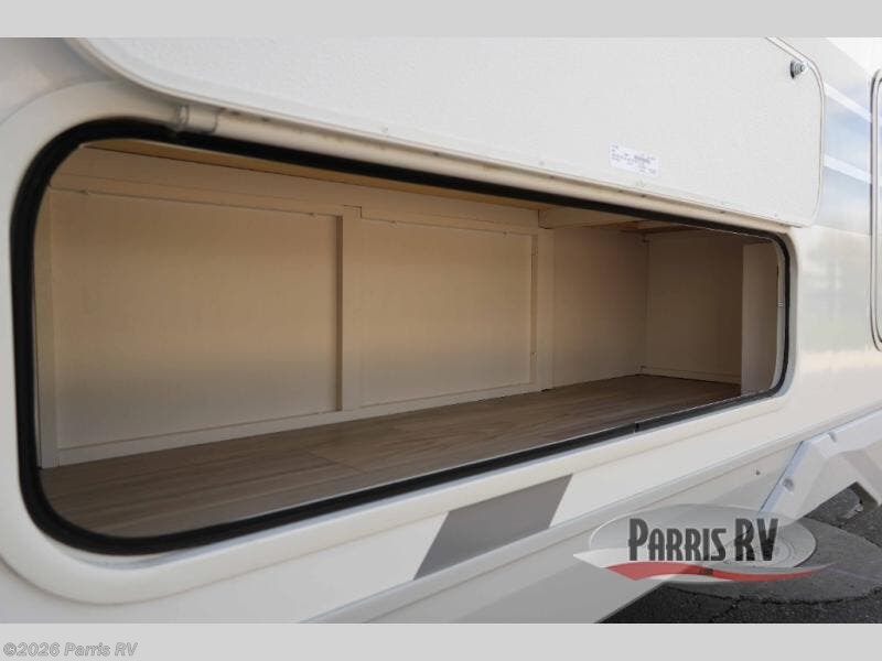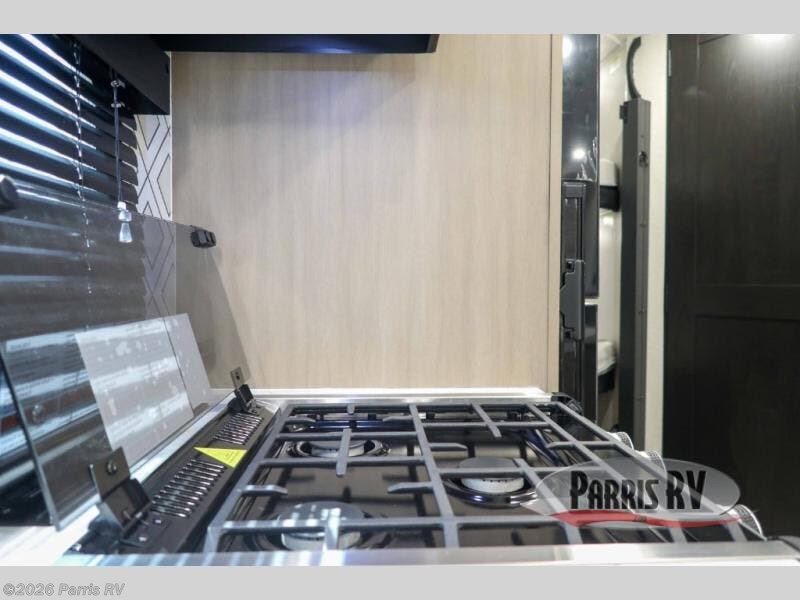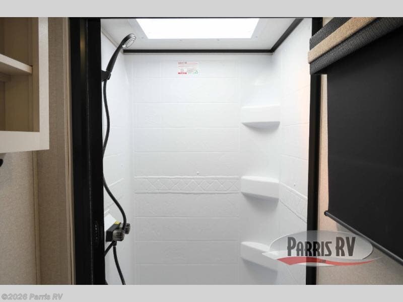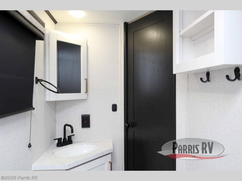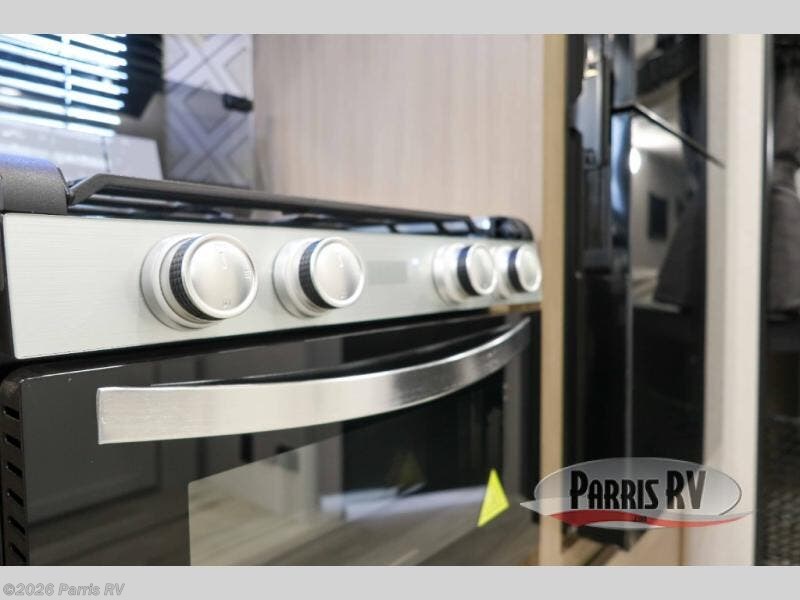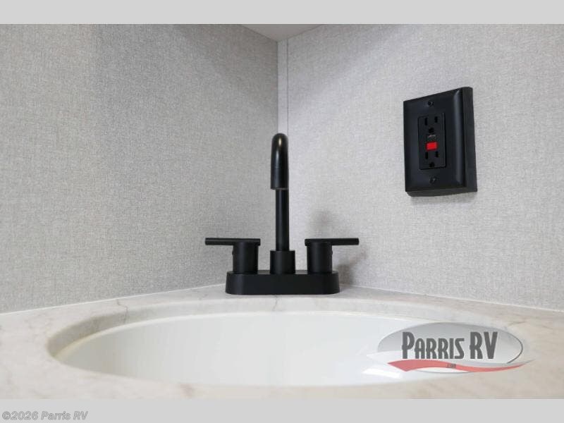 Once you step inside, you'll find a well designed front bedroom area featuring a 60" x 75" Murphy queen bed that transforms into a jack knife sofa, giving you flexible seating during the day. Each side includes a convenient nightstand for your essentials. In the slide-out, there's a combination wardrobe/pantry for added storage, along with a spacious 40" x 82" U-dinette, perfect for sharing meals, playing board games, or relaxing together. The dinette also converts into extra-sleeping space when needed. Across, the L-shaped kitchen offers everything you need, including a stainless-steel sink, microwave, cooktop, and a generous 11 cu. ft. refrigerator. In the rear, one corner houses cozy double bunks with storage below great for sleeping extra guests or stowing your gear. The opposite corner features a full bathroom complete with a 30" x 36" shower, foot-flush toilet, and a corner sink with a medicine cabinet to keep your toiletries organized.