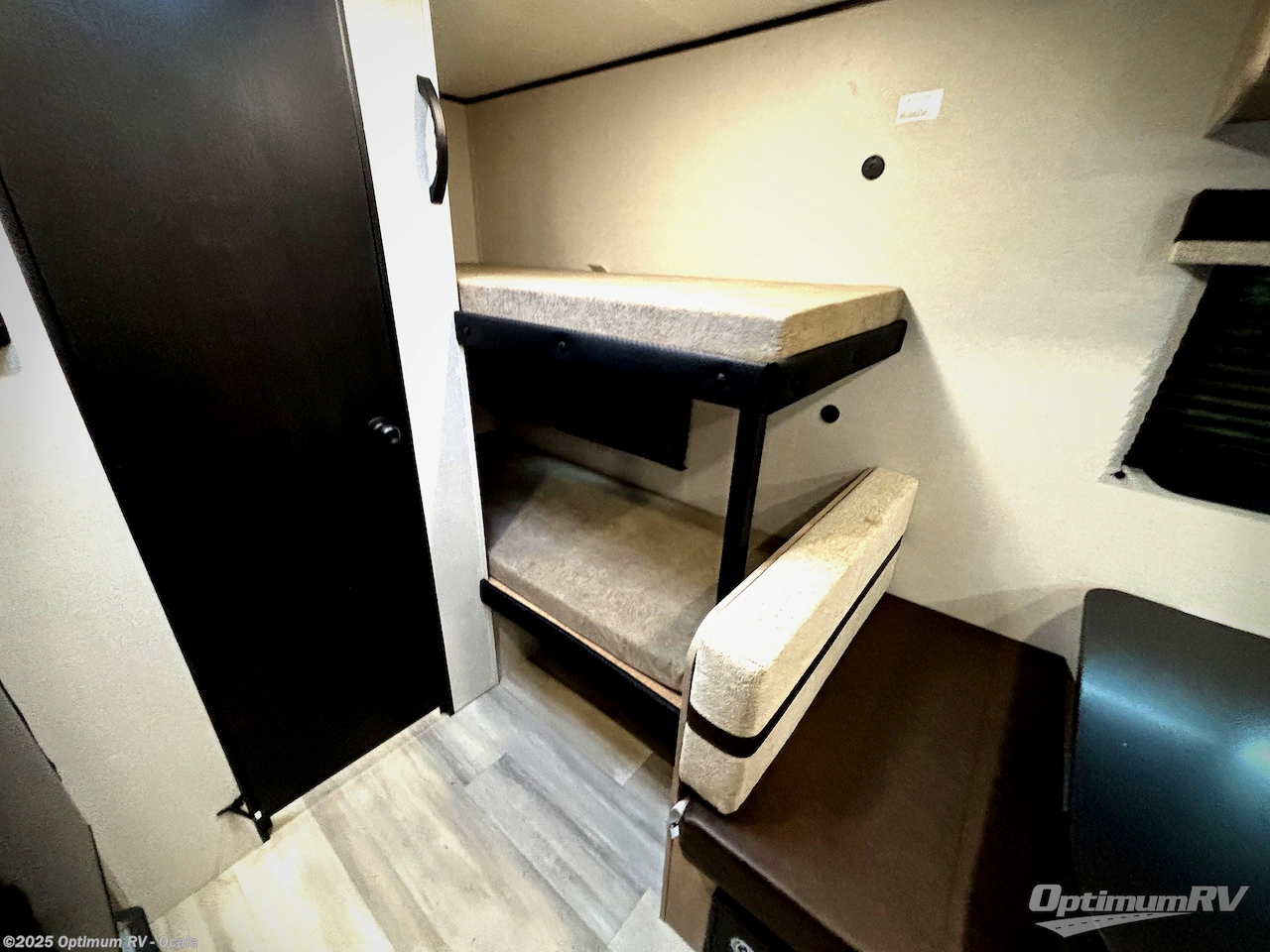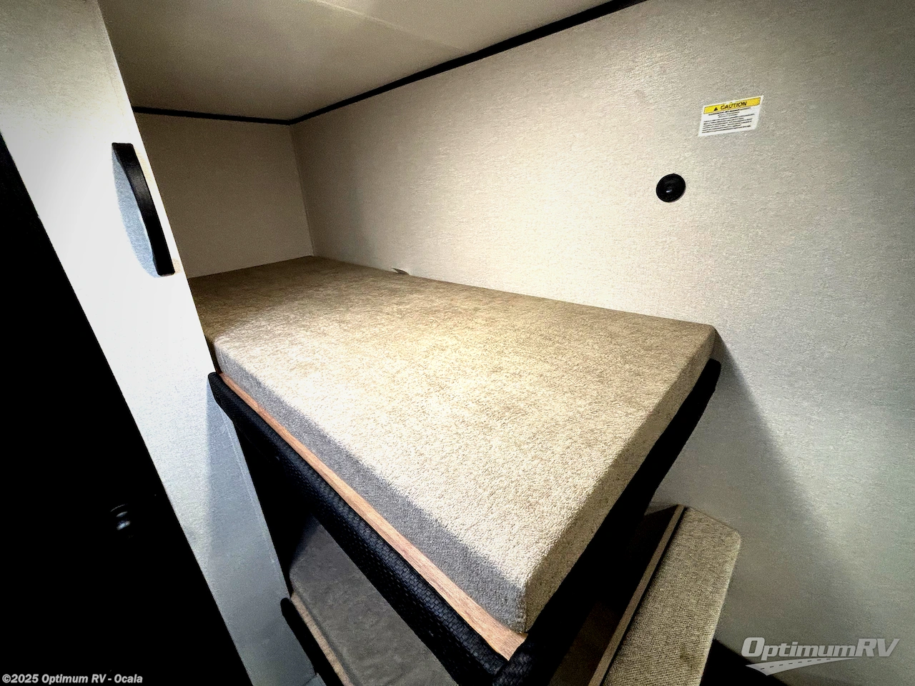 Camping trips are made easy in this Lynx Edition travel trailer with bunk beds for guests or little ones. You'll find the front queen bed for a great night's rest, along with a nightstand and wardrobe to keep your things tidy. The rear corner private bath includes a foot-flush toilet and a 24" x 36" shower, so you won't have to leave the camper in the middle of the night. A two-burner cooktop and microwave oven will let you make meals each day, and a 12V refrigerator will keep your food fresh!