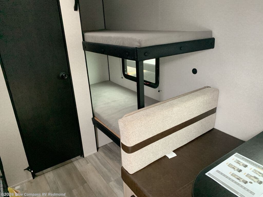 Camping trips are made easy in this Lynx Edition travel trailer with bunk beds for guests or little ones. You'll find the front queen bed for a great night's rest, along with a nightstand and wardrobe to keep your things tidy. The rear corner private bath includes a foot-flush toilet and a 24" x 36" shower, so you won't have to leave the camper in the middle of the night. A two-burner cooktop and microwave oven will let you make meals each day, and a 12V refrigerator will keep your food fresh!