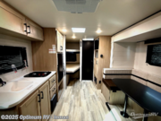 Camping trips are made easy in this Lynx Edition travel trailer with double-size bunk beds for guests or little ones. You'll find the front queen bed for a great night's rest, along with an overhead shelf and a wardrobe to keep your things tidy. The rear corner private bath includes a foot-flush toilet and a 24" x 40" shower, so you won't have to leave the camper in the middle of the night. A two-burner cooktop and microwave oven will let you make meals each day, and you can dine around the U-shaped dinette, which is also within a slide out for more space!