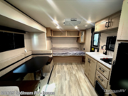 Camping trips are made easy in this Lynx Edition travel trailer with double-size bunk beds for guests or little ones. You'll find the front queen bed for a great night's rest, along with an overhead shelf and a wardrobe to keep your things tidy. The rear corner private bath includes a foot-flush toilet and a 24" x 40" shower, so you won't have to leave the camper in the middle of the night. A two-burner cooktop and microwave oven will let you make meals each day, and you can dine around the U-shaped dinette, which is also within a slide out for more space!