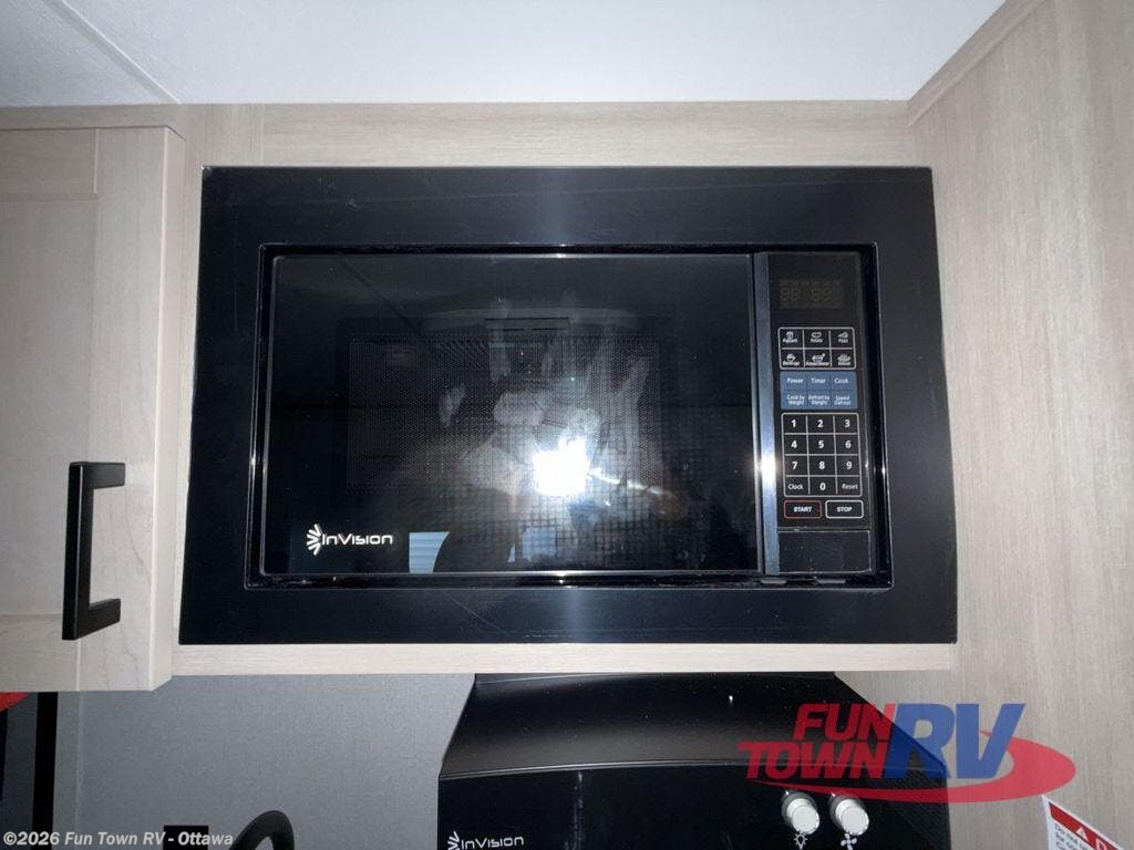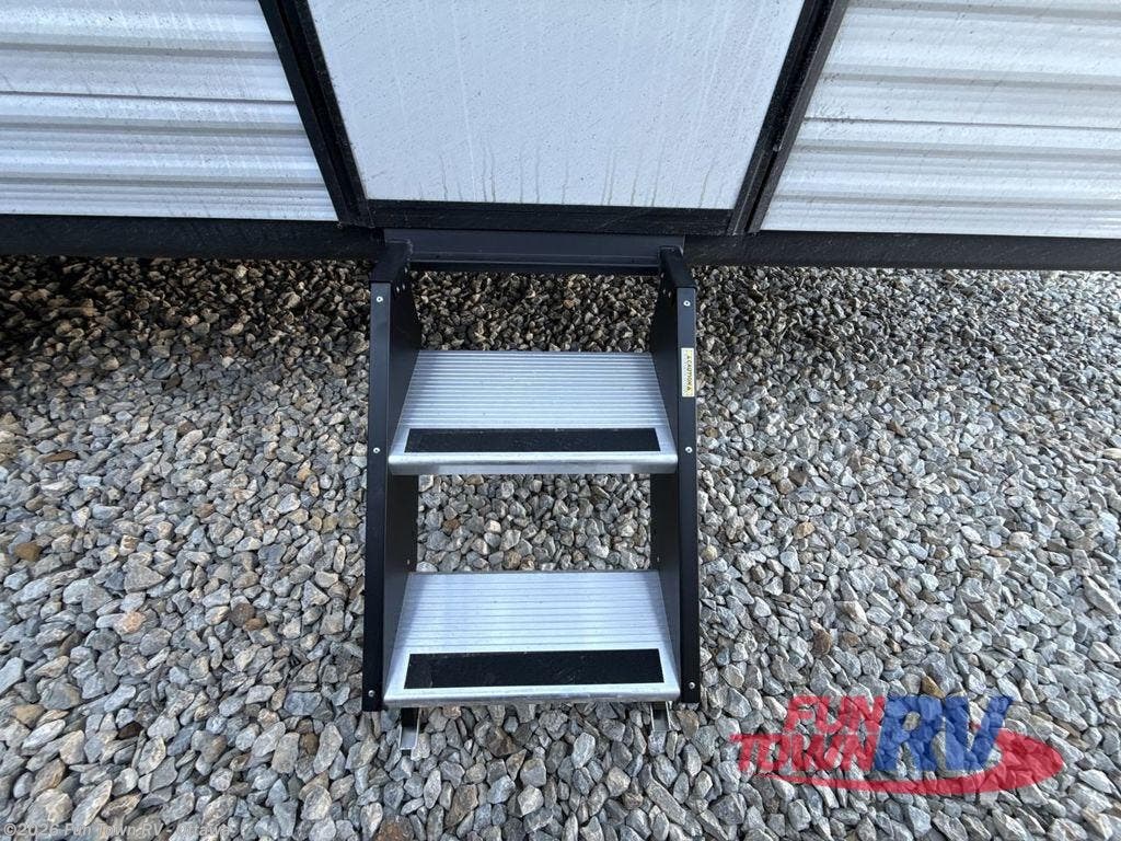 Camping trips are made easy in this travel trailer with double-size bunk beds for guests or little ones. There is a front Murphy bed that will provide you with more space during the day when you put it away to reveal the jack knife sofa. The rear corner full bath includes a foot-flush toilet, a 30" x 36" shower and a sink, so you won't have to leave the camper in the middle of the night. A two-burner cooktop and microwave oven will let you make meals each day, and you can dine around the U-shaped dinette, which is also within a slide out for more space!