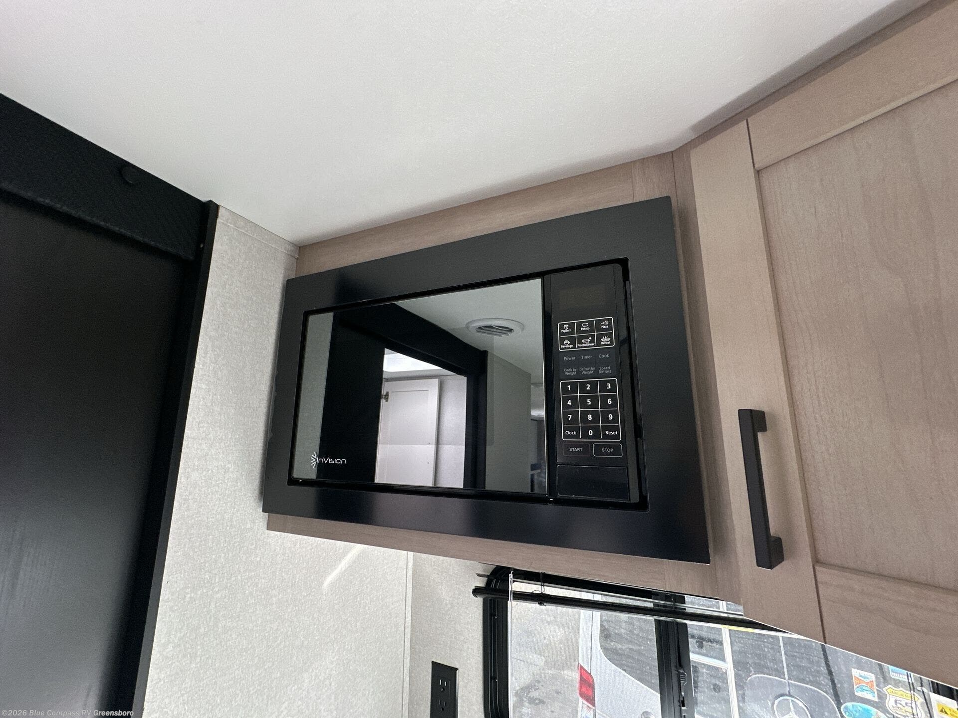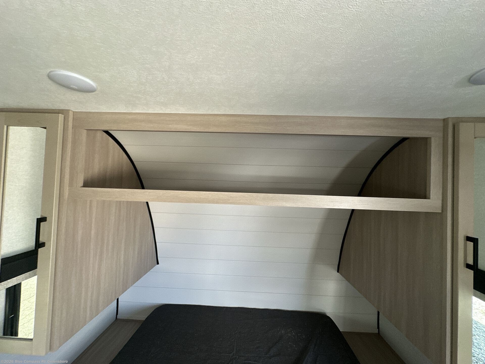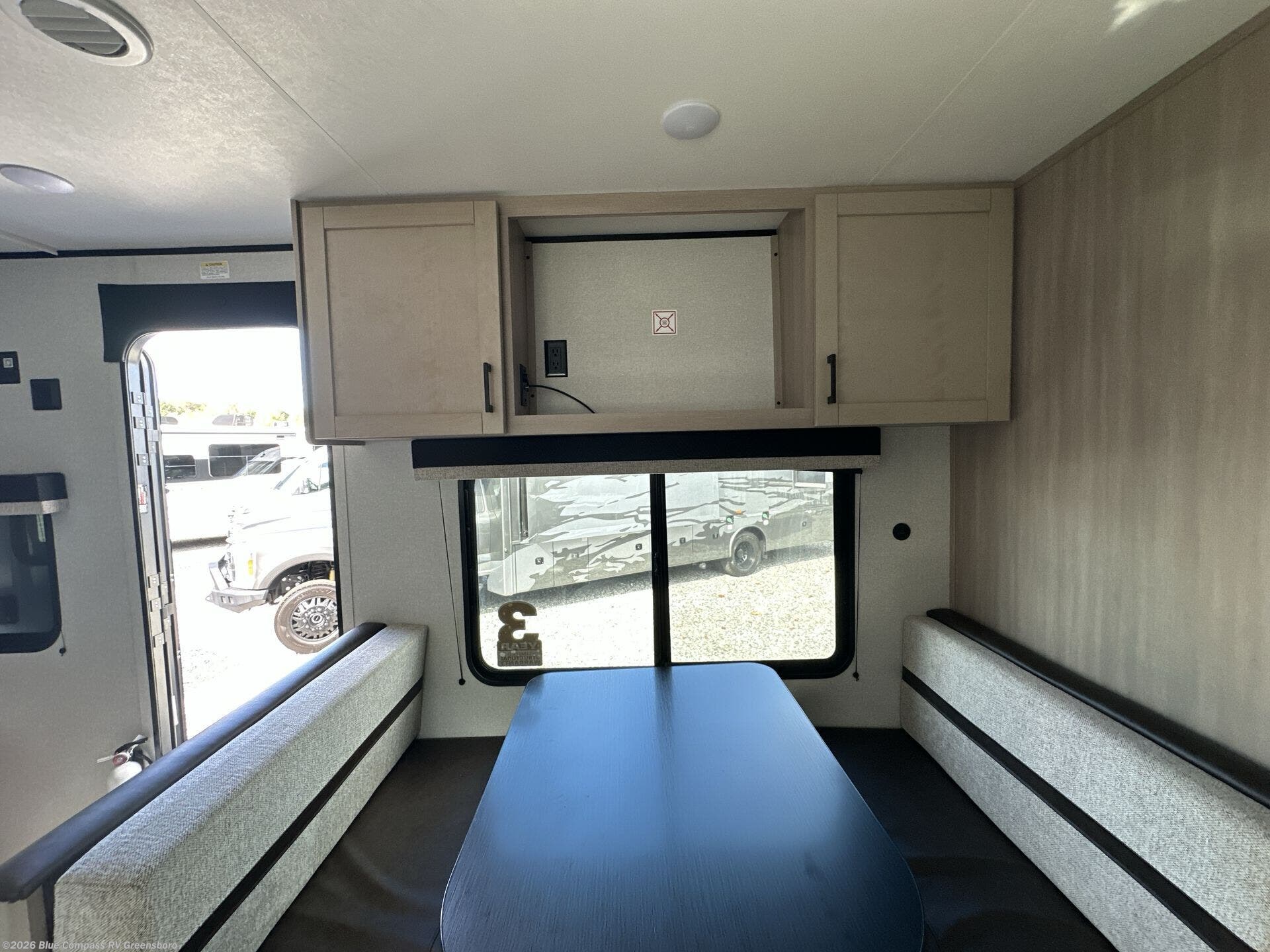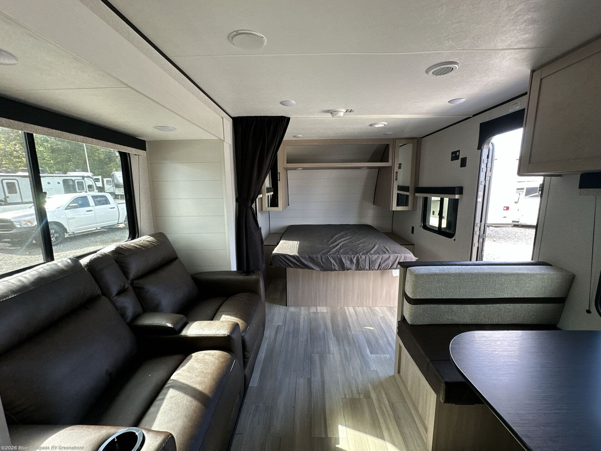 You'll love having your own space in this travel trailer thanks to the front bedroom with a queen bed, dual bedside wardrobes, and privacy curtain. A large slide out provides more space to move about, and there is theater seating here to relax in the evenings. You can make meals on the three-burner cooktop or in the microwave oven, and you can dine at the booth dinette. This unit also includes a 12V refrigerator and pantry for food storge plus ample overhead cabinets for your personal belongings.