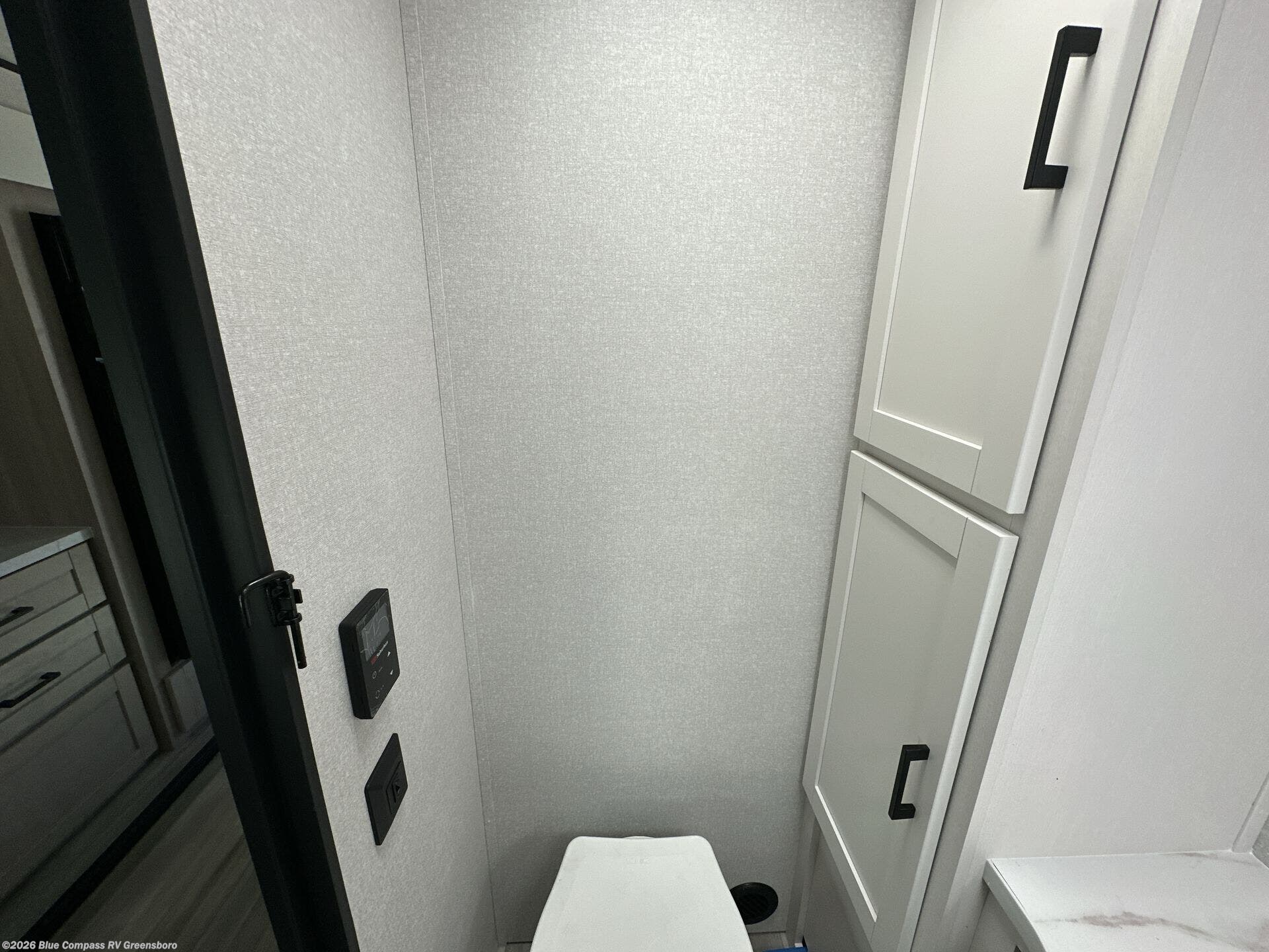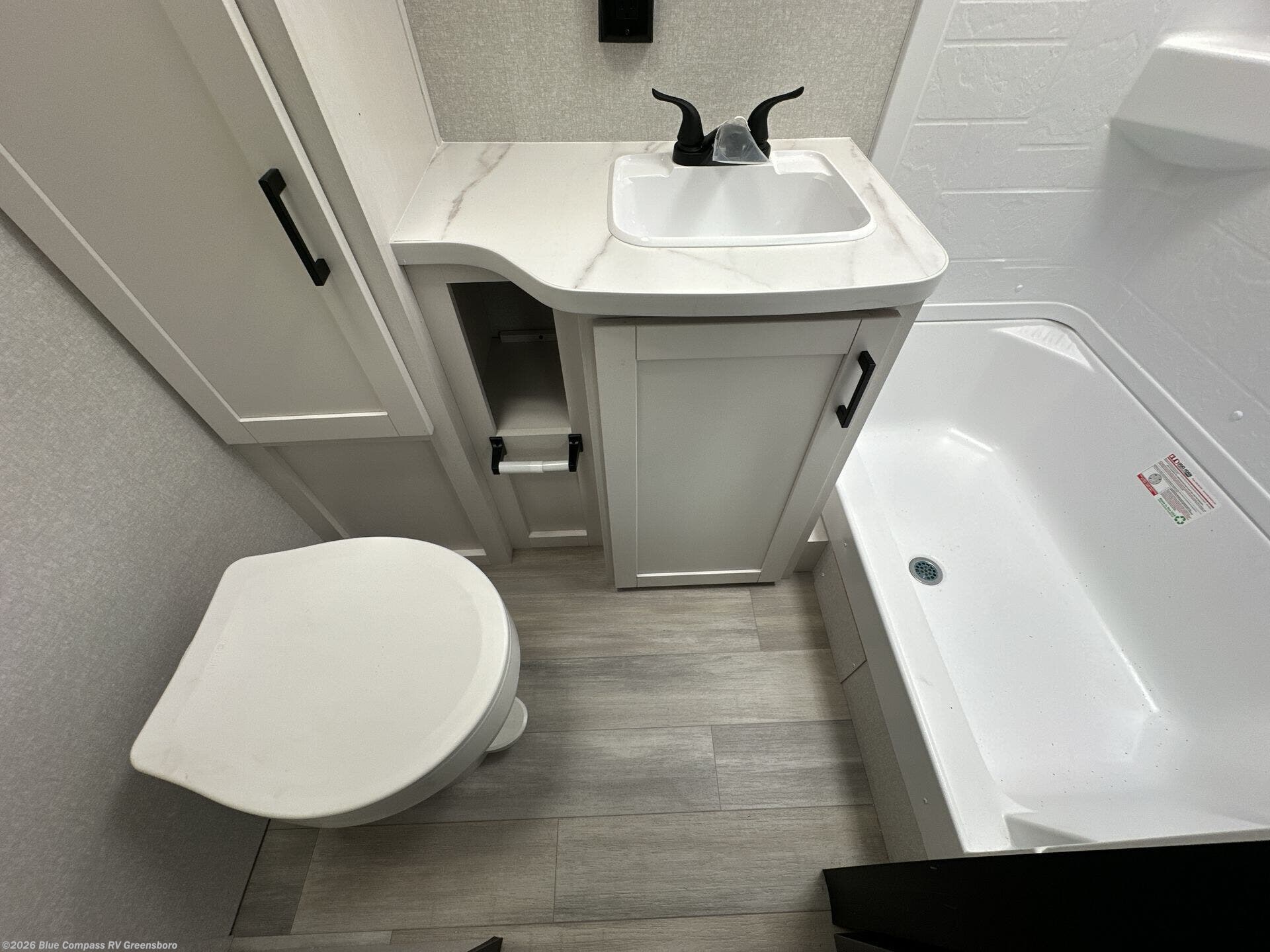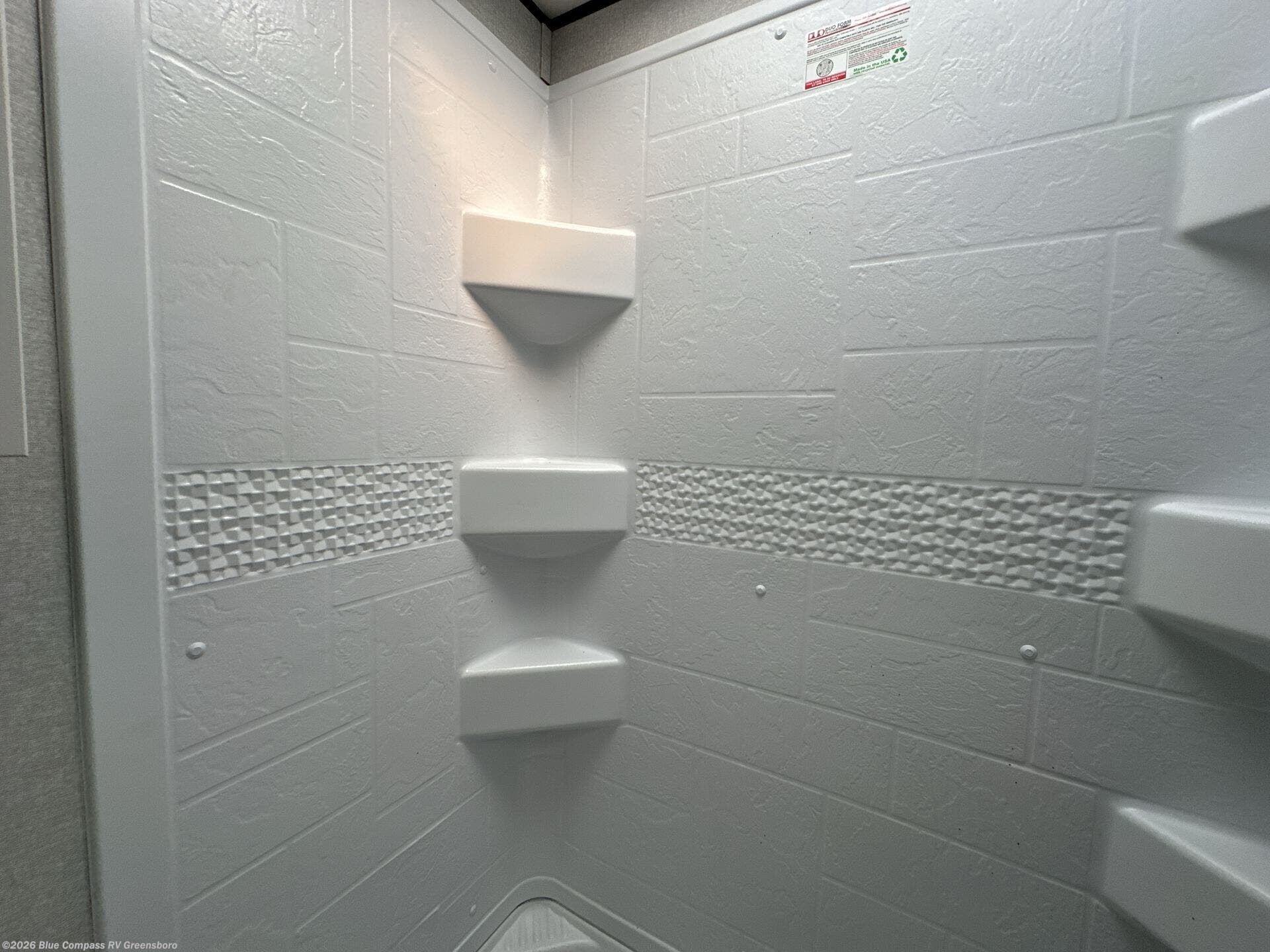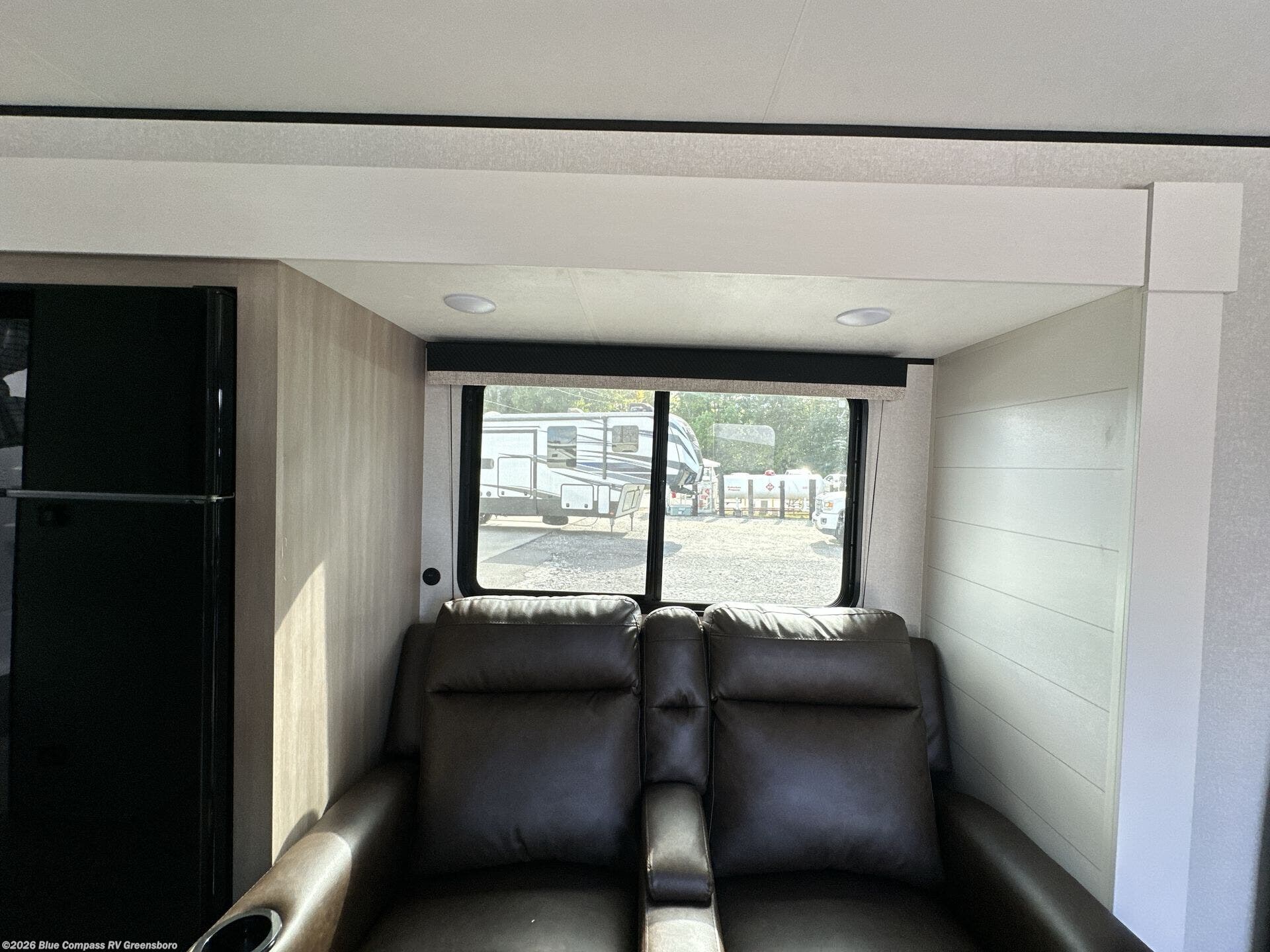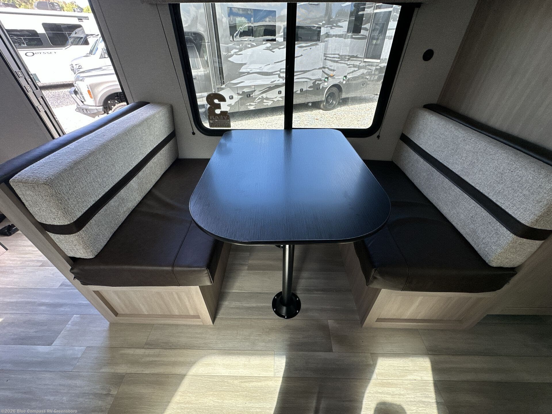You'll love having your own space in this travel trailer thanks to the front bedroom with a queen bed, dual bedside wardrobes, and privacy curtain. A large slide out provides more space to move about, and there is theater seating here to relax in the evenings. You can make meals on the three-burner cooktop or in the microwave oven, and you can dine at the booth dinette. This unit also includes a 12V refrigerator and pantry for food storge plus ample overhead cabinets for your personal belongings.
