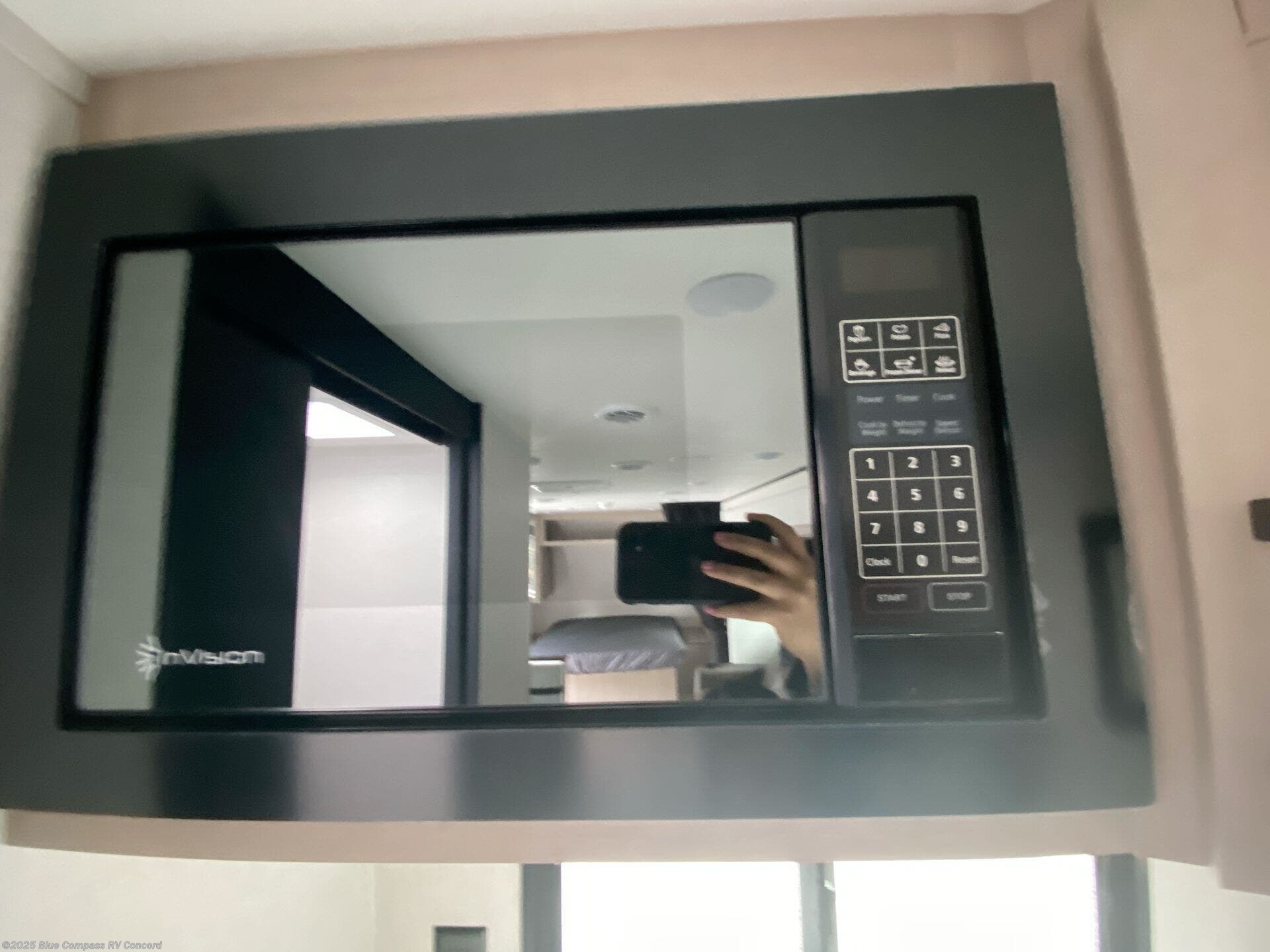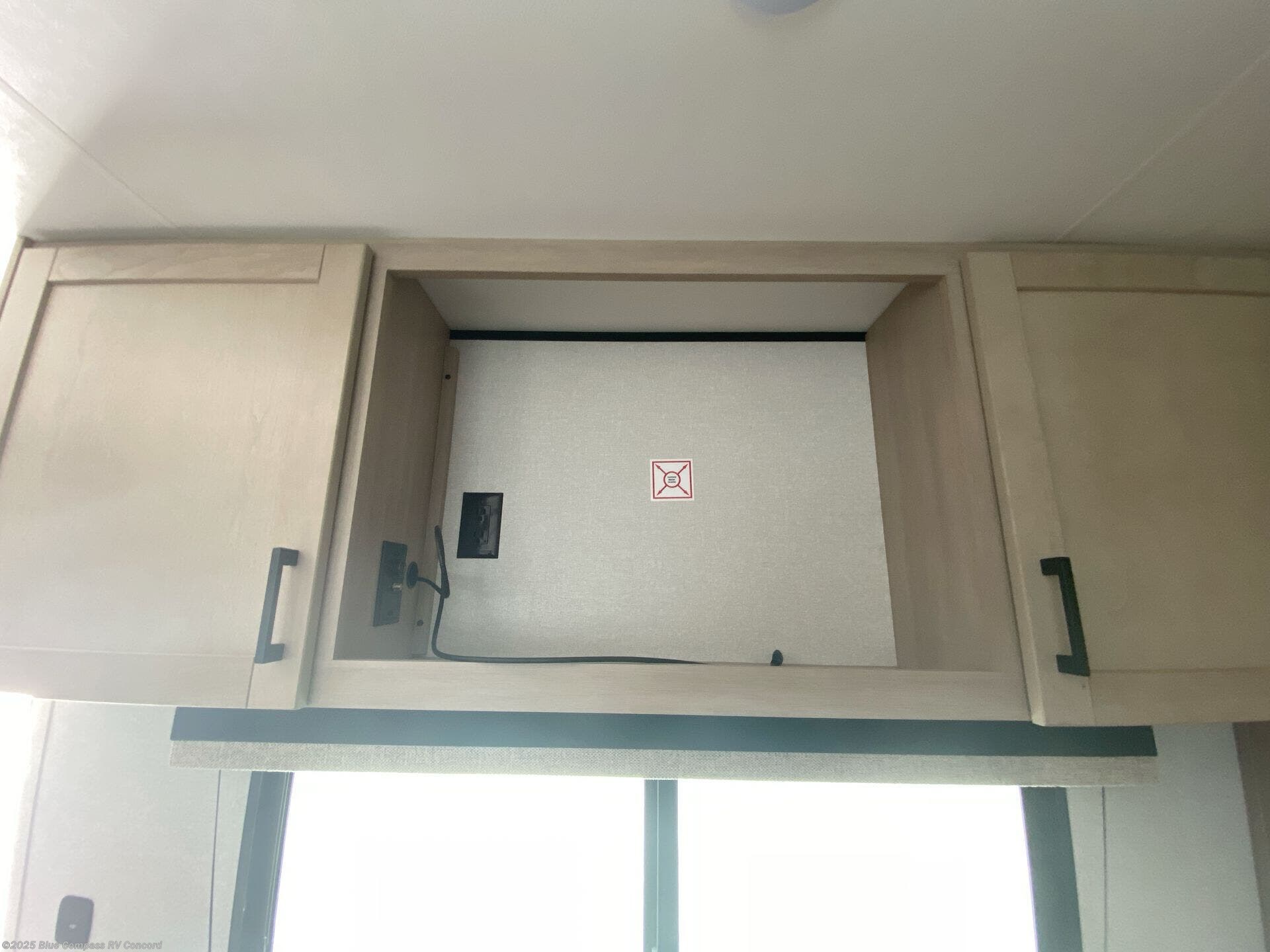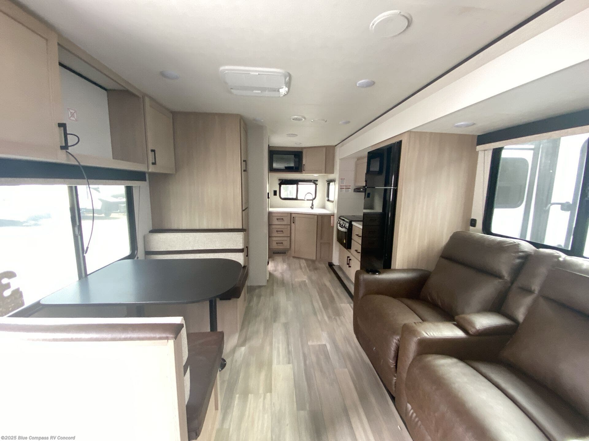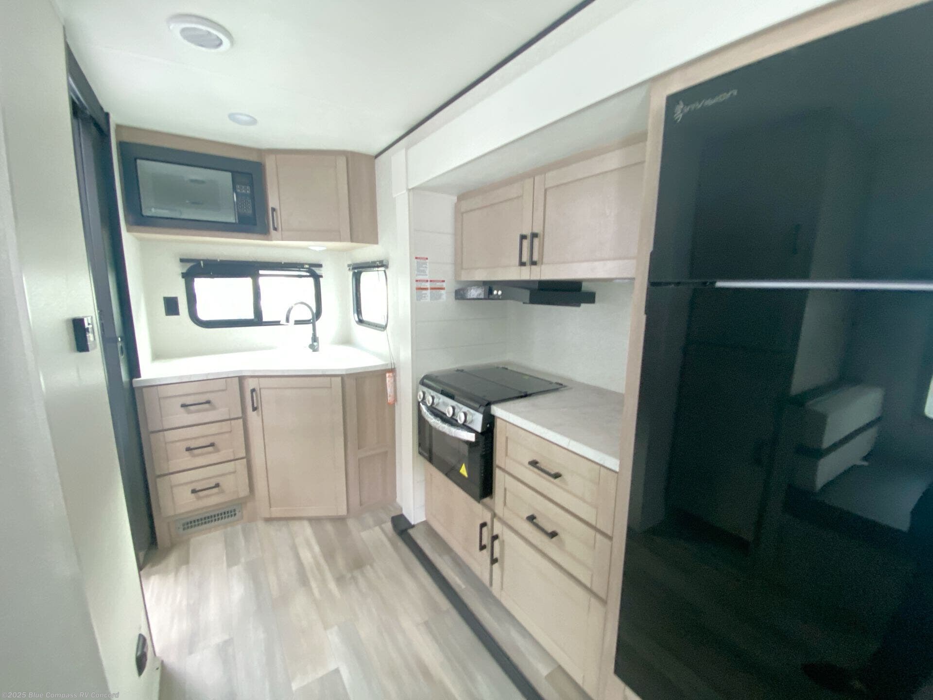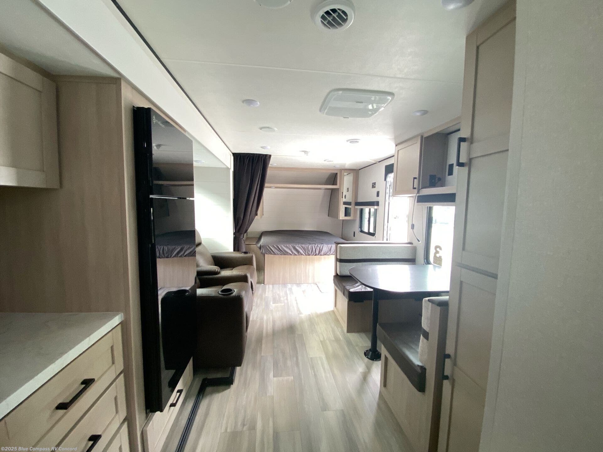 You'll love having your own space in this travel trailer thanks to the front bedroom with a queen bed, dual bedside wardrobes, and privacy curtain. A large slide out provides more space to move about, and there is theater seating here to relax in the evenings. You can make meals on the three-burner cooktop or in the microwave oven, and you can dine at the booth dinette. This unit also includes a 12V refrigerator and pantry for food storge plus ample overhead cabinets for your personal belongings.