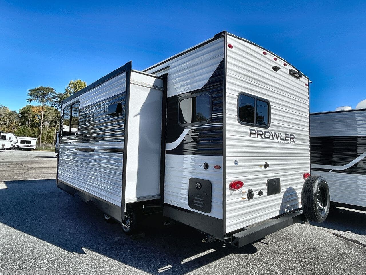 With any Prowler travel trailer, you will enjoy convenient amenities and at-home comforts wherever you decide to camp! Each one is built with a durable fully integrated A-frame, a TrussXL roof system, and galvanized wheel wells. And the self-adjusting brakes, easy-lube axles and nitrogen filled radial tires will provide smooth towing. Inside, you'll enjoy vinyl flooring throughout that will be easy to keep clean, durable, residential-inspired kitchen countertops, a residential-style high-rise kitchen faucet, and solid hardwood cabinet doors with hidden hinges and screwed stile construction. The mandatory Camping in Comfort Package includes a large folding entry door grab handle, MORryde Step Above entry steps, an on-demand tankless water heater, and stylish window shades. There are also available options that vary between single and double axle units that will allow you to customize your Prowler to fit your needs!