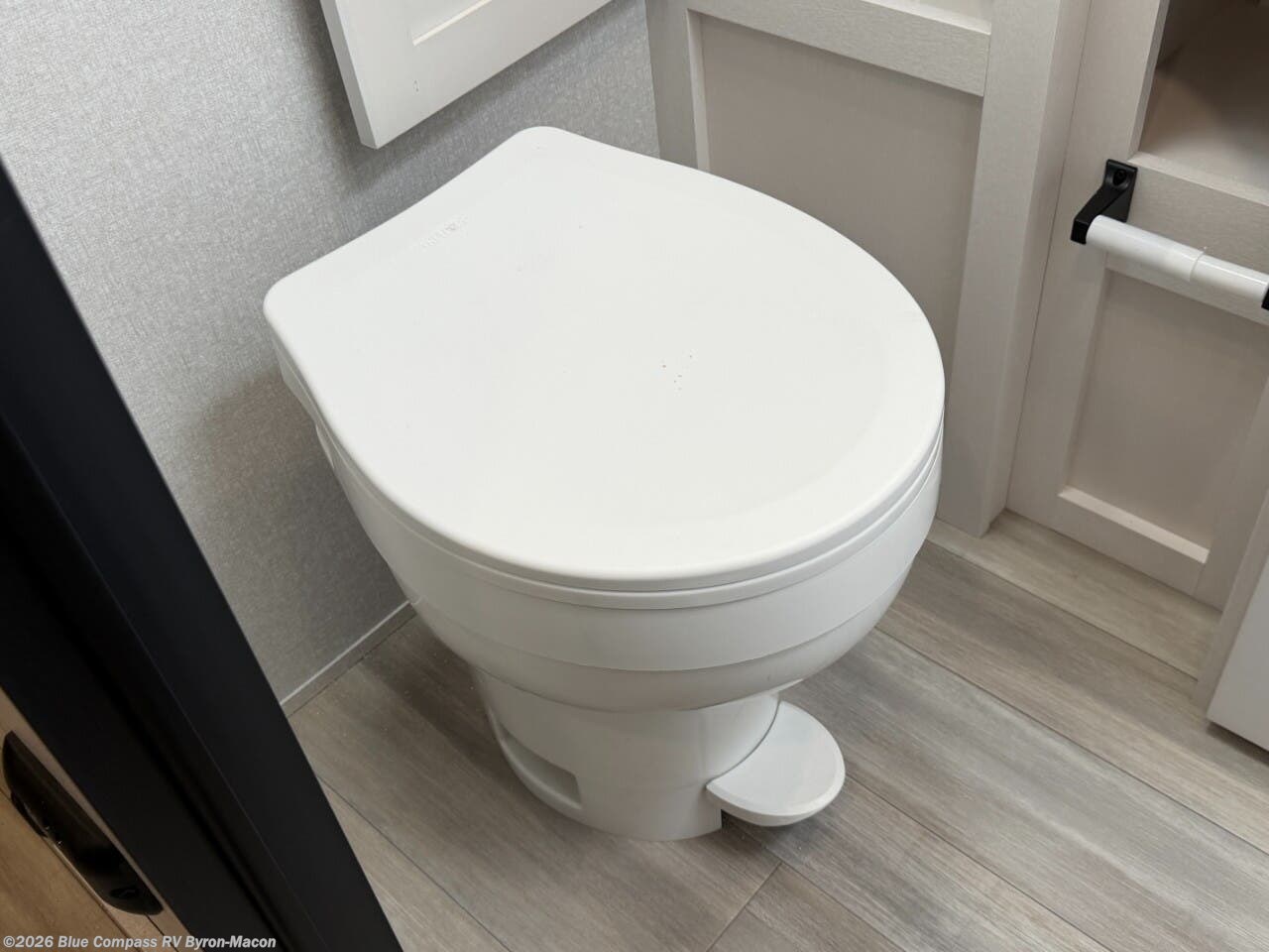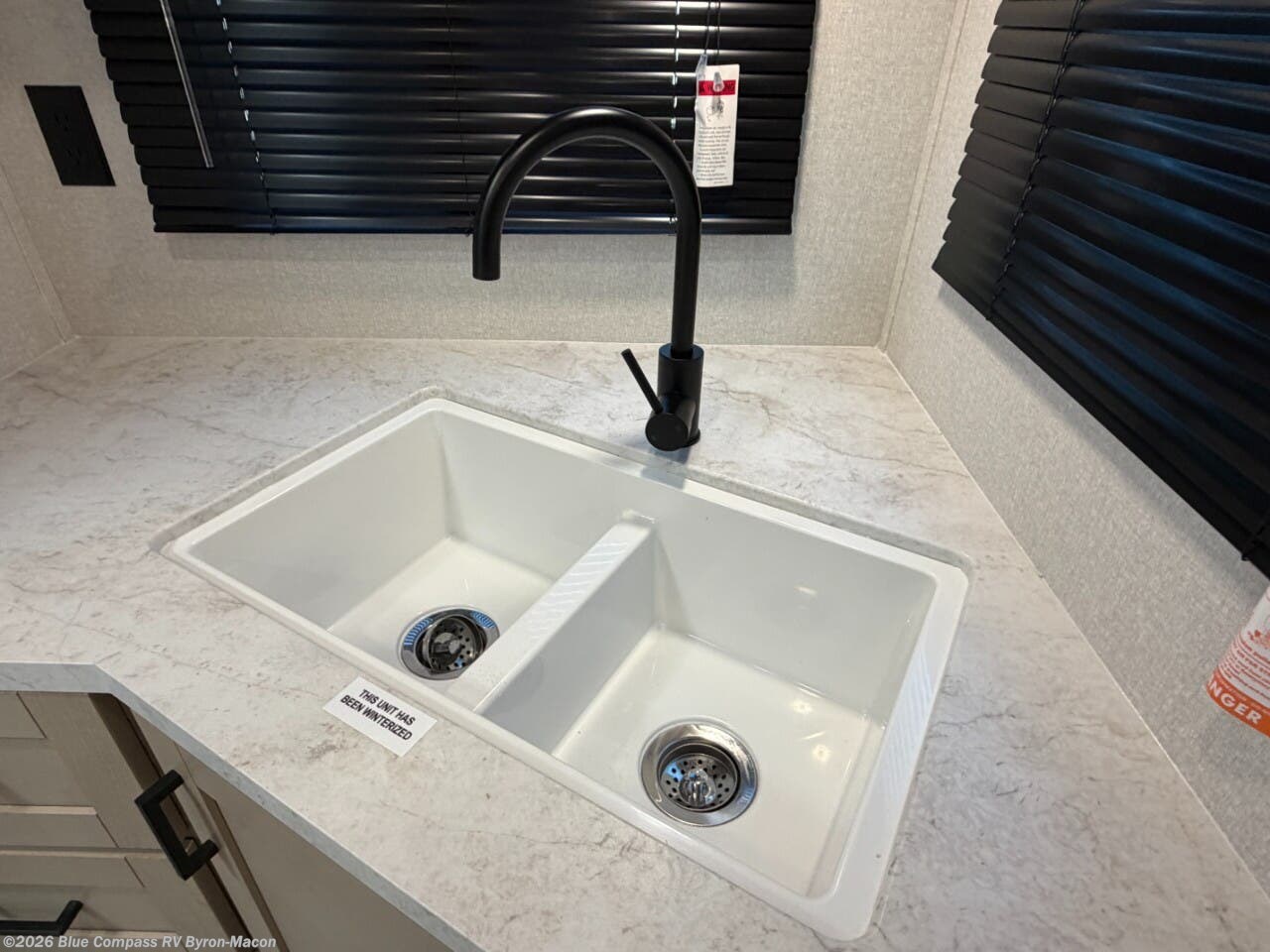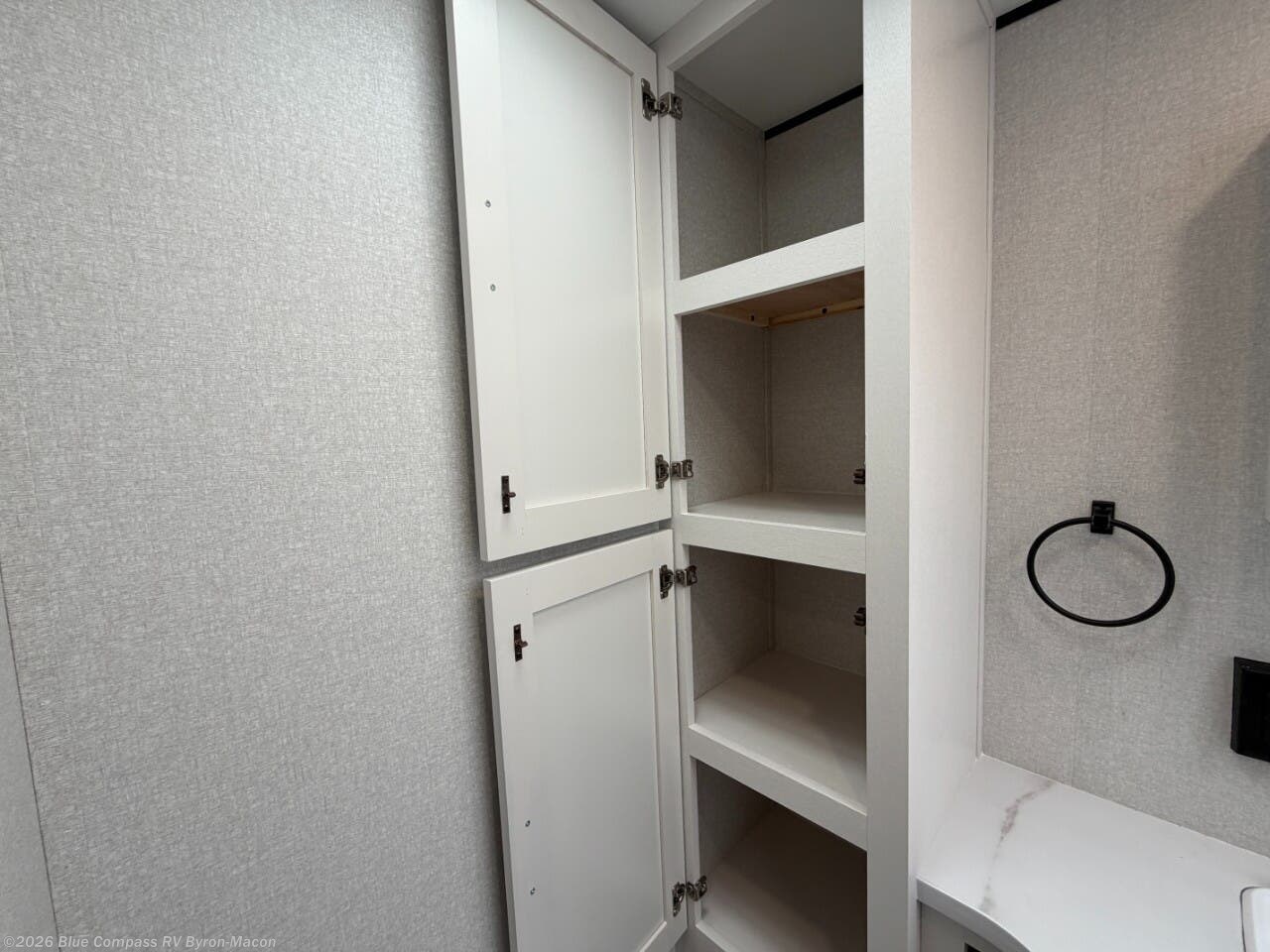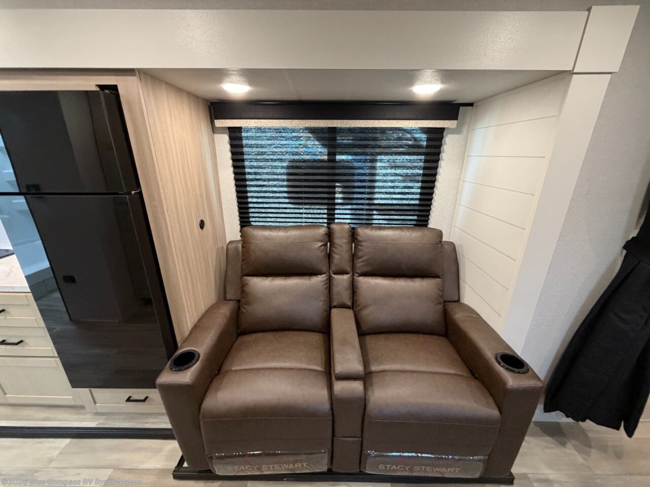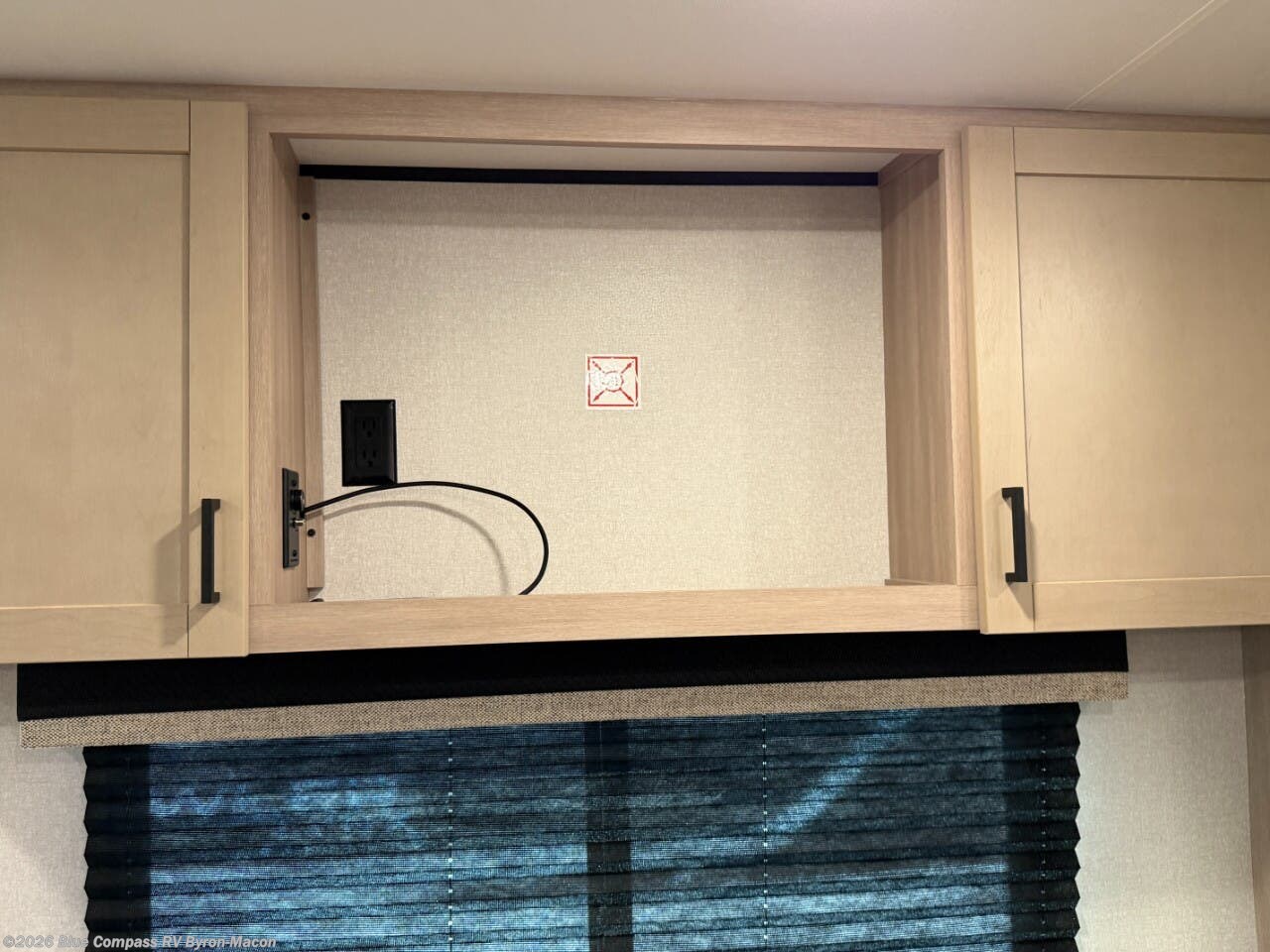 You'll love having your own space in this travel trailer thanks to the front bedroom with a queen bed, dual bedside wardrobes, and privacy curtain. A large slide out provides more space to move about, and there is theater seating here to relax in the evenings. You can make meals on the three-burner cooktop or in the microwave oven, and you can dine at the booth dinette. This unit also includes a 12V refrigerator and pantry for food storge plus ample overhead cabinets for your personal belongings.
