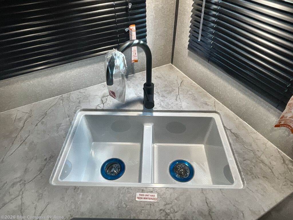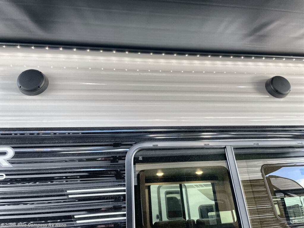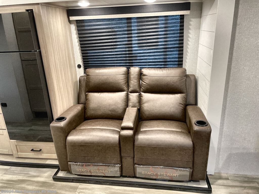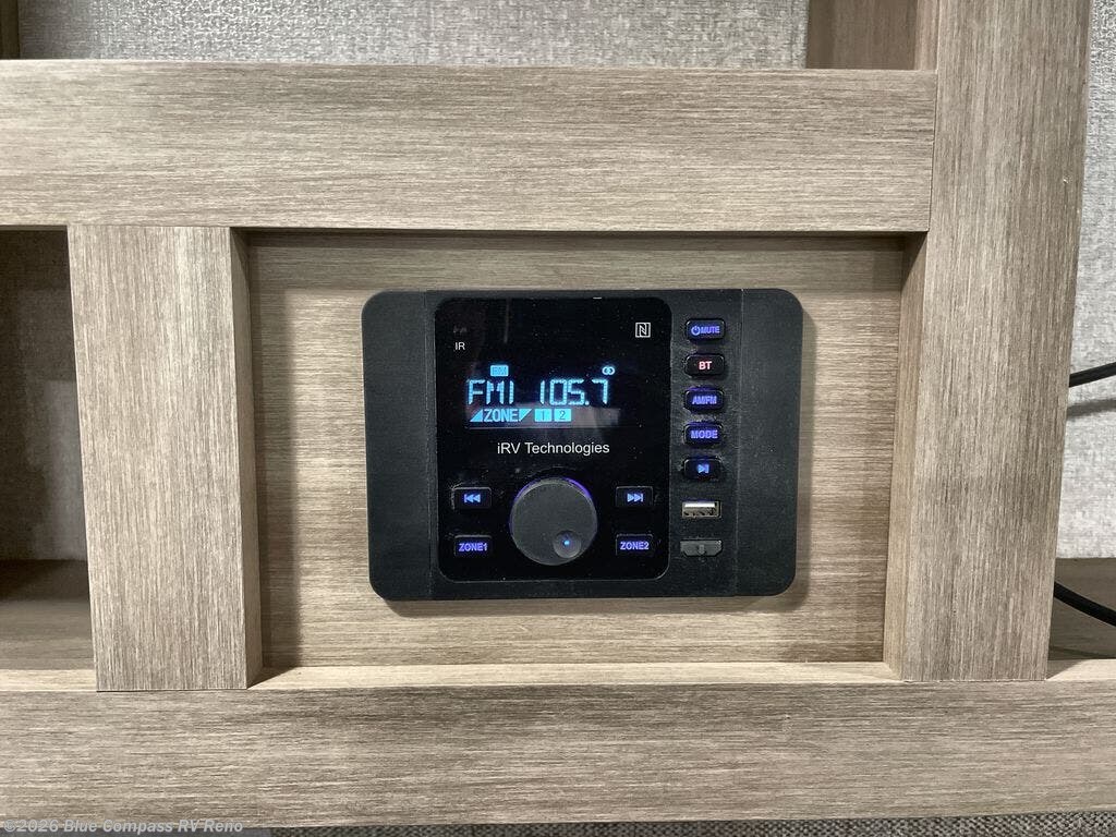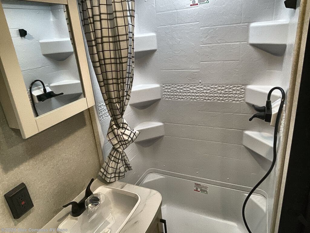 You'll love having your own space in this travel trailer thanks to the front bedroom with a queen bed, dual bedside wardrobes, and privacy curtain. A large slide out provides more space to move about, and there is theater seating here to relax in the evenings. You can make meals on the three-burner cooktop or in the microwave oven, and you can dine at the booth dinette. This unit also includes a 12V refrigerator and pantry for food storge plus ample overhead cabinets for your personal belongings.