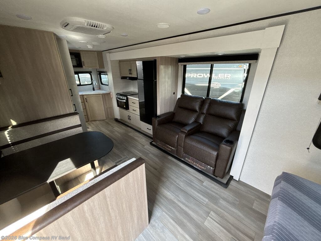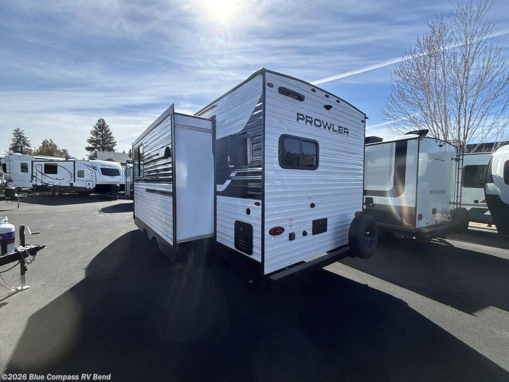 With any Prowler travel trailer, you will enjoy convenient amenities and at-home comforts wherever you decide to camp! Each one is built with a durable fully integrated A-frame, a TrussXL roof system, and galvanized wheel wells. And the self-adjusting brakes, easy-lube axles and nitrogen filled radial tires will provide smooth towing. Inside, you'll enjoy vinyl flooring throughout that will be easy to keep clean, durable, residential-inspired kitchen countertops, a residential-style high-rise kitchen faucet, and solid hardwood cabinet doors with hidden hinges and screwed stile construction. The mandatory Camping in Comfort Package includes a large folding entry door grab handle, MORryde Step Above entry steps, an on-demand tankless water heater, and stylish window shades. There are also available options that vary between single and double axle units that will allow you to customize your Prowler to fit your needs!