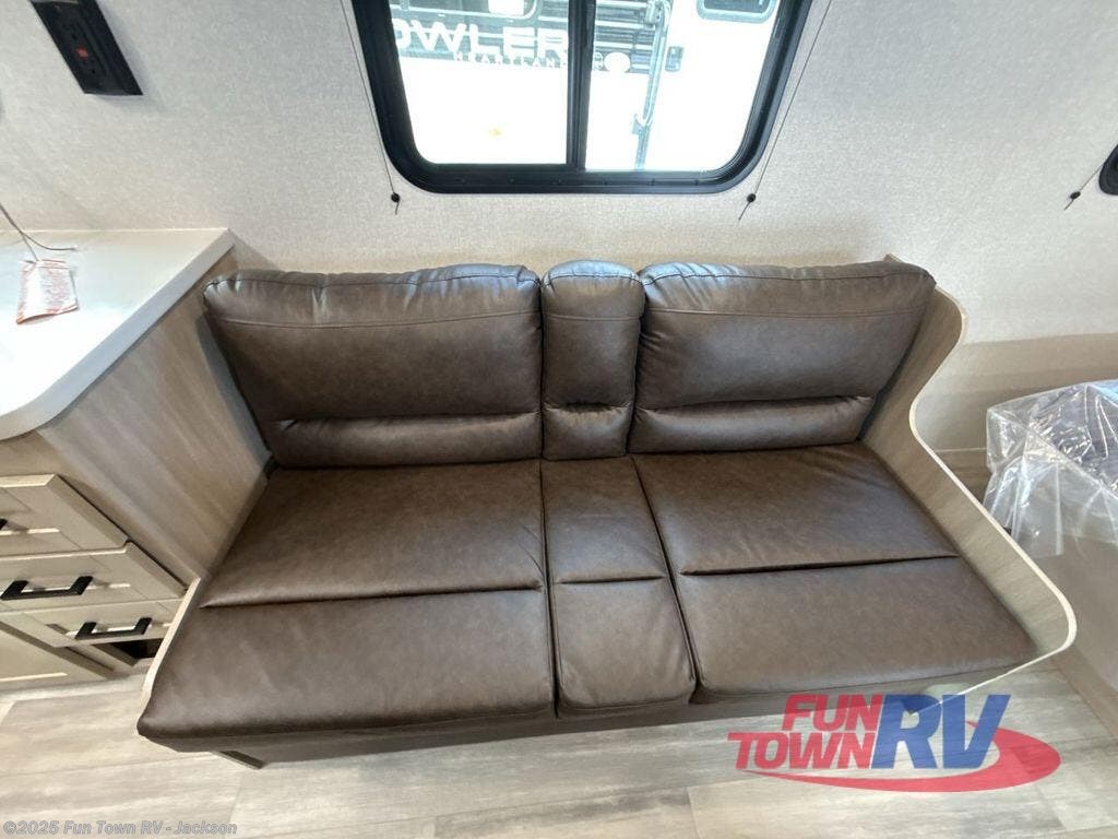 Camping trips are made easy in this Lynx Edition travel trailer with double-size bunk beds for guests or little ones. You'll find a front walk-around queen bed for a great night's rest, along with dual bedside wardrobes to keep your things tidy. The rear corner private bath includes a foot-flush toilet and a 40" shower, so you won't have to leave the camper in the middle of the night. A two-burner cooktop and microwave oven will let you make meals each day, and you'll find seating spaces at the booth dinette or on the sofa!