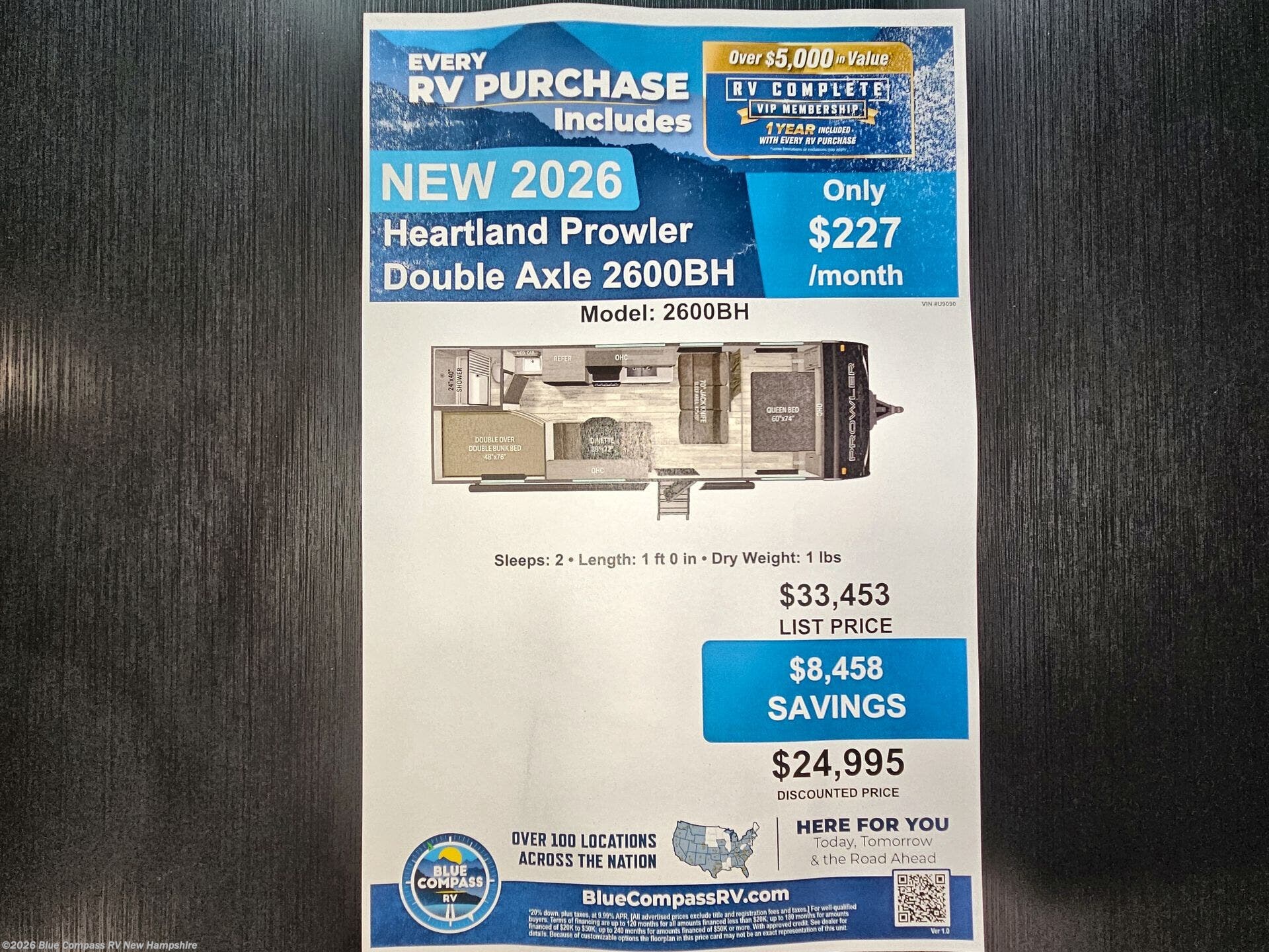 Request More Info on this 2026 Heartland Prowler 2600BH Offered for sale by Blue Compass RV New Hampshire
