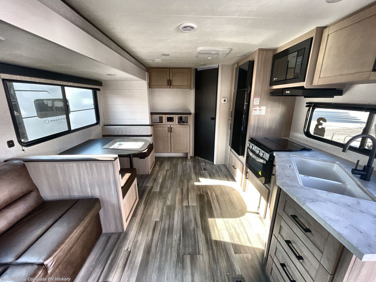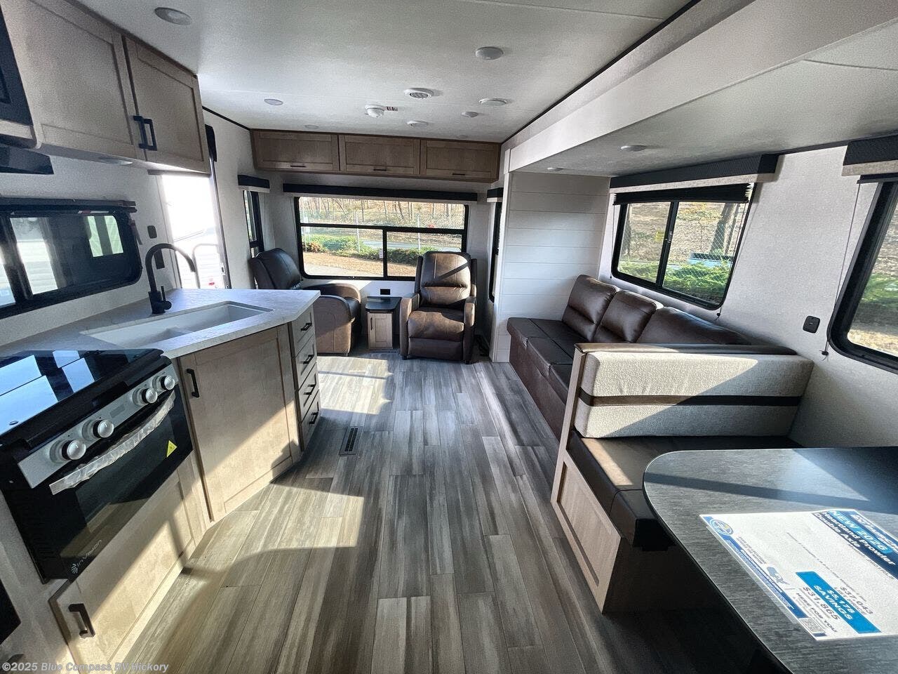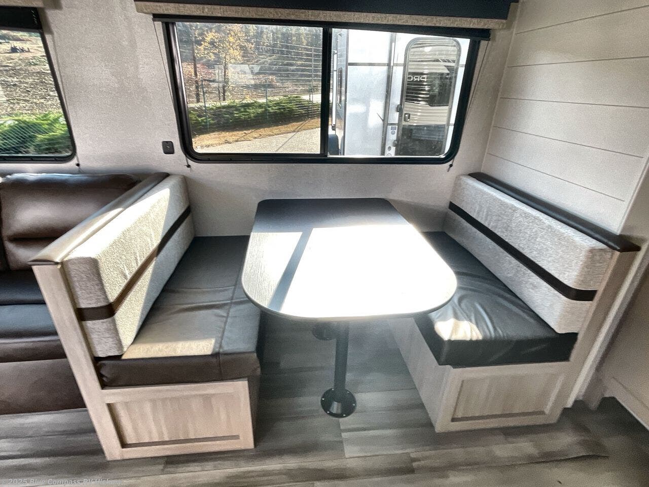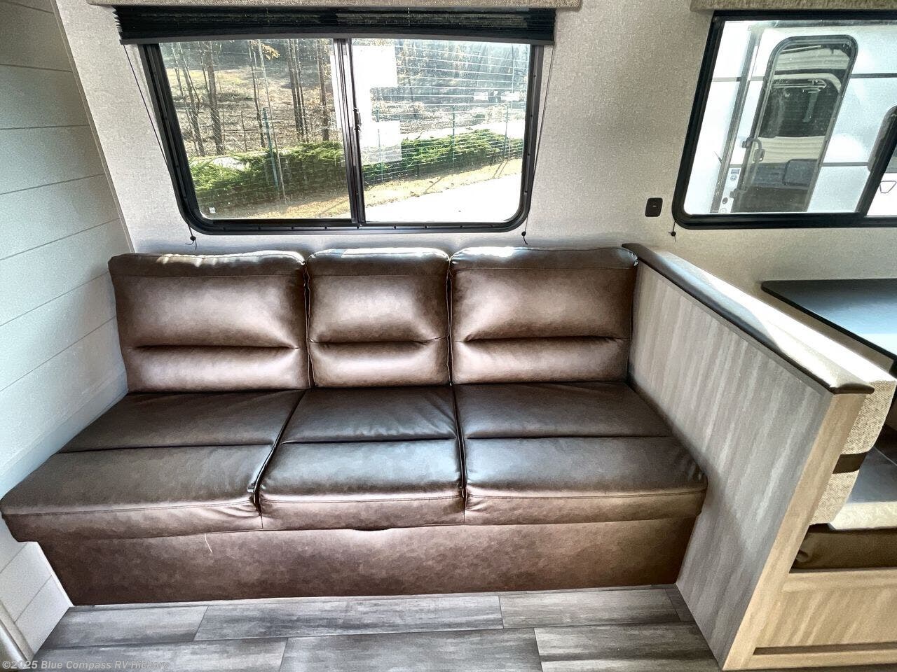 Time spent in this spacious travel trailer will be time well spent! Once you arrive at your campsite, you can put out the 18' power awning and relax in your camp chairs. The dual entry doors will allow you to enter in through the rear living room with dual lounge chairs, or the front private bedroom with an RV queen bed! The chef of your group can make lunch on the three-burner cooktop or in the microwave oven, and there is a booth dinette where you can dine together. Your guests can convert the dinette to sleeping space at night, along with the jack-knife sofa!