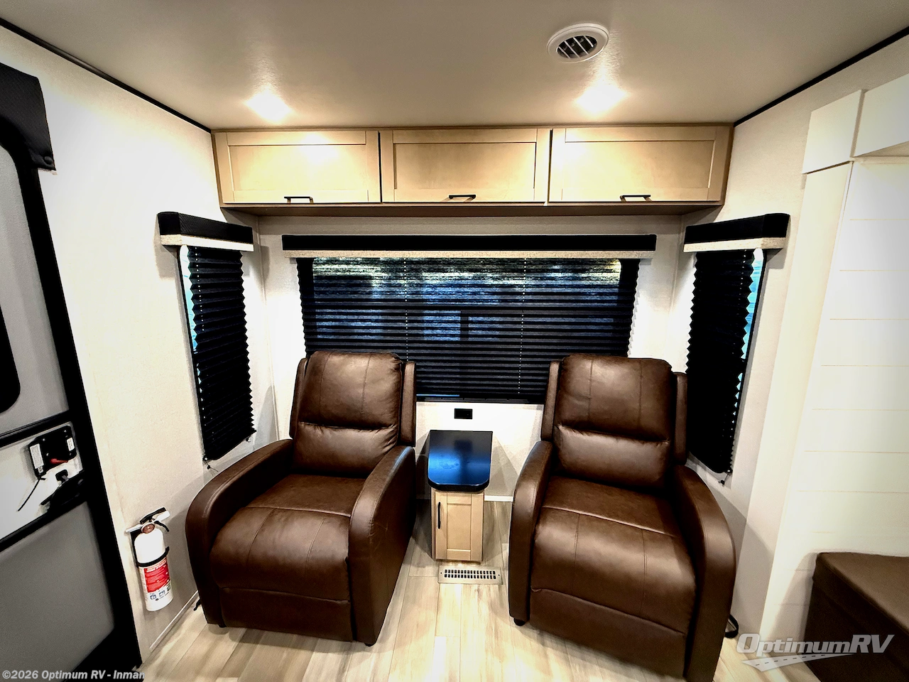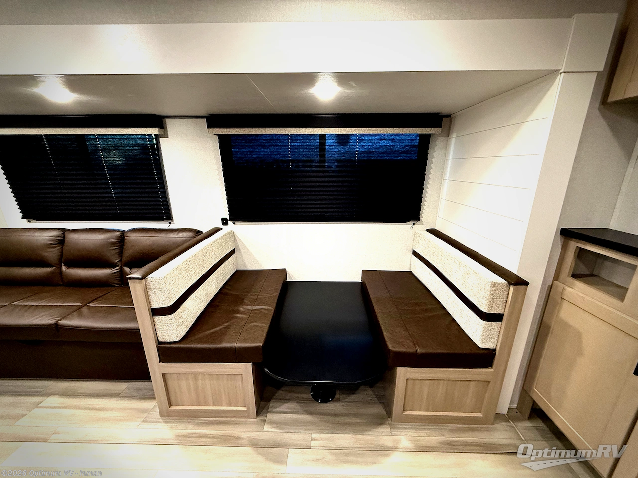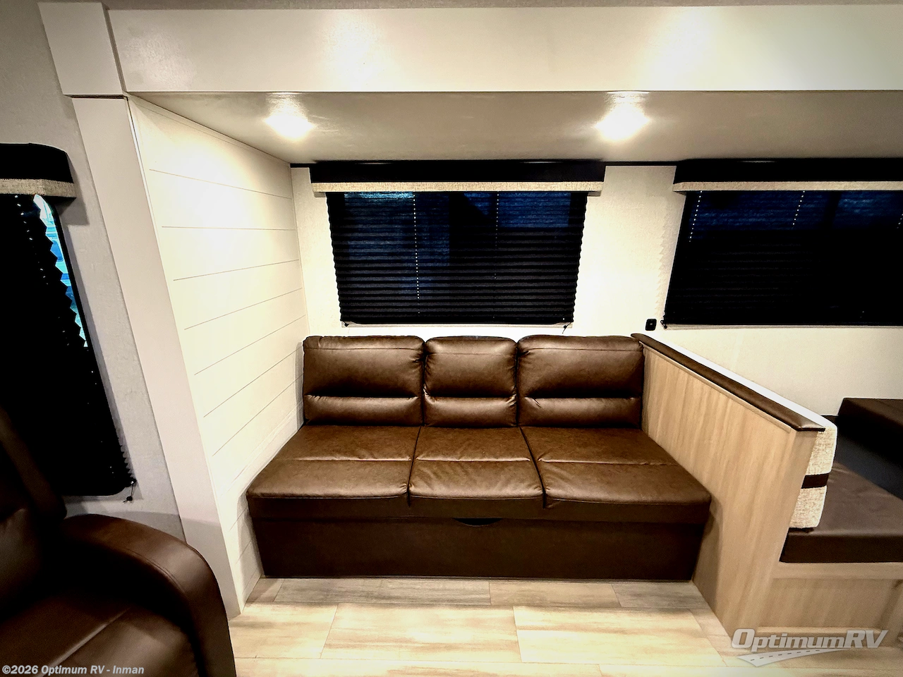 Time spent in this spacious travel trailer will be time well spent! Once you arrive at your campsite, you can put out the 18' power awning and relax in your camp chairs. The dual entry doors will allow you to enter in through the rear living room with dual lounge chairs, or the front private bedroom with an RV queen bed! The chef of your group can make lunch on the three-burner cooktop or in the microwave oven, and there is a booth dinette where you can dine together. Your guests can convert the dinette to sleeping space at night, along with the jack-knife sofa!