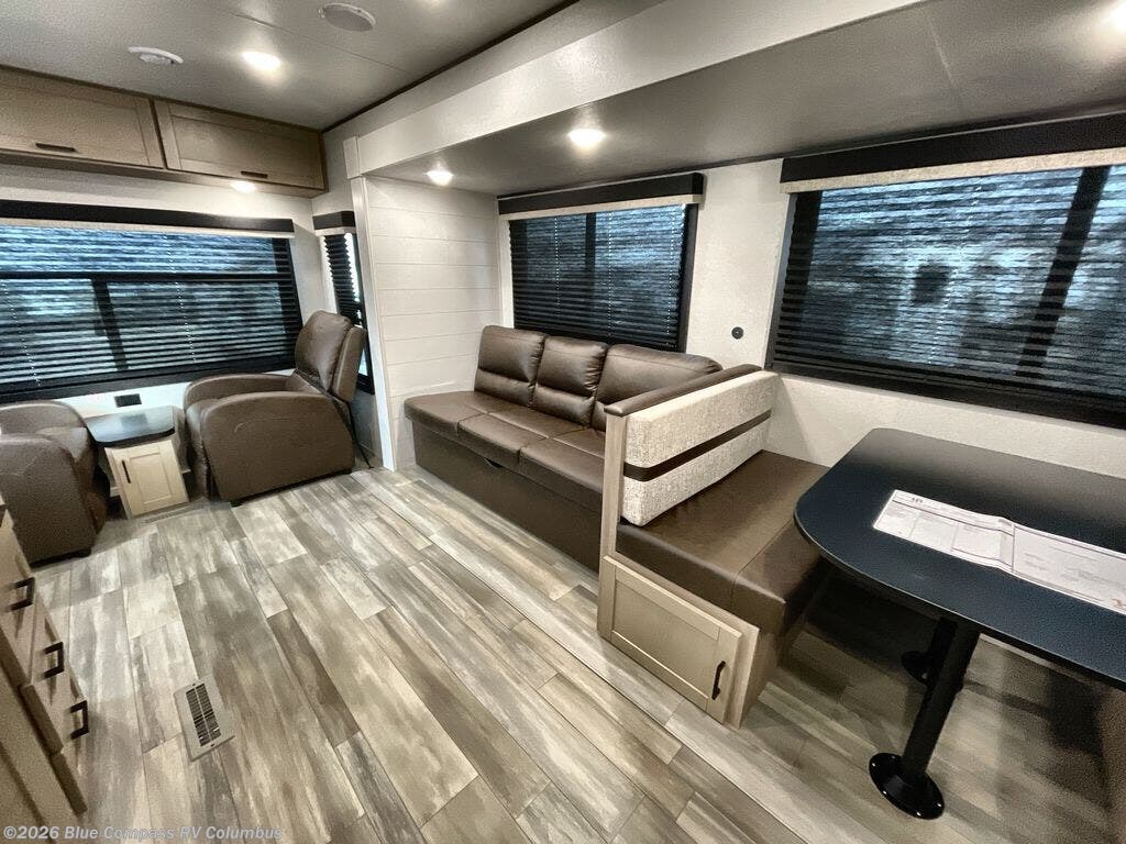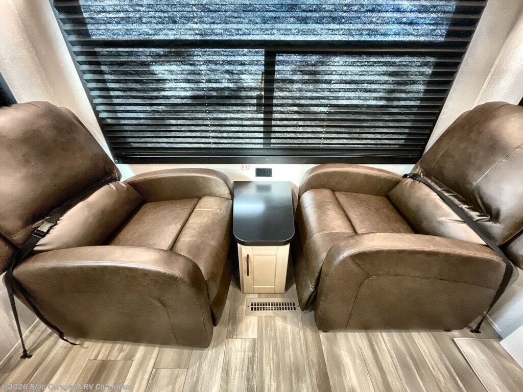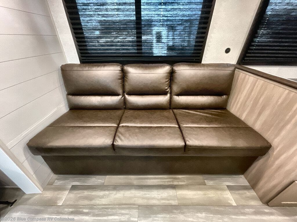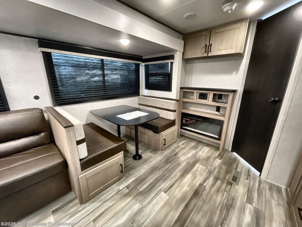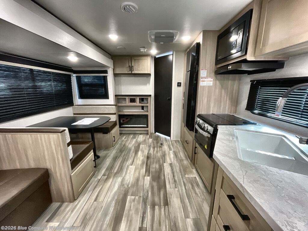 Time spent in this spacious travel trailer will be time well spent! Once you arrive at your campsite, you can put out the 18' power awning and relax in your camp chairs. The dual entry doors will allow you to enter in through the rear living room with dual lounge chairs, or the front private bedroom with an RV queen bed! The chef of your group can make lunch on the three-burner cooktop or in the microwave oven, and there is a booth dinette where you can dine together. Your guests can convert the dinette to sleeping space at night, along with the jack-knife sofa!