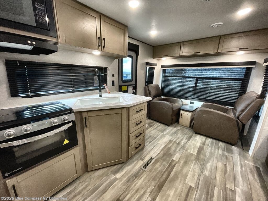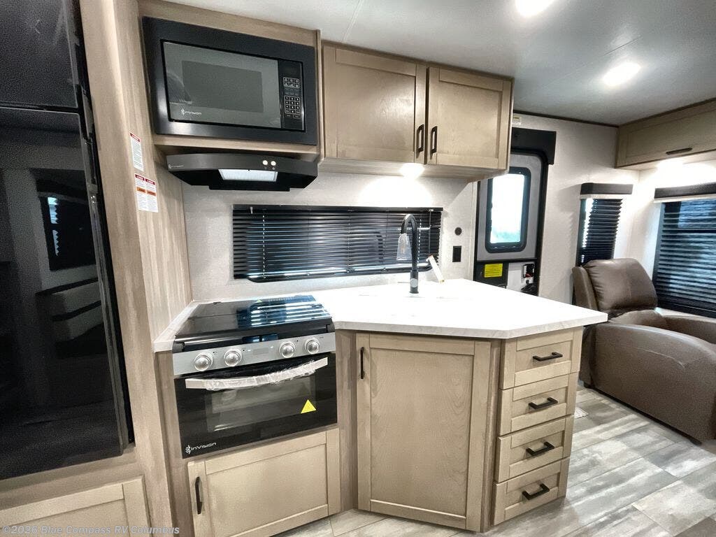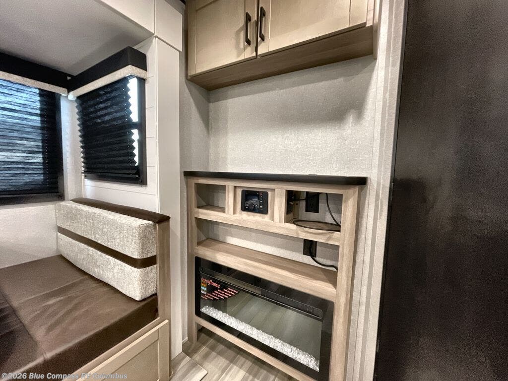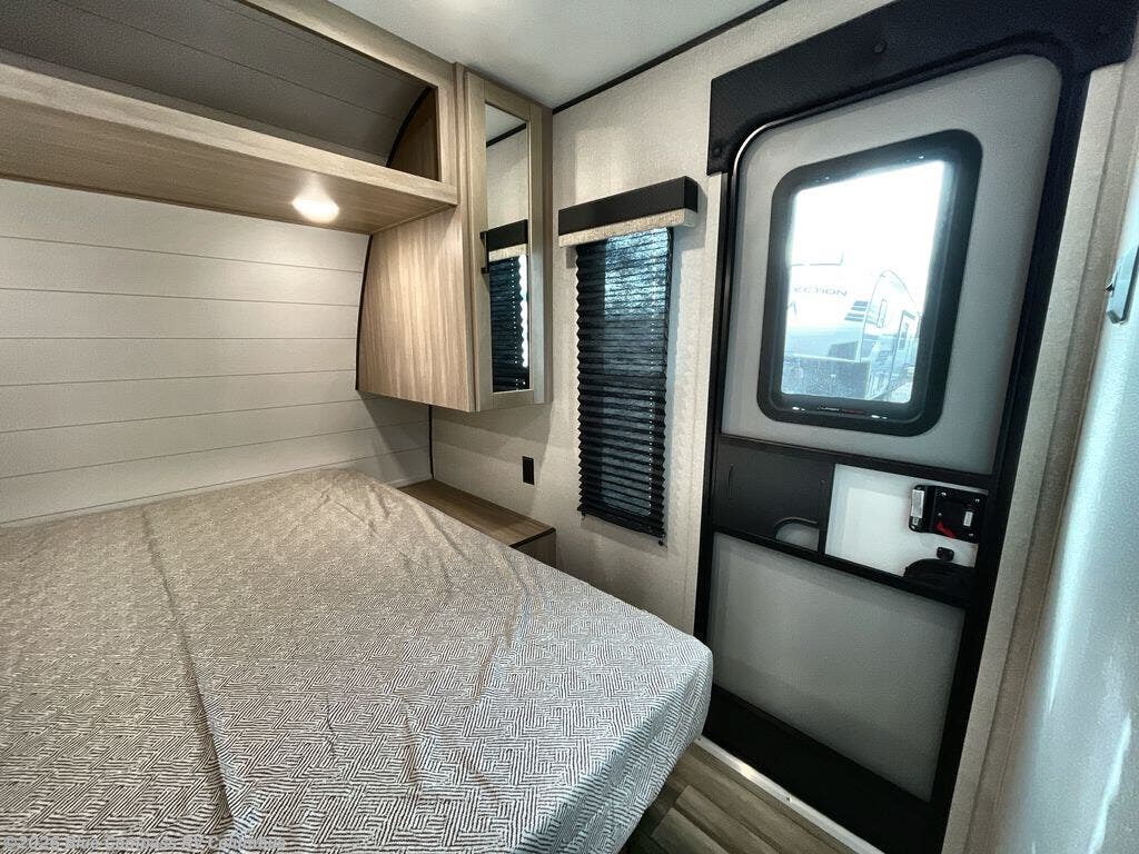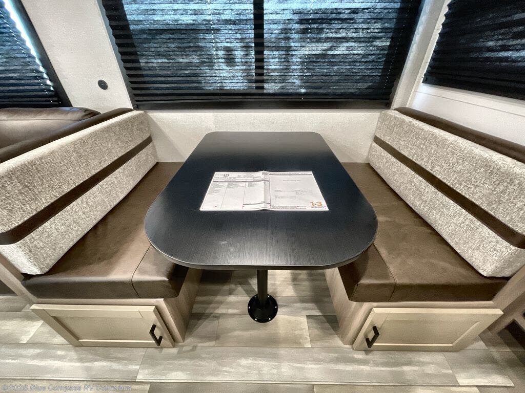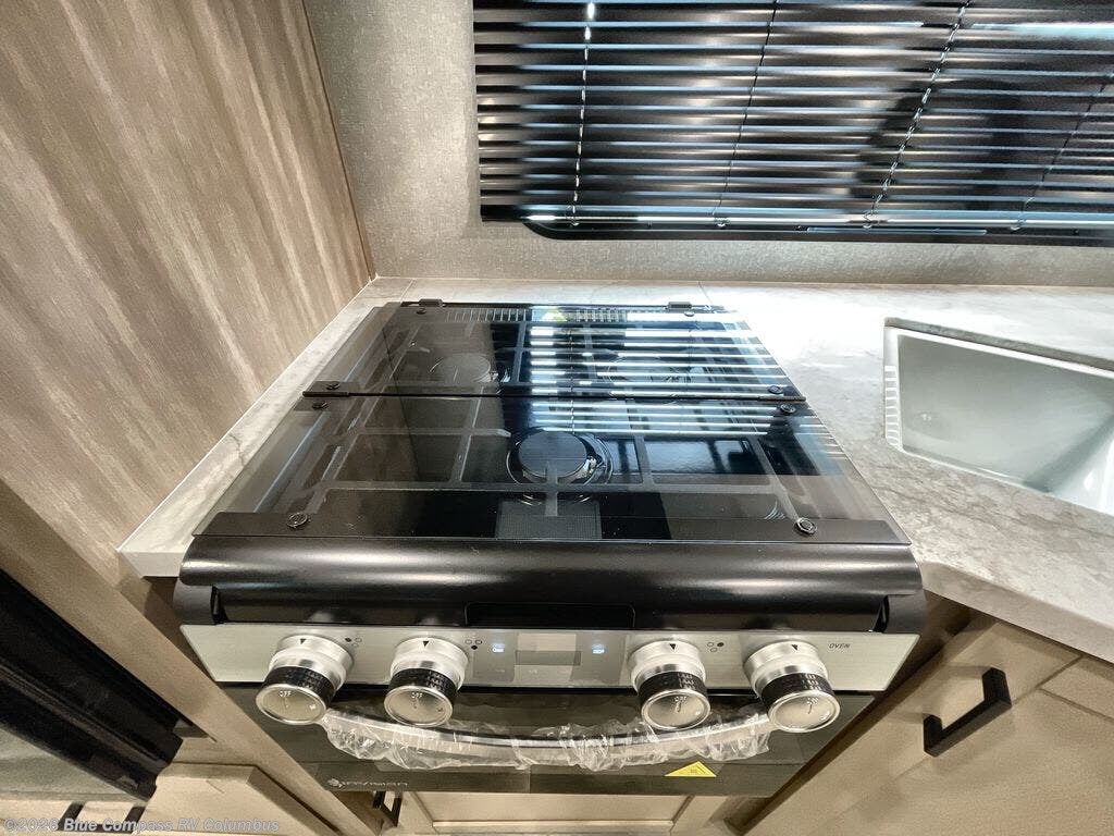 Time spent in this spacious travel trailer will be time well spent! Once you arrive at your campsite, you can put out the 18' power awning and relax in your camp chairs. The dual entry doors will allow you to enter in through the rear living room with dual lounge chairs, or the front private bedroom with an RV queen bed! The chef of your group can make lunch on the three-burner cooktop or in the microwave oven, and there is a booth dinette where you can dine together. Your guests can convert the dinette to sleeping space at night, along with the jack-knife sofa!