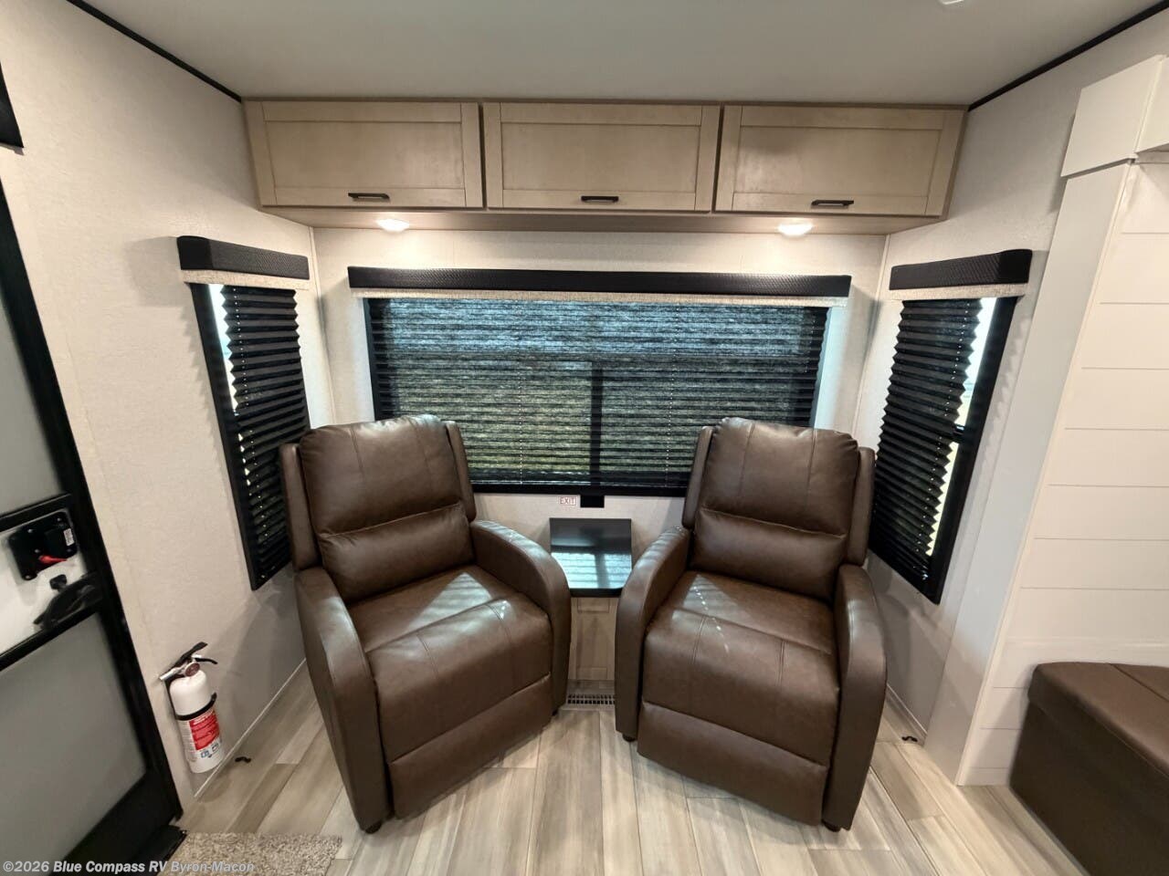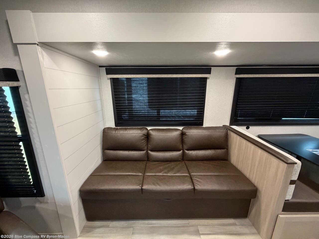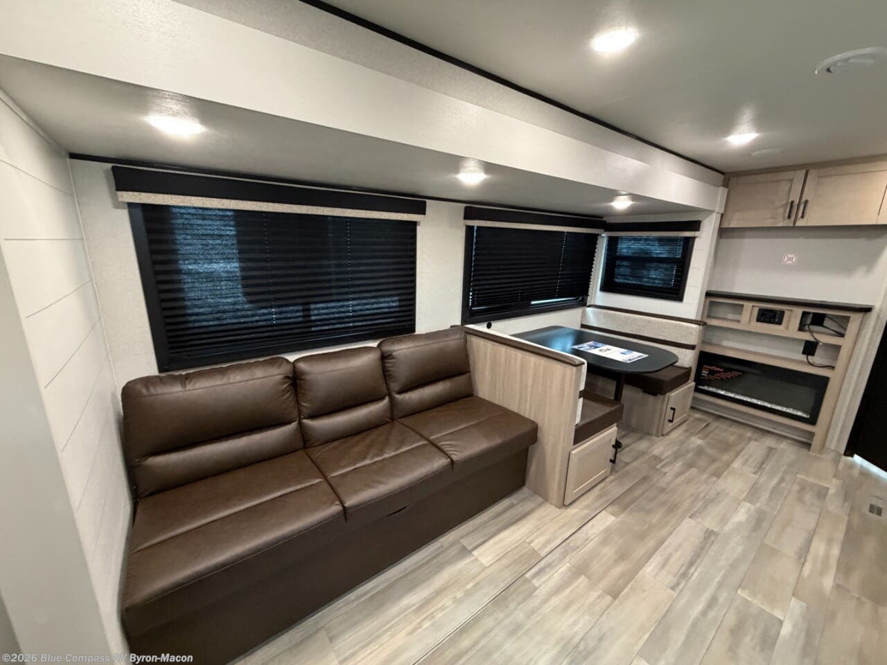 Time spent in this spacious travel trailer will be time well spent! Once you arrive at your campsite, you can put out the 18' power awning and relax in your camp chairs. The dual entry doors will allow you to enter in through the rear living room with dual lounge chairs, or the front private bedroom with an RV queen bed! The chef of your group can make lunch on the three-burner cooktop or in the microwave oven, and there is a booth dinette where you can dine together. Your guests can convert the dinette to sleeping space at night, along with the jack-knife sofa!