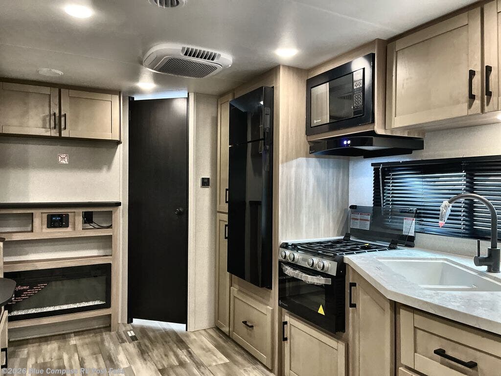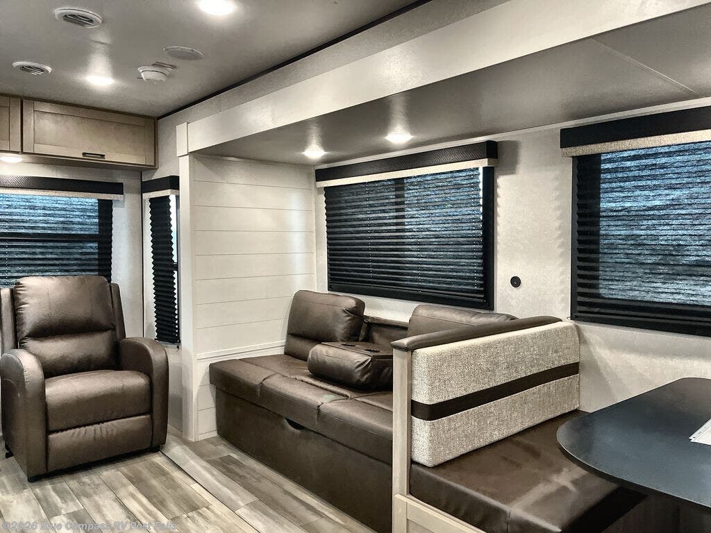 Time spent in this spacious travel trailer will be time well spent! Once you arrive at your campsite, you can put out the 18' power awning and relax in your camp chairs. The dual entry doors will allow you to enter in through the rear living room with dual lounge chairs, or the front private bedroom with an RV queen bed! The chef of your group can make lunch on the three-burner cooktop or in the microwave oven, and there is a booth dinette where you can dine together. Your guests can convert the dinette to sleeping space at night, along with the jack-knife sofa!