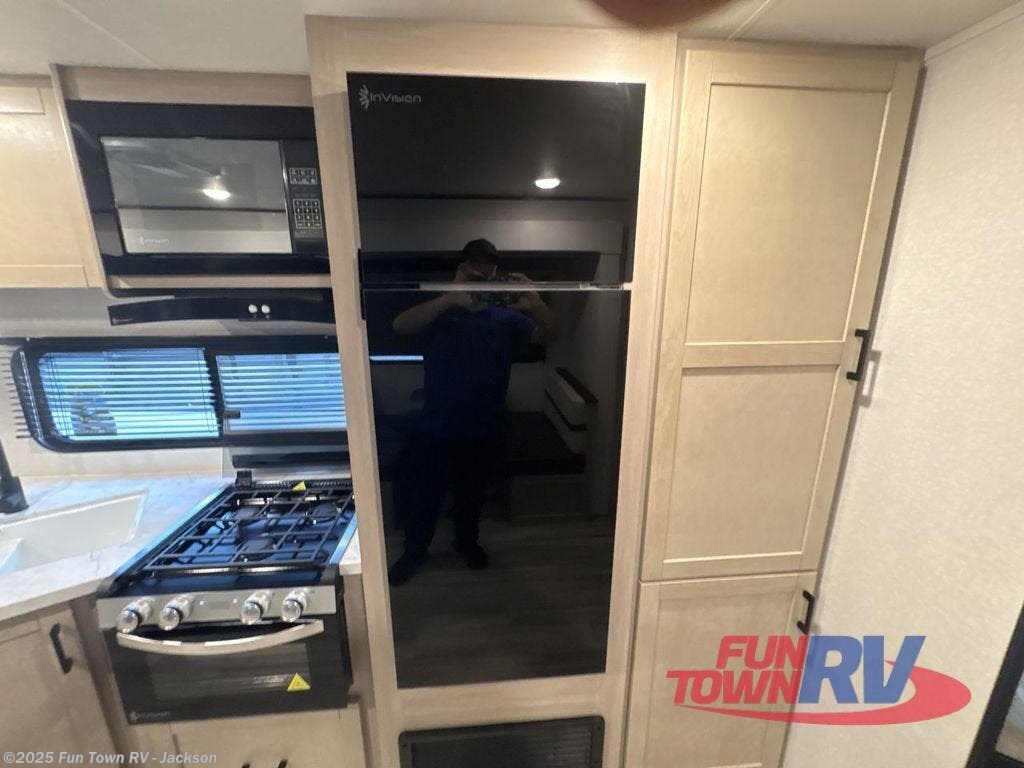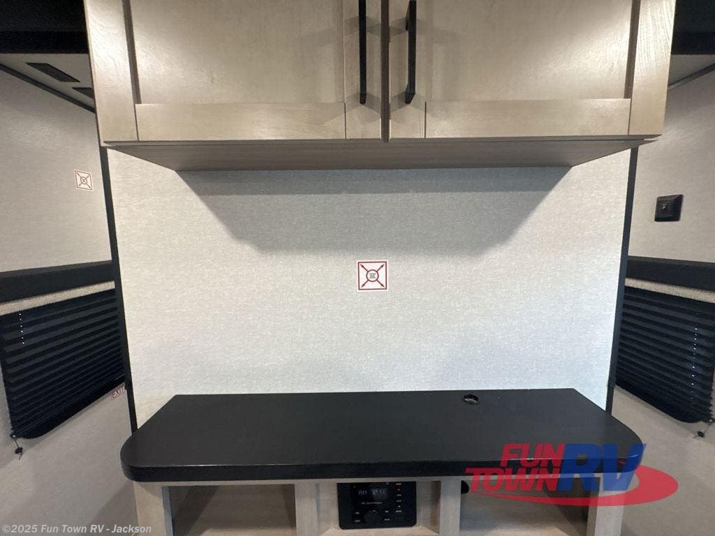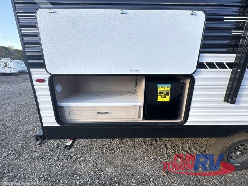 The whole gang will love weekends in the woods with this travel trailer in tow! There is a large slide out for added space, and here you'll find the jack-knife sofa and booth dinette. You can claim the front private bedroom to yourselves, while your guests or little ones take the double-size bunks. A full kitchen is complete with a three-burner cooktop and microwave oven to make meals each day, plus a 12V refrigerator and pantry for food storage. This unit also includes an outdoor kitchen with a refrigerator to keep cold drinks ready to enjoy!